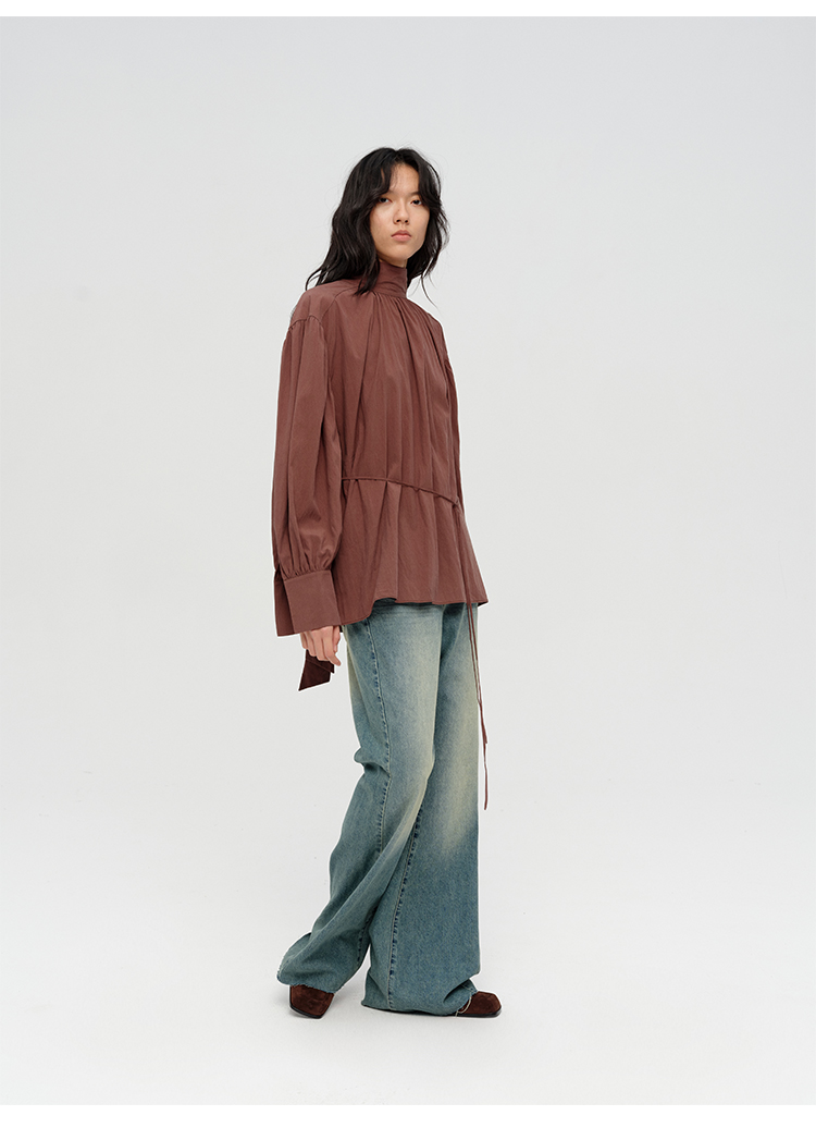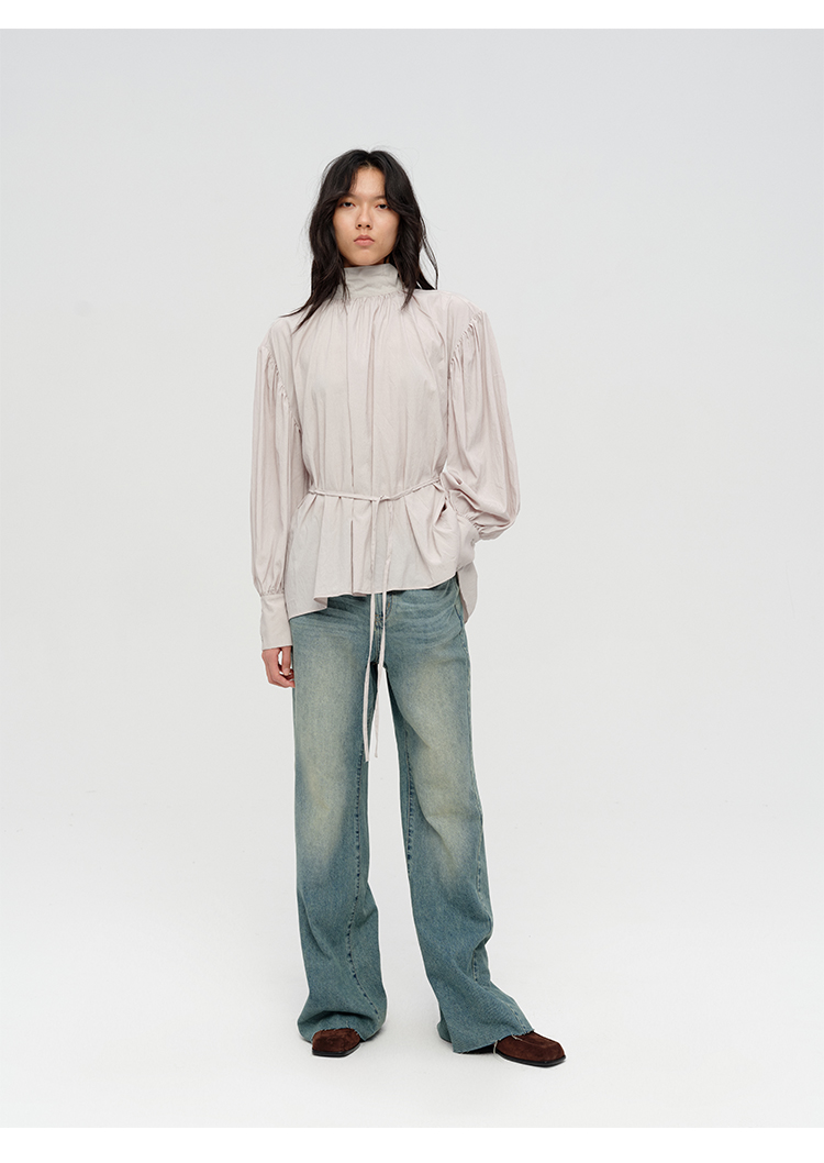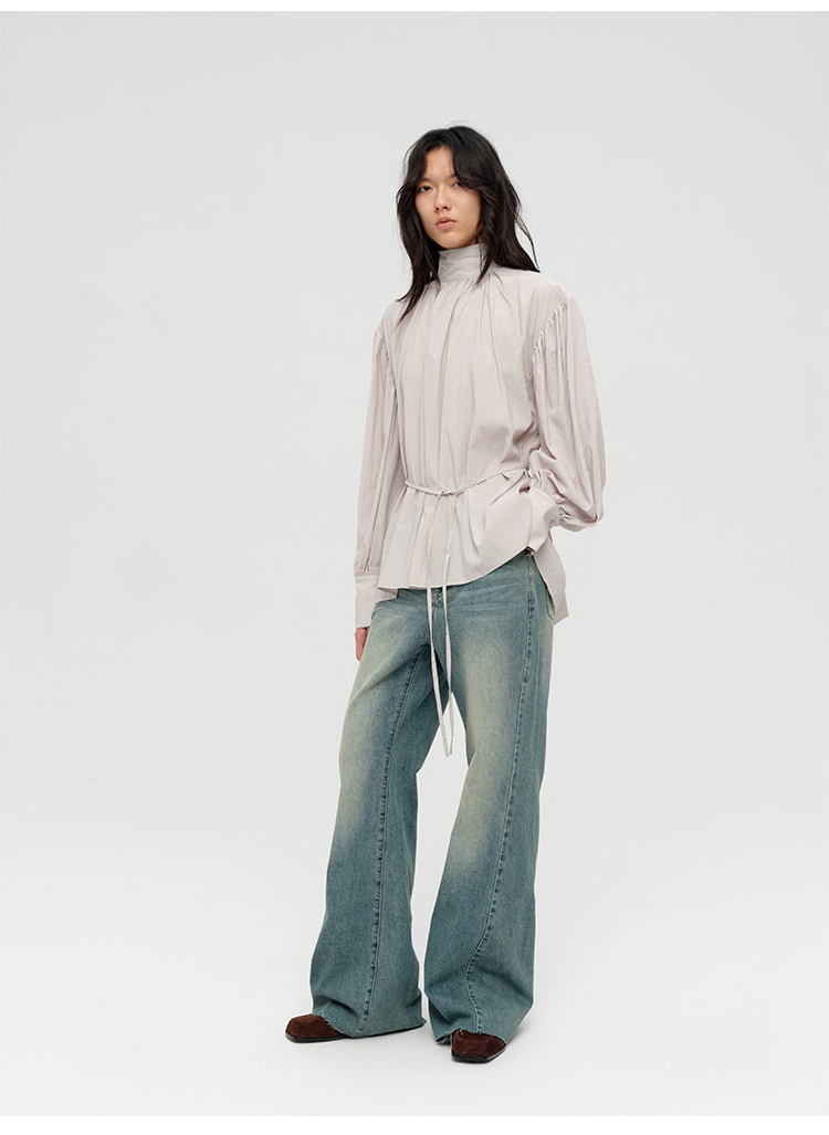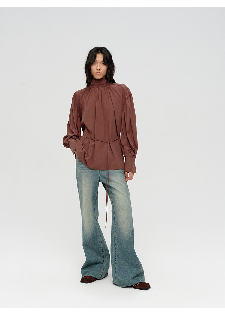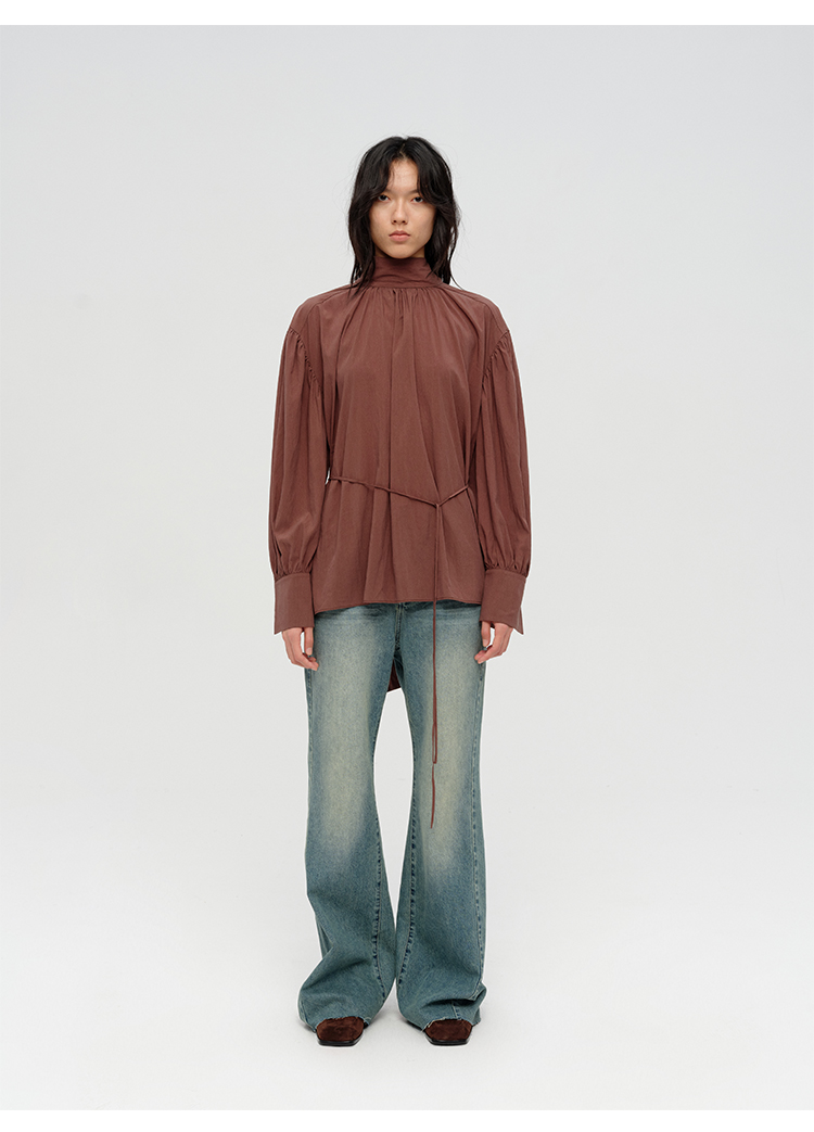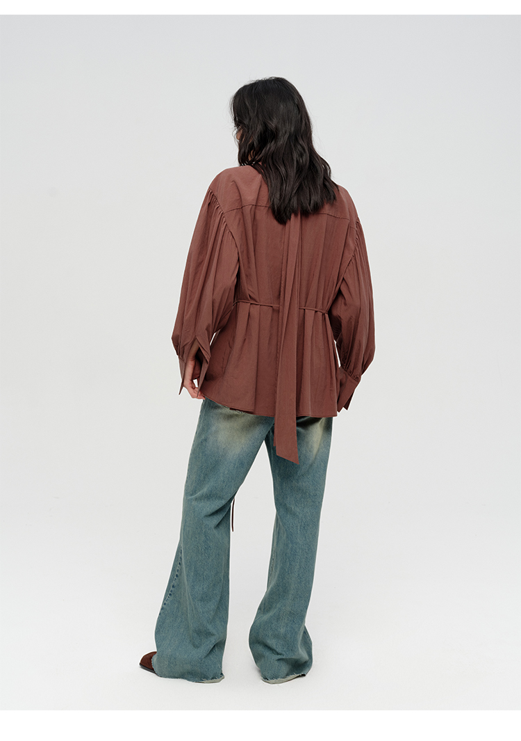 HIDEMI简约设计感廓形大灯笼袖衬衫