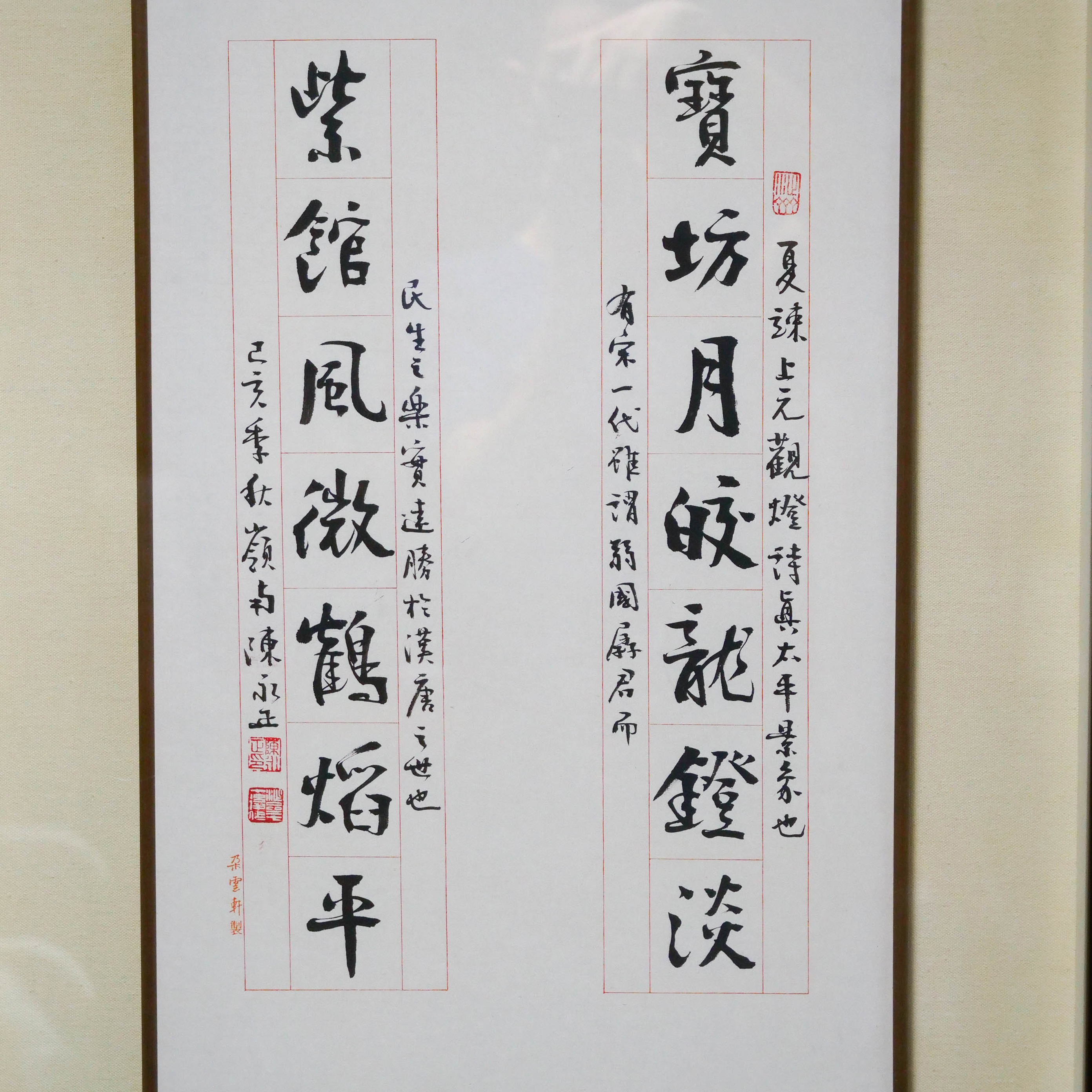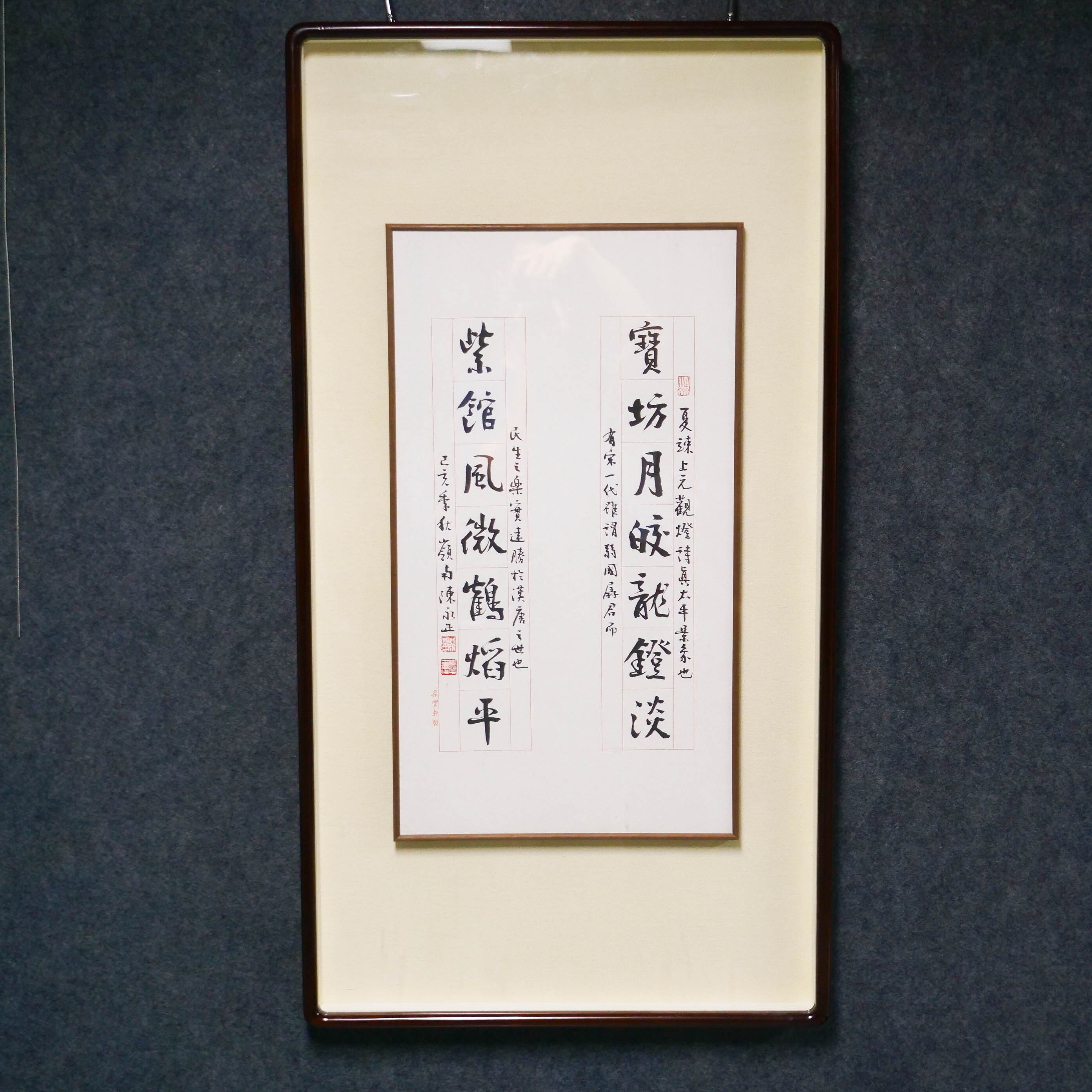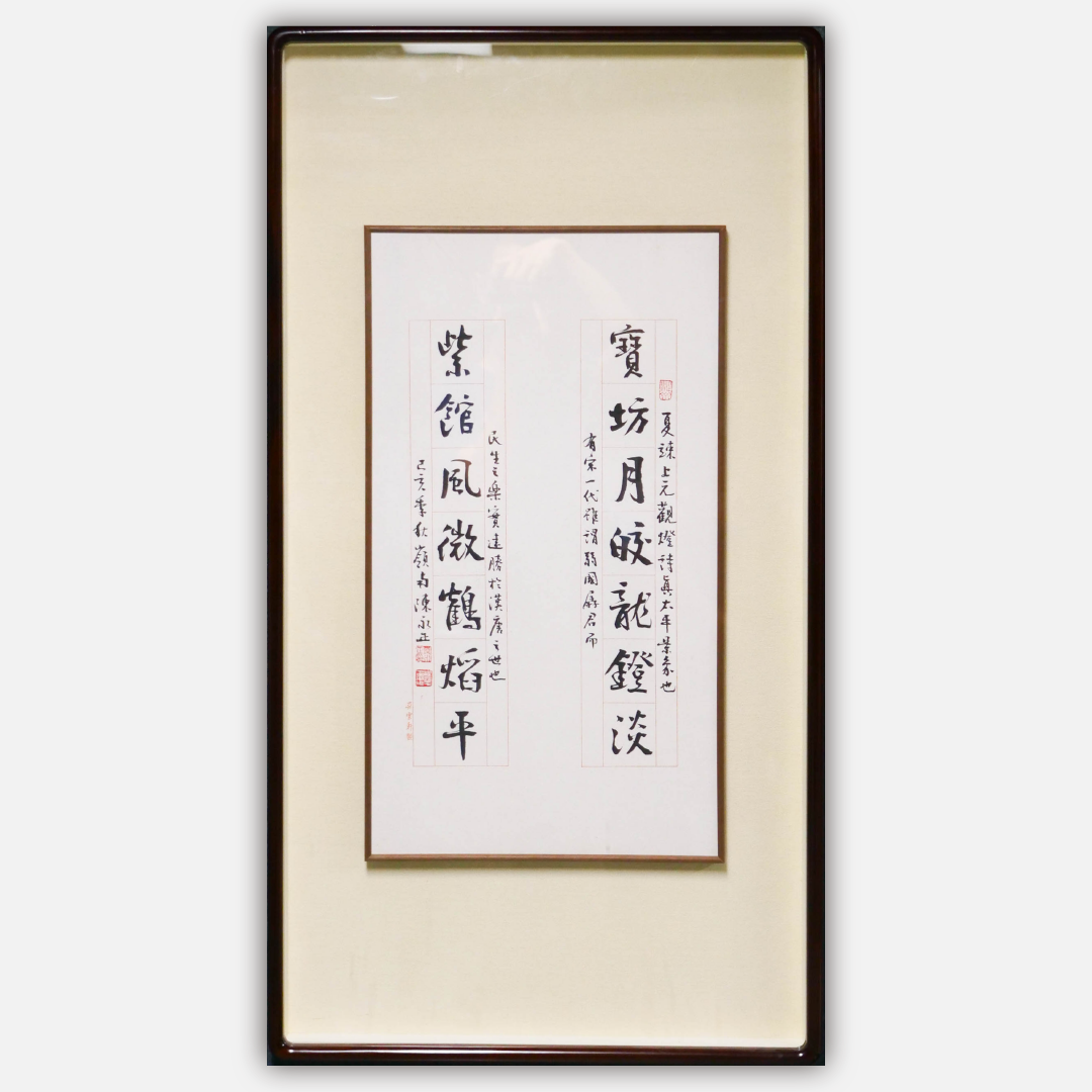 陈永正《宝坊月皎龙灯淡,紫馆风微鹤焰平》书法原作58CM*32CM 手写宣纸对联[含框]
