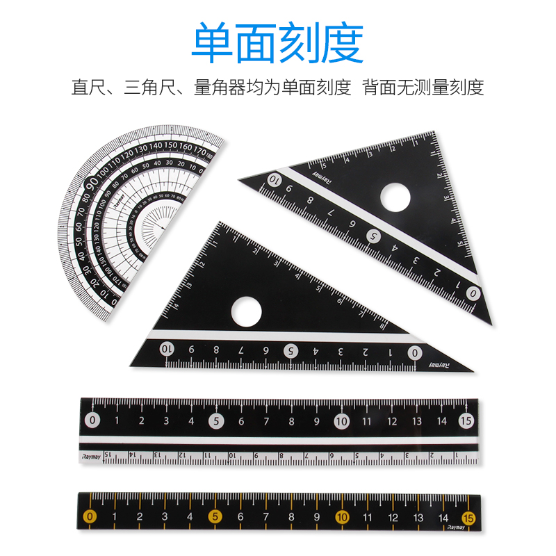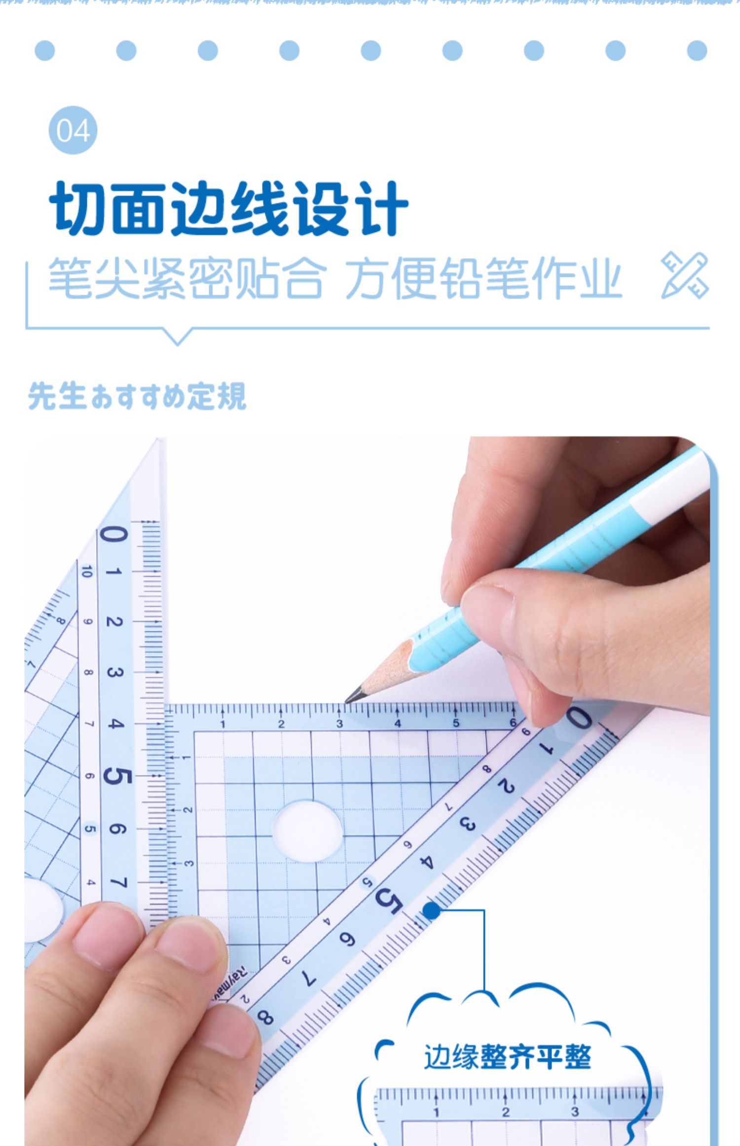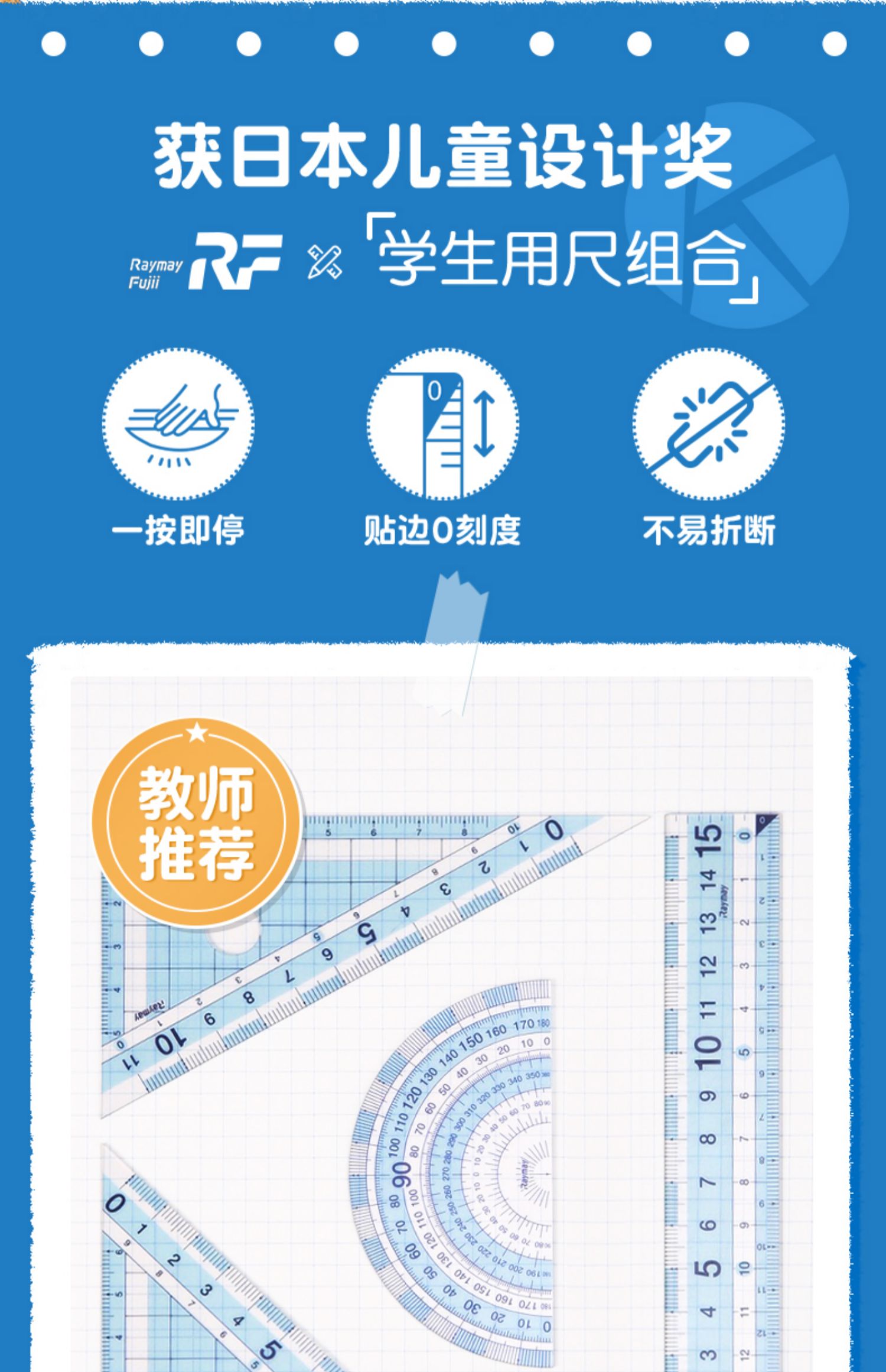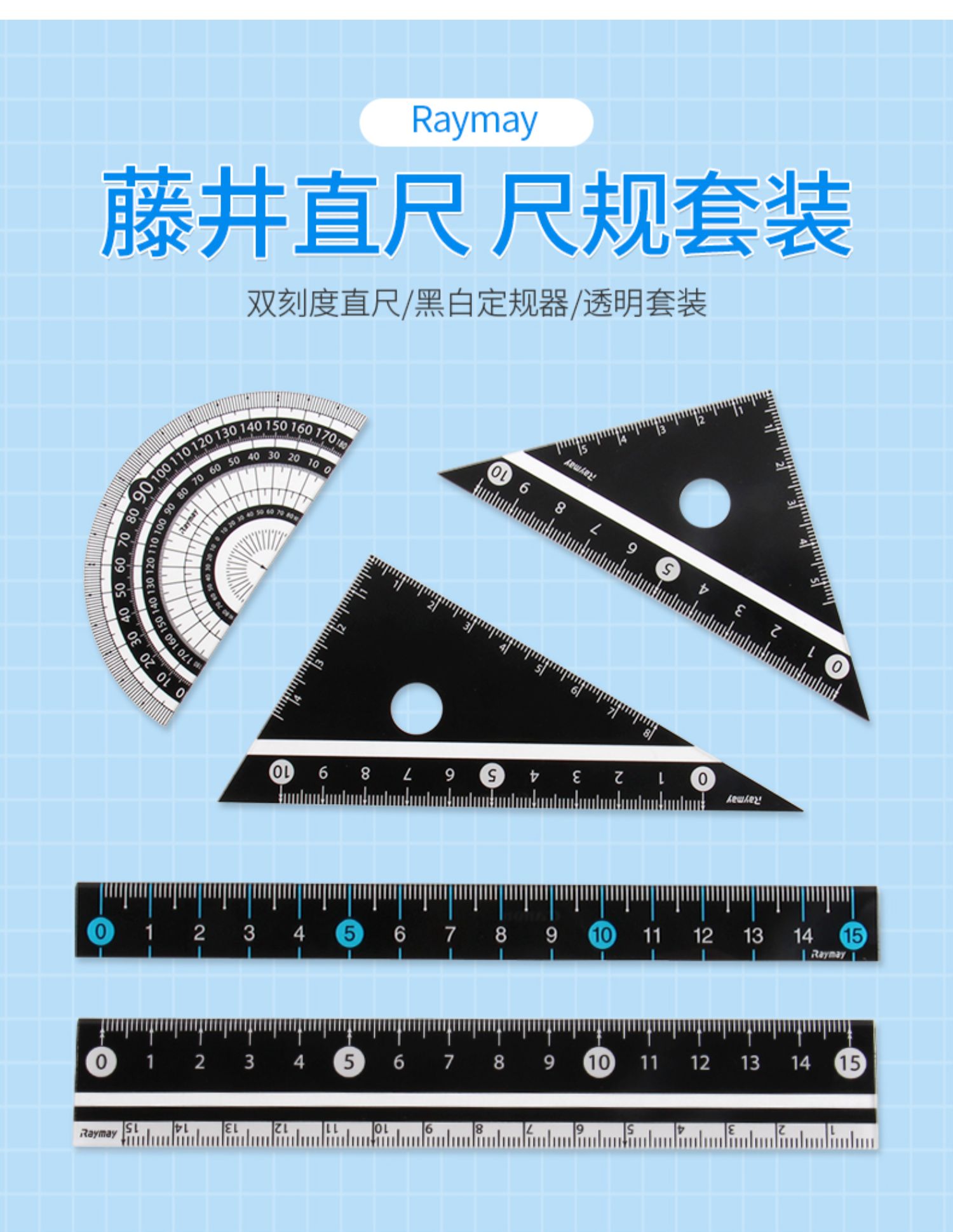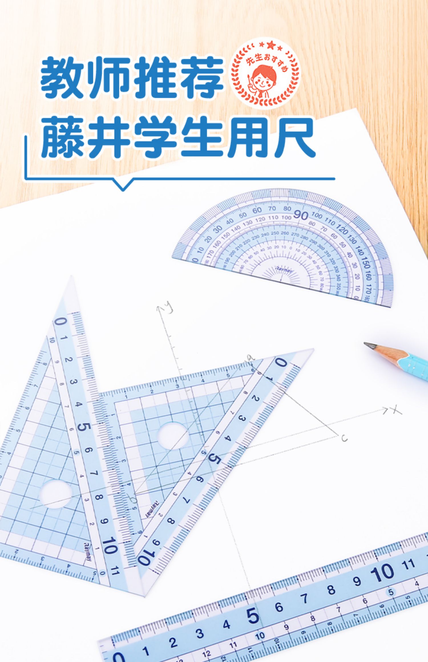藤井尺子套装小学生用专直尺绘图透明多功能儿童测量套尺四件套几何图形量角器三角板老师推荐