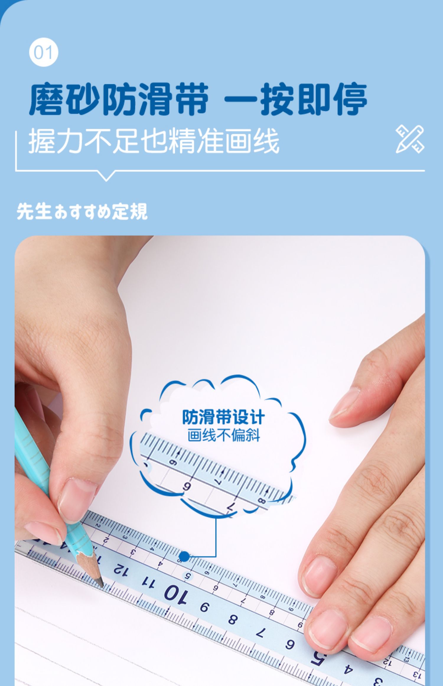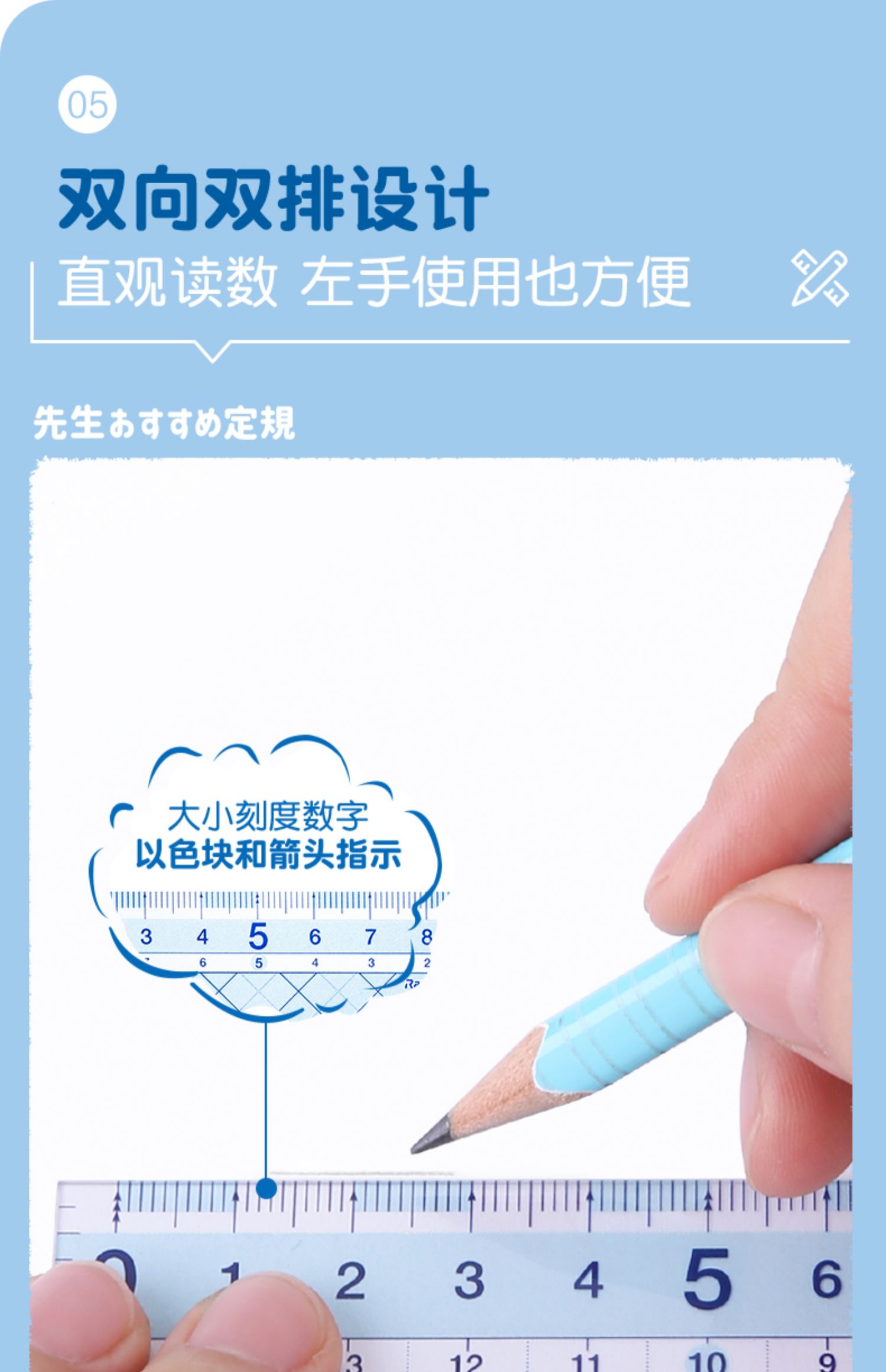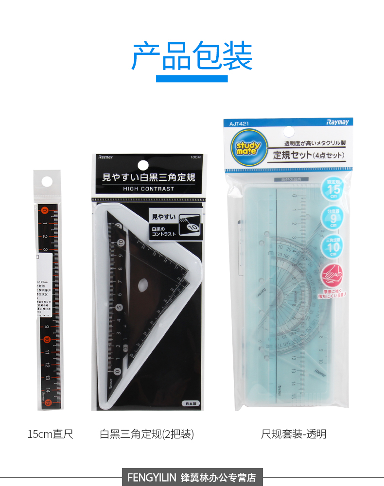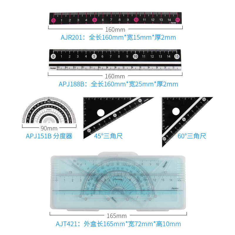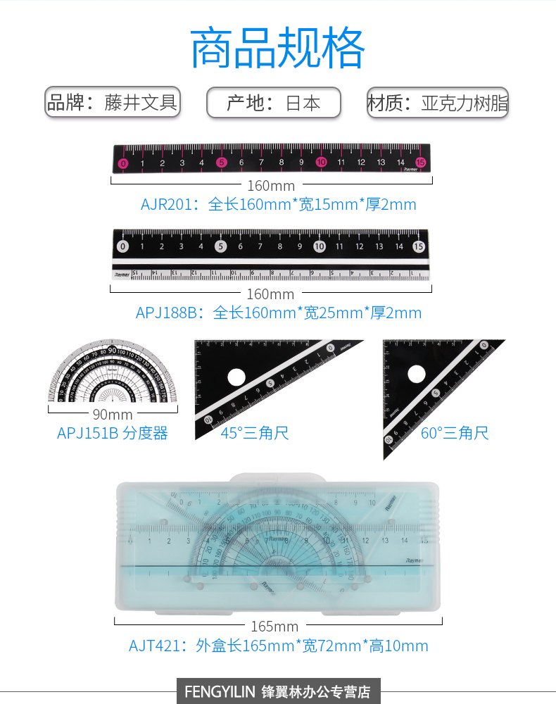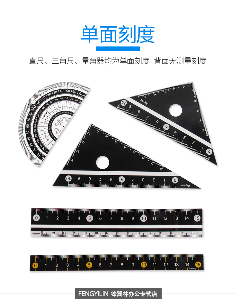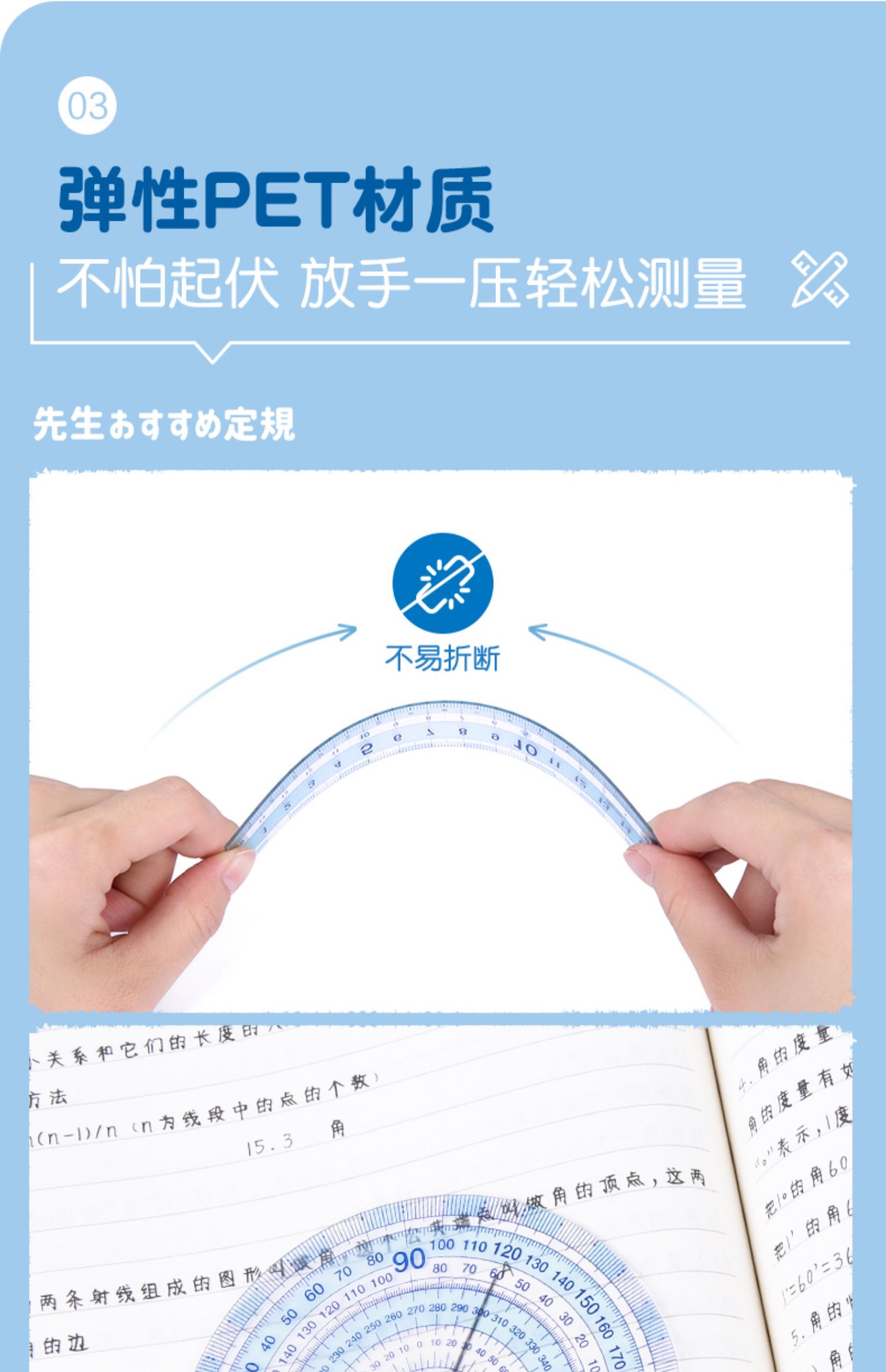 藤井尺子套装小学生用专直尺绘图透明多功能儿童测量套尺四件套几何图形量角器三角板老师推荐