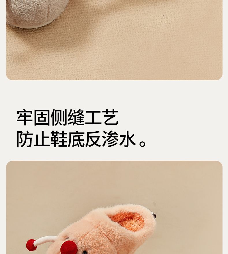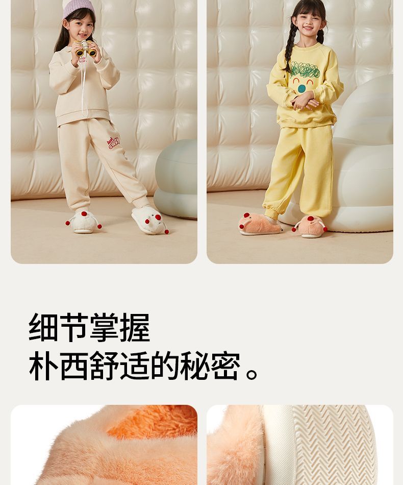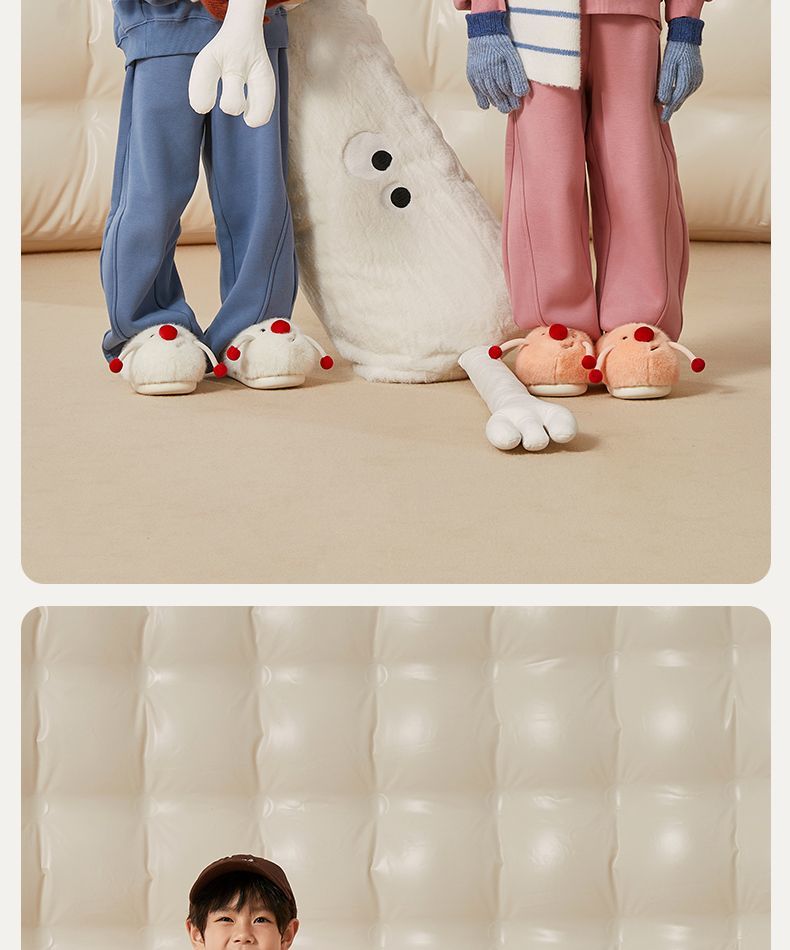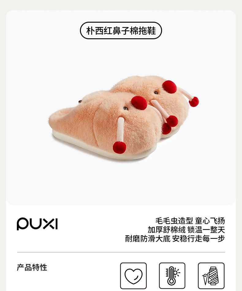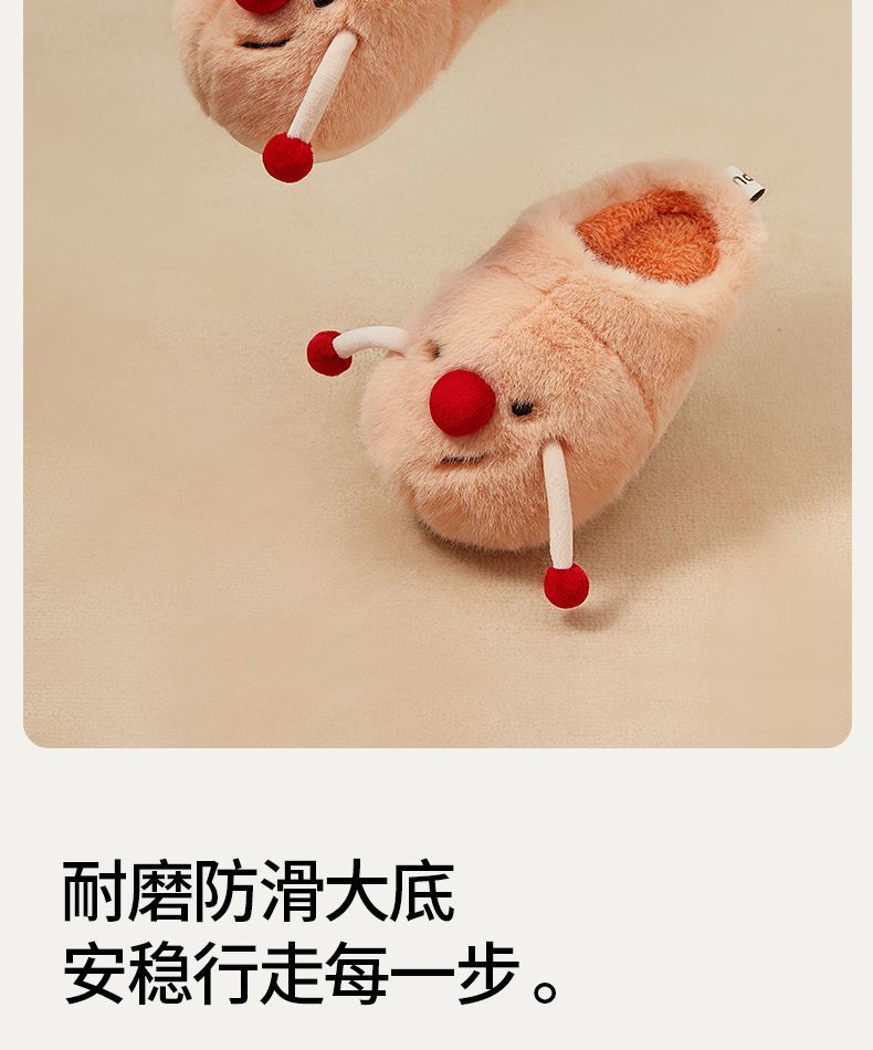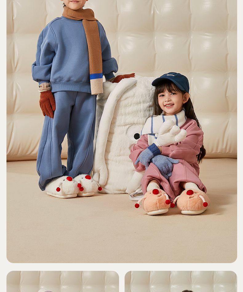 朴西红鼻子儿童棉拖鞋女孩家居室内保暖防滑冬季可爱宝宝拖鞋女童