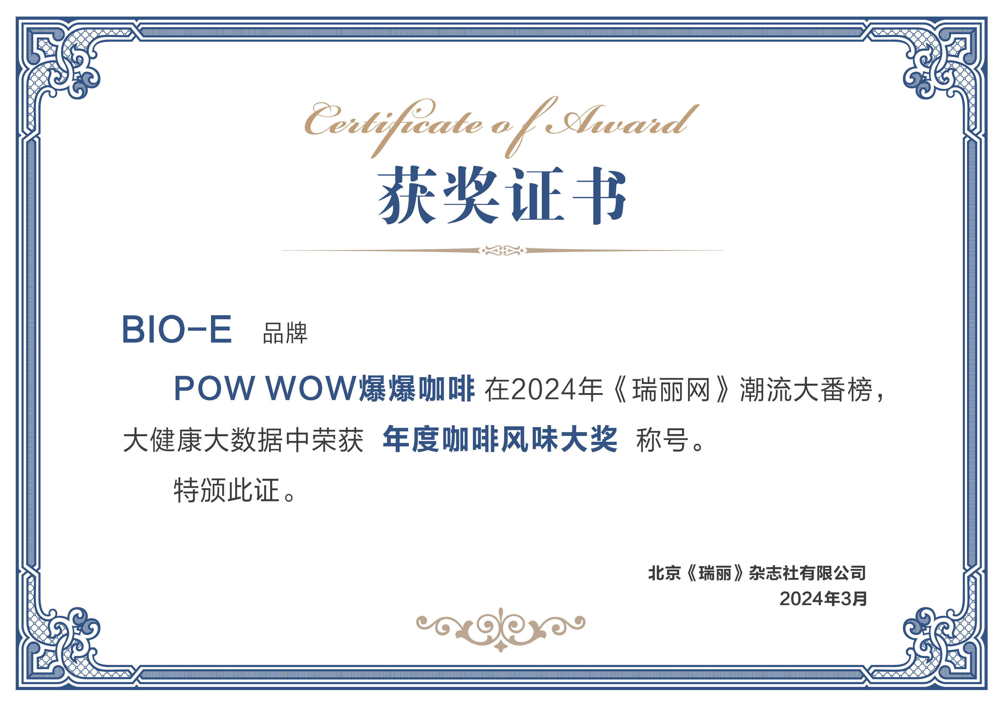 业内杯测冠军!荣获2024瑞丽潮流大番榜年度咖啡风味大奖🏆!同时上榜的还有芭比波朗和CT!