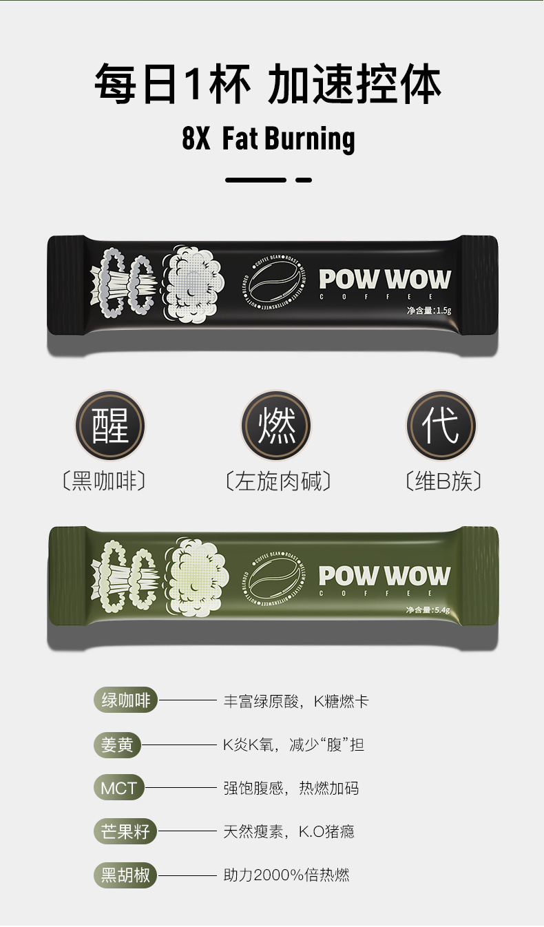 ✅定制成分:绿咖啡、姜黄、黑胡椒、MCT、芒果籽