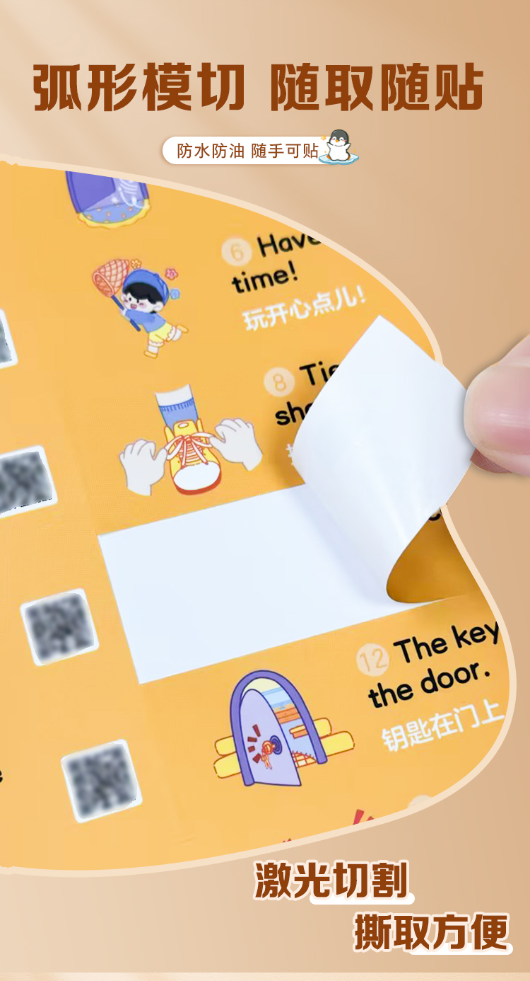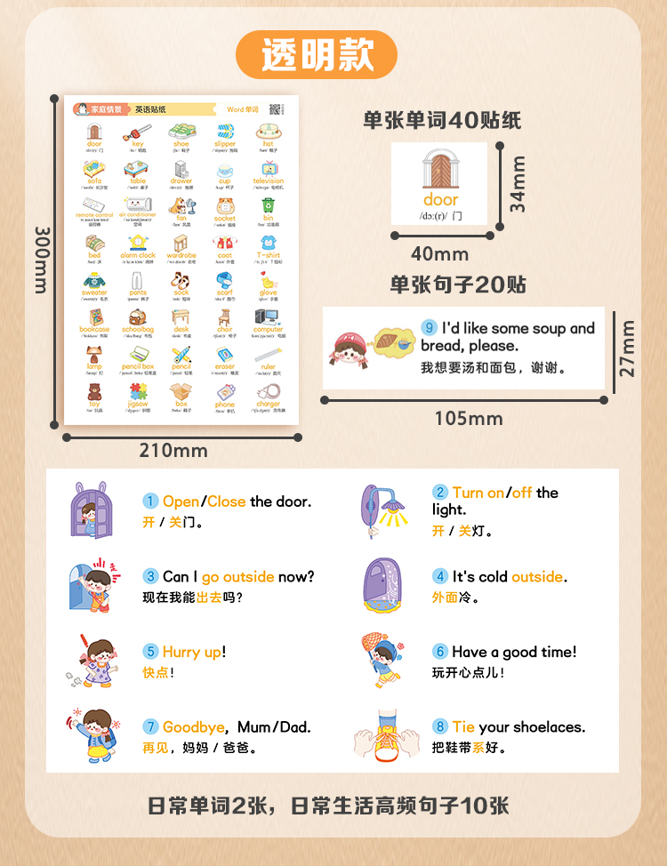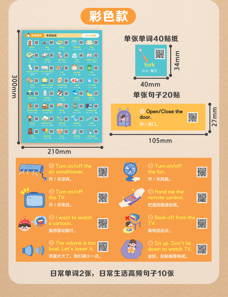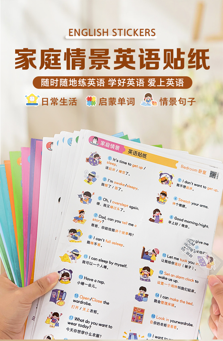 墨点文创 家庭情景英语贴纸 英语口语句子日常生活启蒙单词女孩儿童卡通便利贴幼儿园可爱标签贴防水粘贴不留痕便签纸