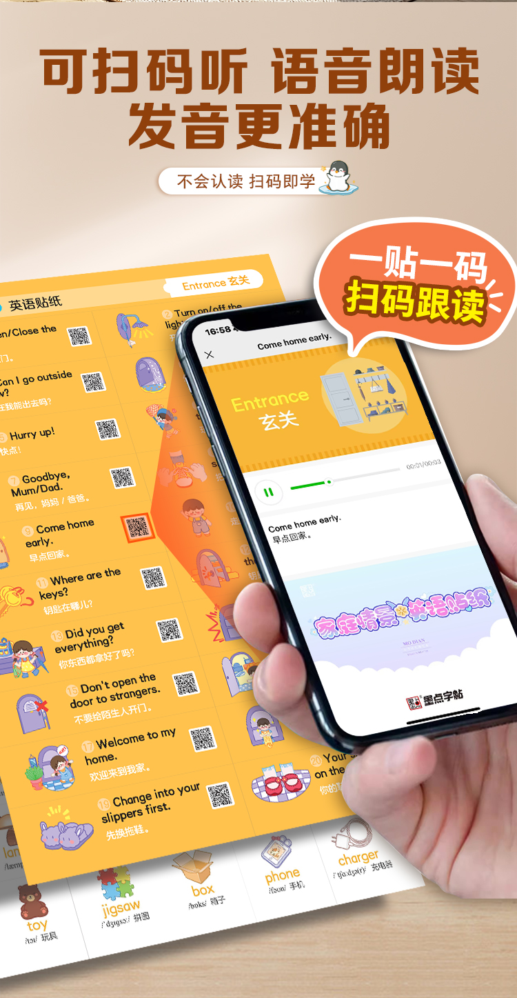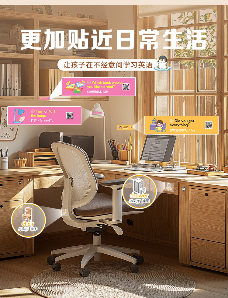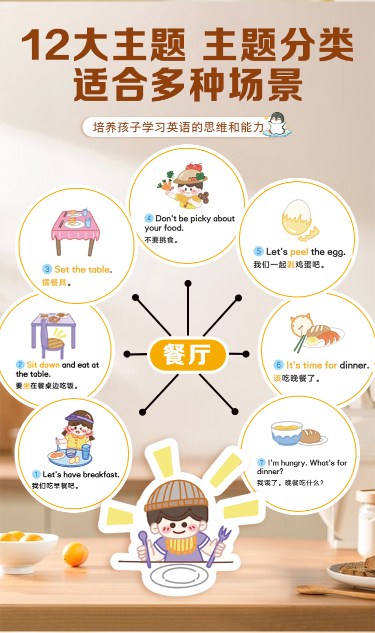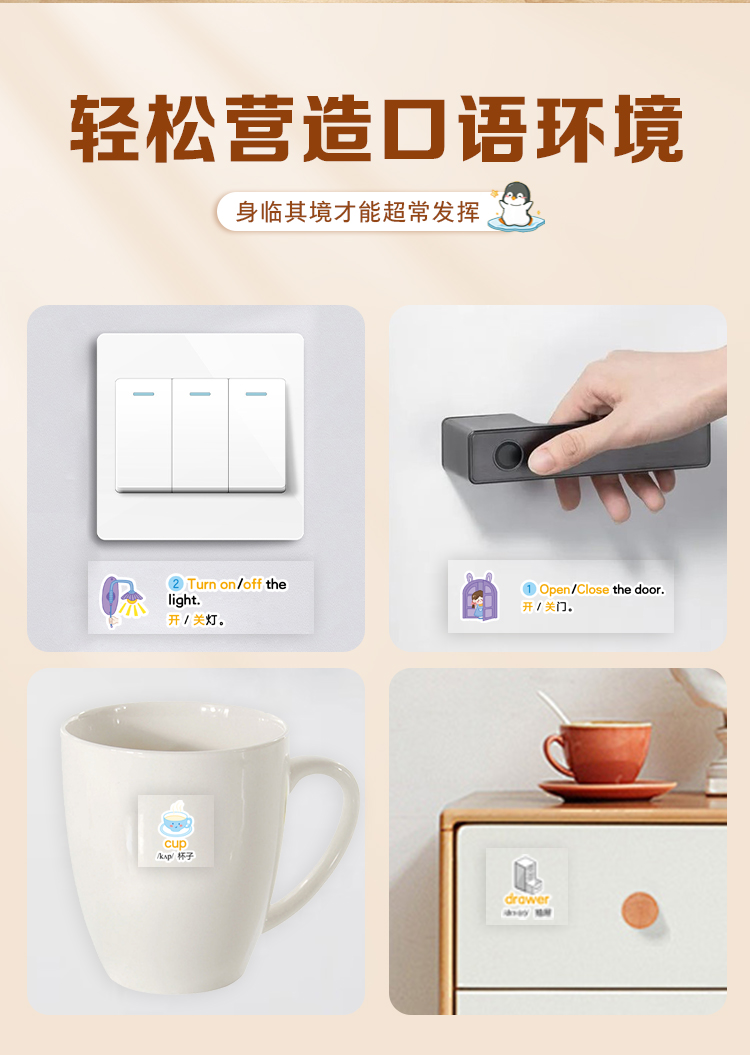 墨点文创 家庭情景英语贴纸 英语口语句子日常生活启蒙单词女孩儿童卡通便利贴幼儿园可爱标签贴防水粘贴不留痕便签纸