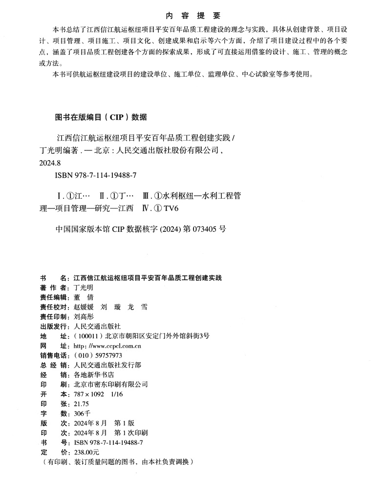 书名:江西信江航运枢纽项目平安百年品质工程创建实践(精装)