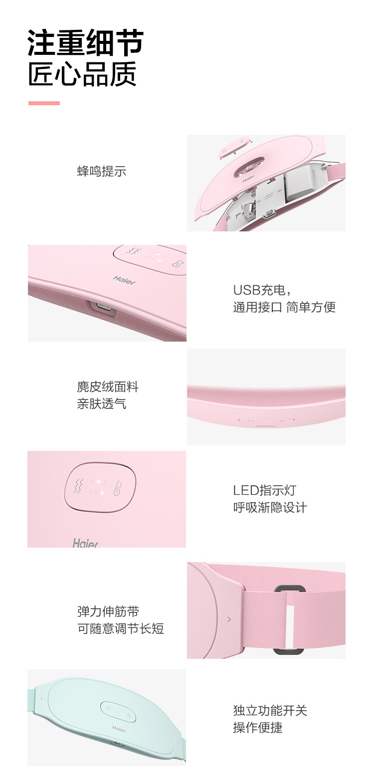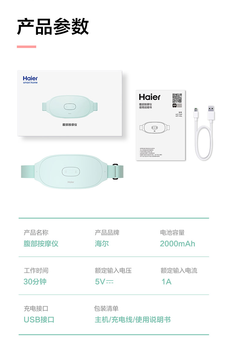 海尔(Haier) 腹部按摩仪 加热震动按摩器 送女友家人生日礼物 粉色 HZT-Y05P 薄荷绿 HZT-Y05L