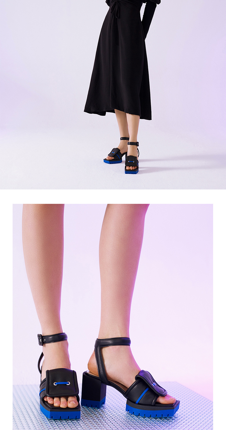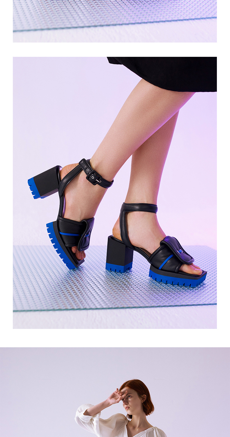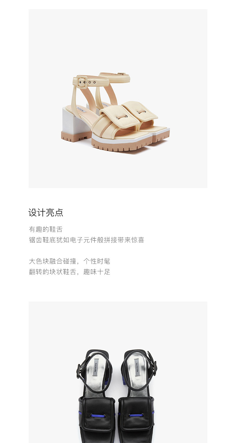 【微瑕疵不退不换】lost in echo 设计师原创 春夏新款 趣味鞋舌高跟脚踝绑带凉鞋