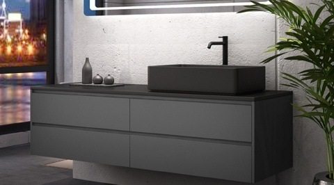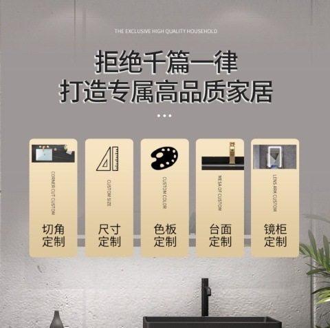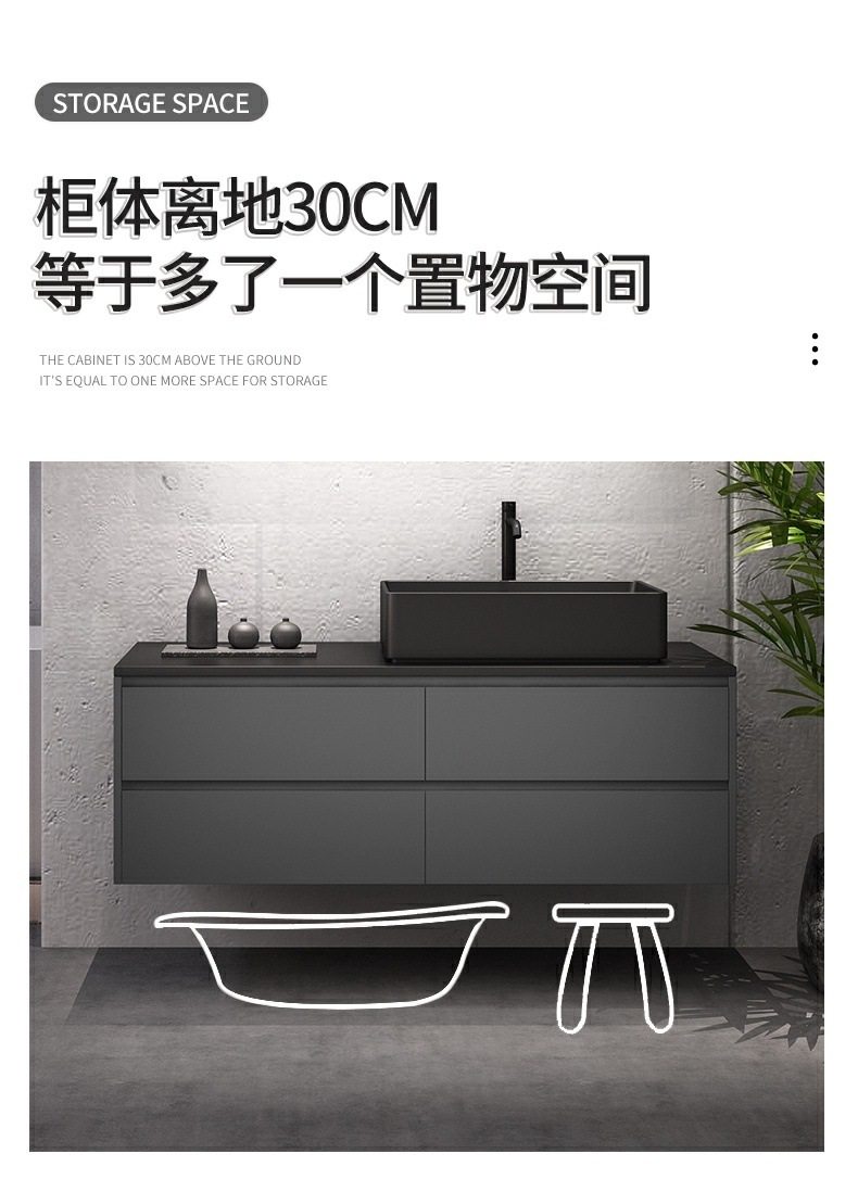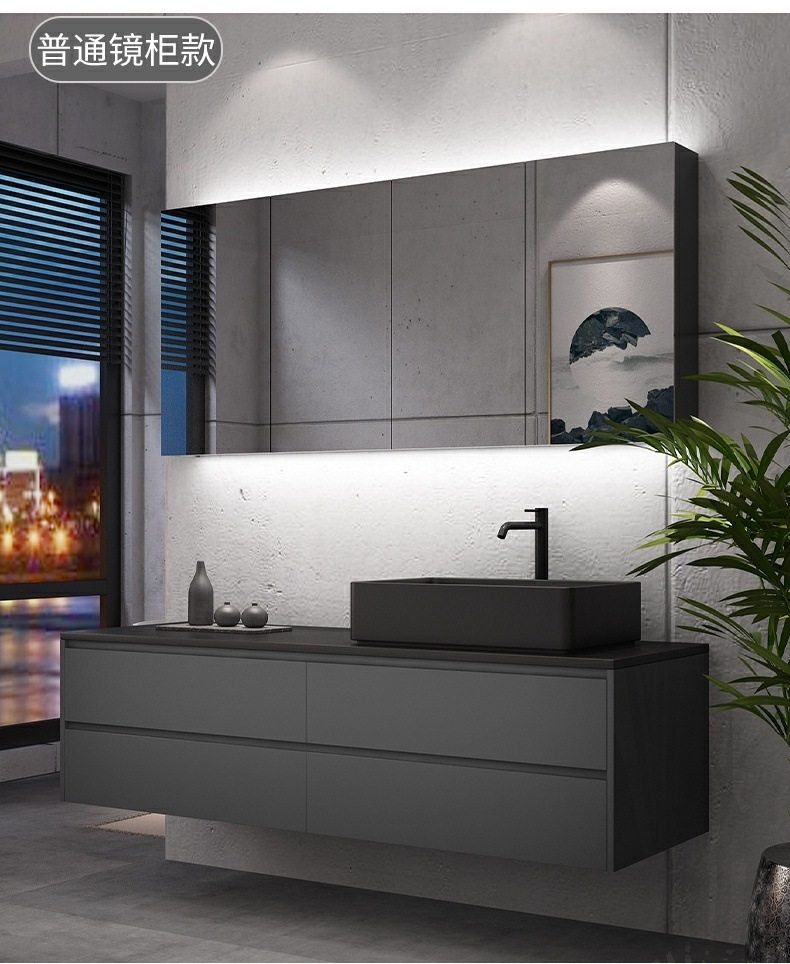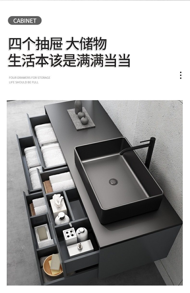 岩板洗手盆柜盆智能洗脸盆洗漱卫生间浴室柜组合台上现代黑色轻奢