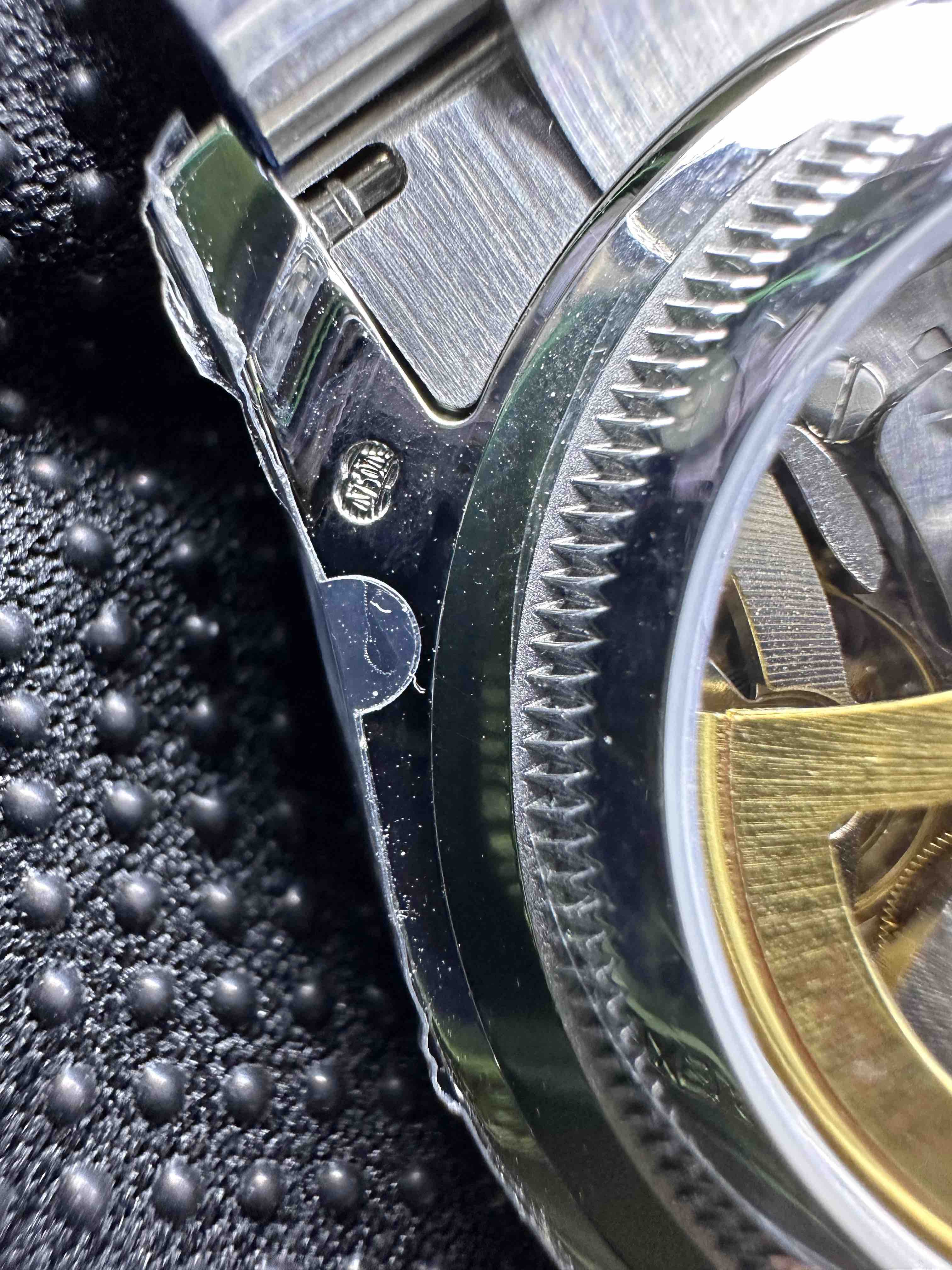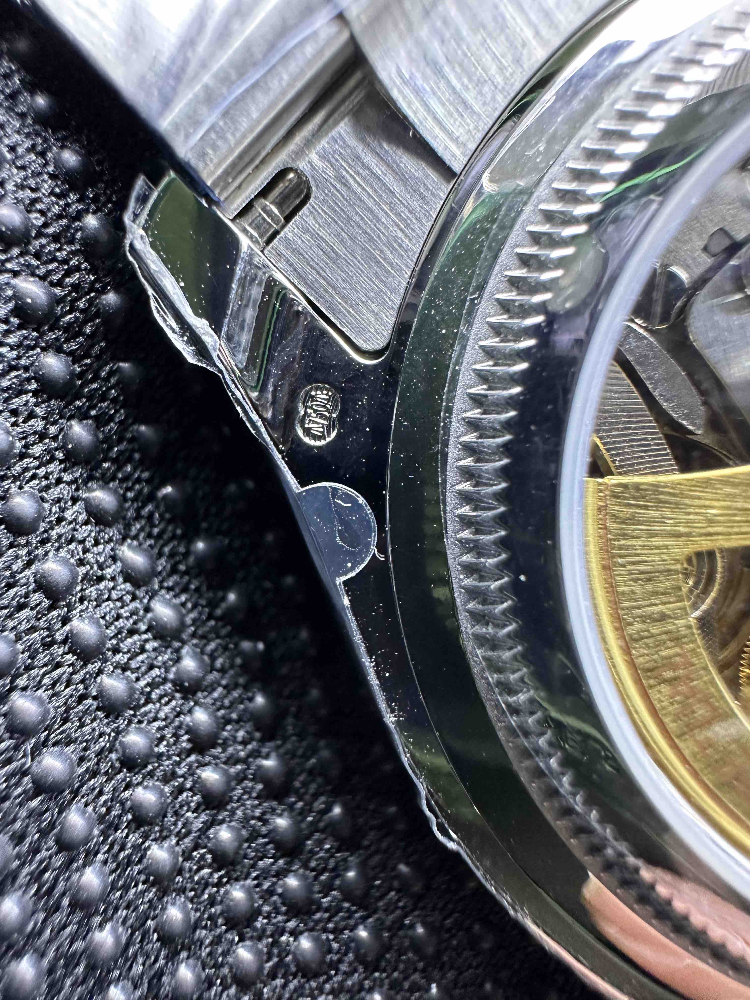 因为冰蓝迪属于pt950特殊款式 不仅是刻字,同样表扣内侧 是唯一一个使用磨砂工艺的。ps市面在售的均为 抛光扣。