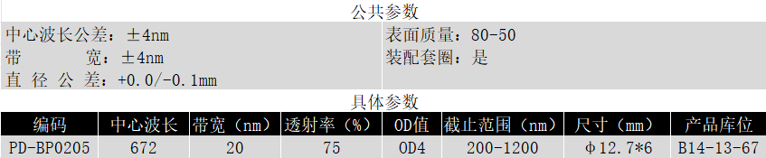 BP672/20K OD4@200-1200 T>75% Φ12.7*6 带通滤光片 (带套圈)