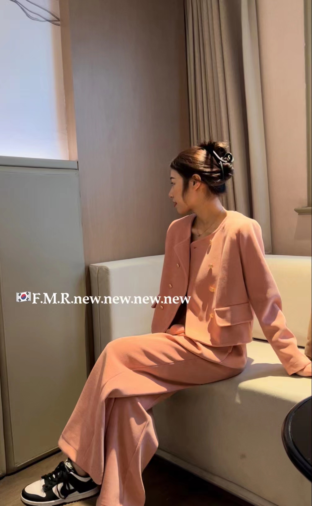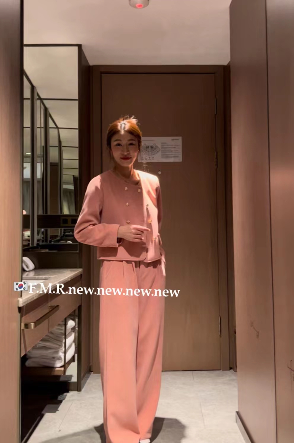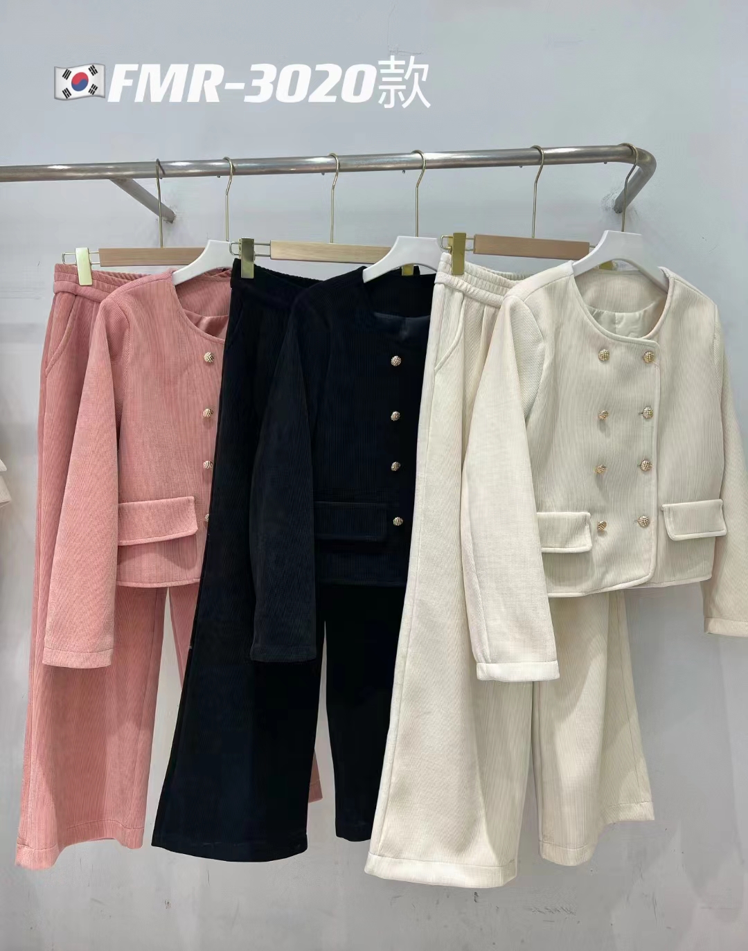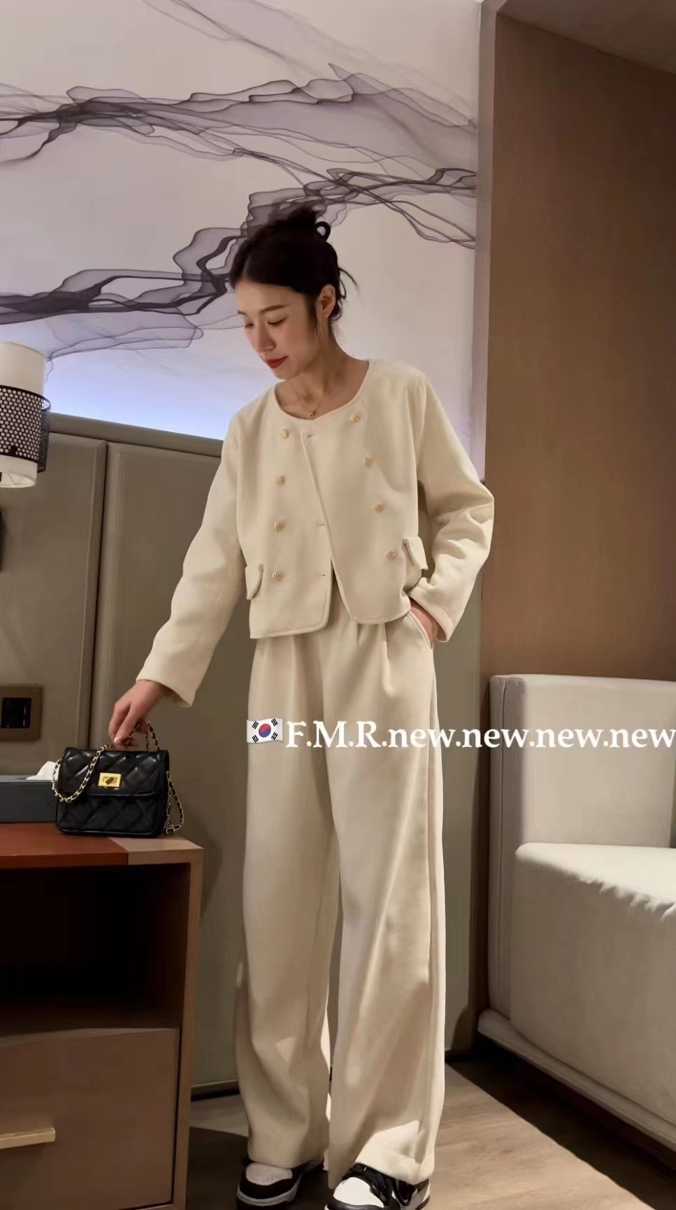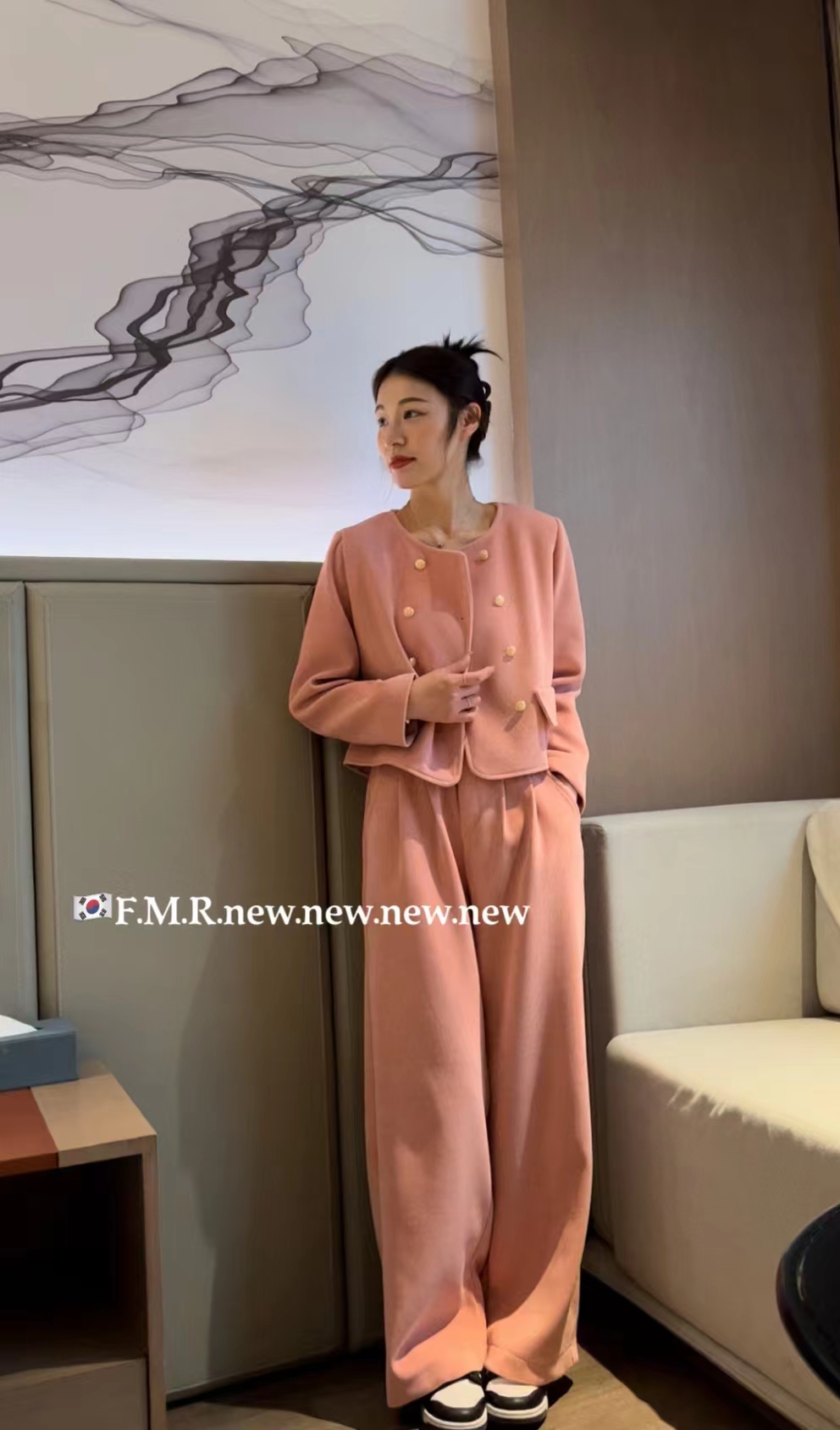 {爆款捡漏}【YW】无忧购春季闺蜜款小香风圆领双排扣灯芯绒高腰宽松直筒长裤两件套装3020(2.9截单后7天发货)25年清仓捡漏