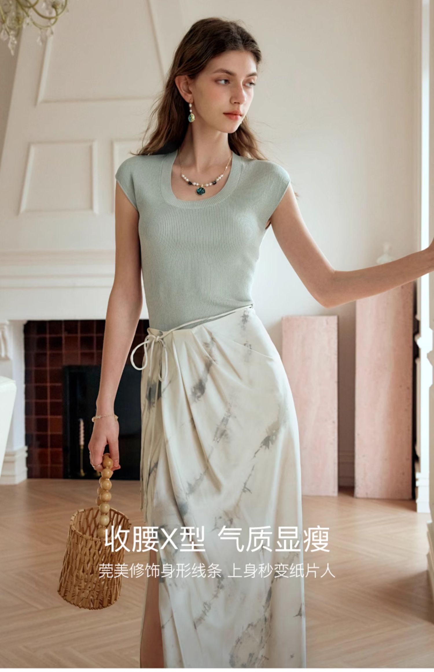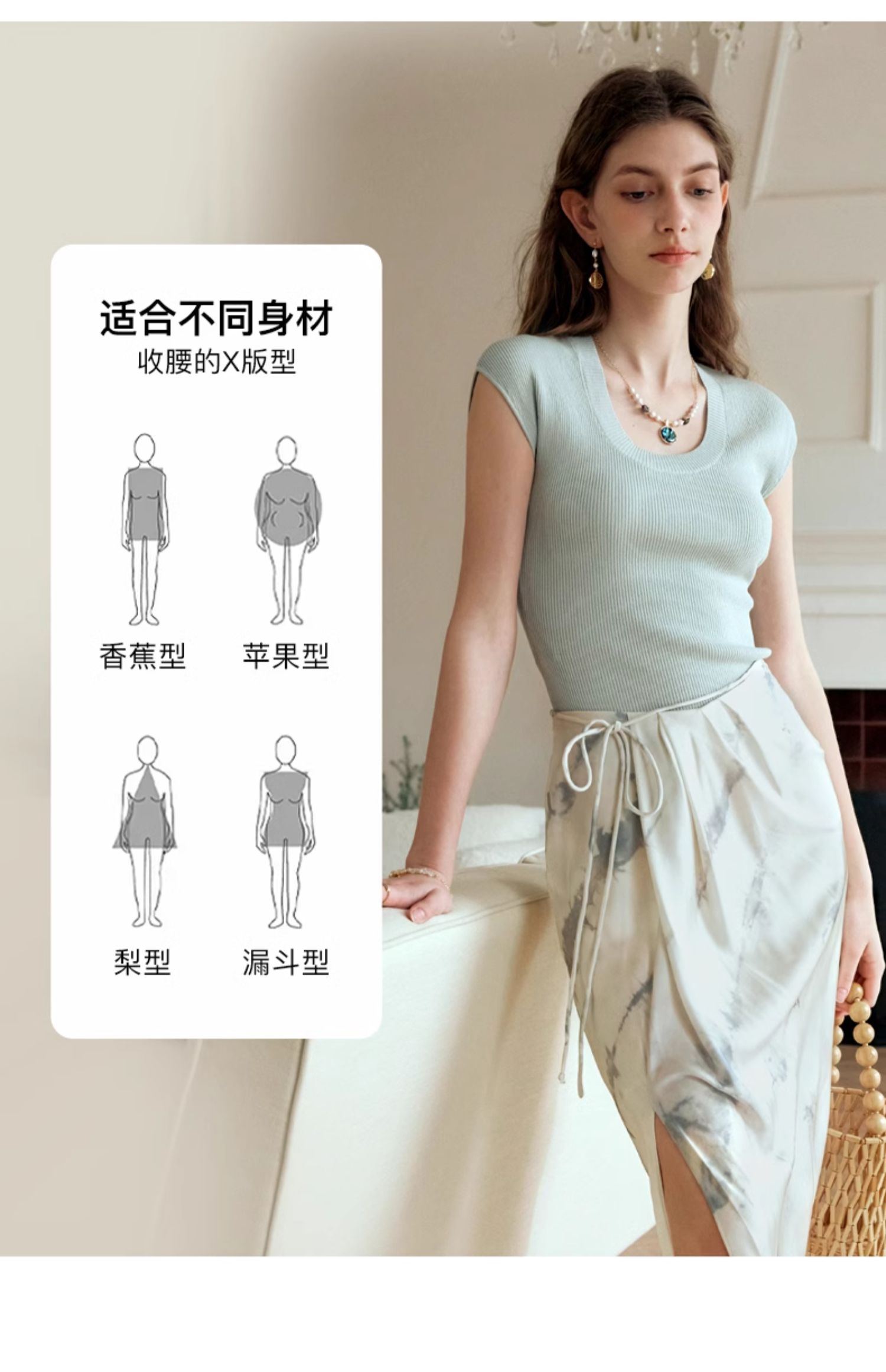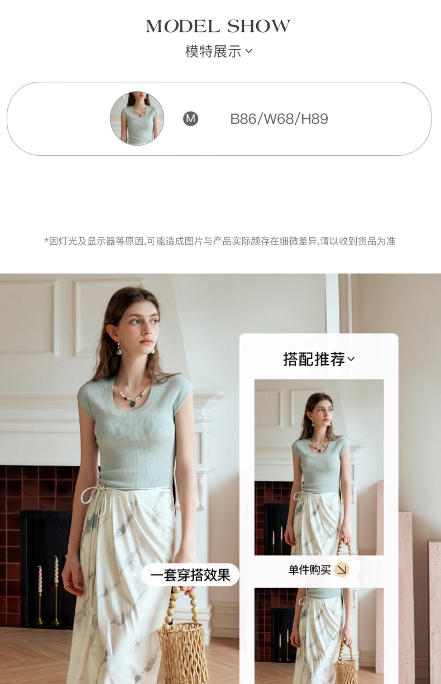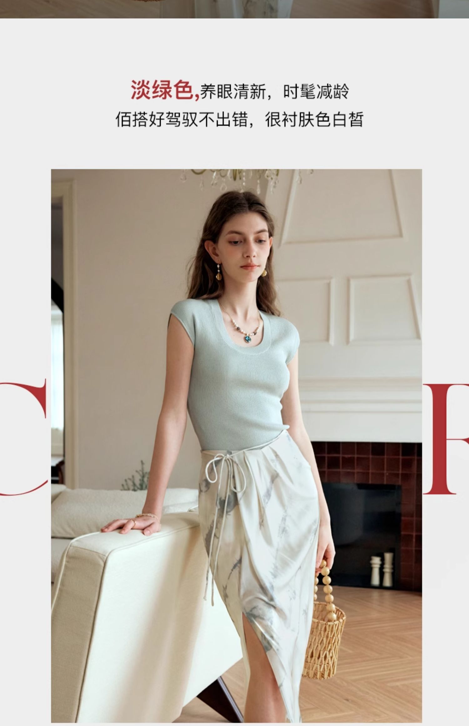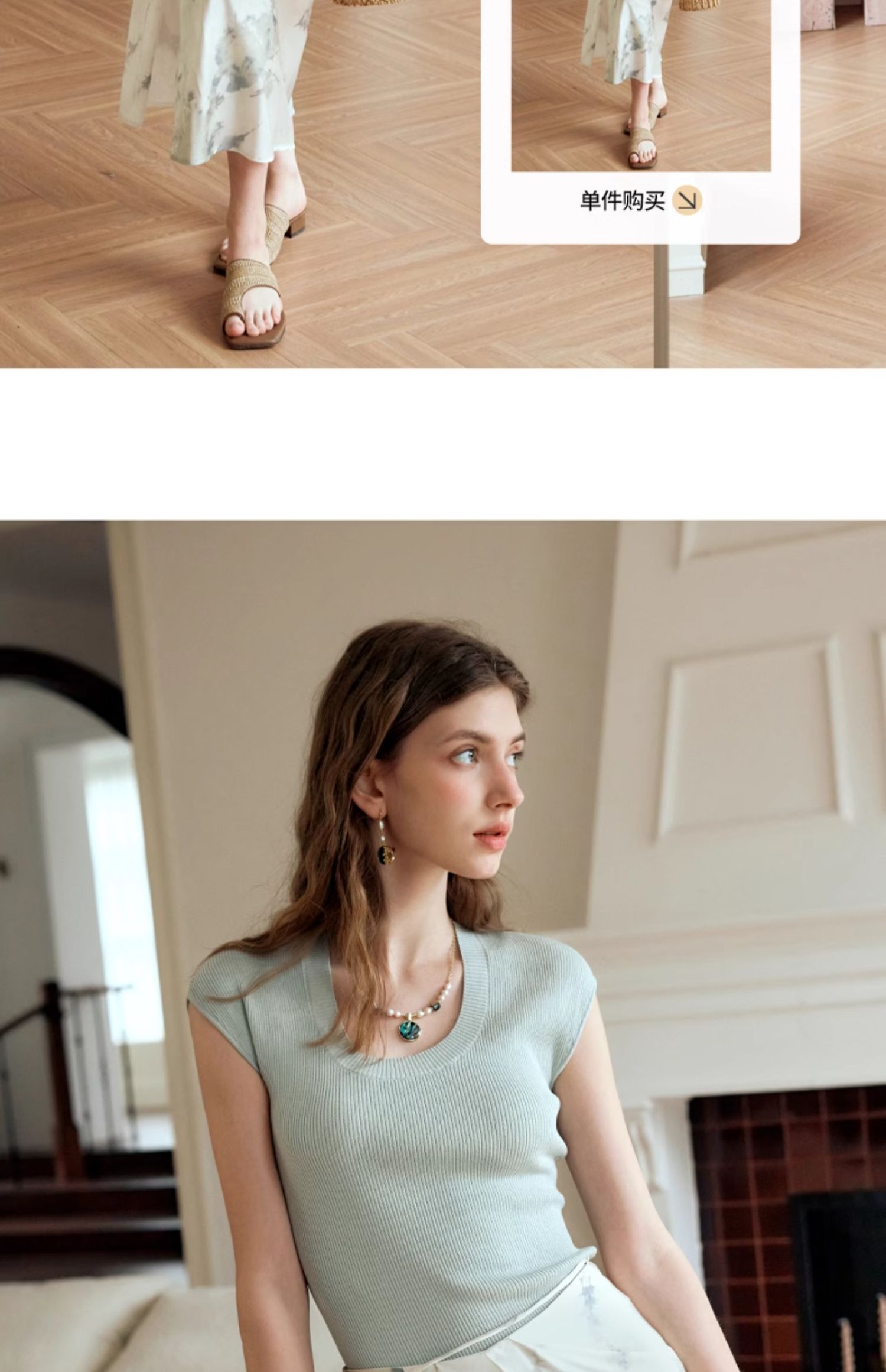 OLrain欧芮儿U型领针织衫女夏季2024年新款纯色小盖袖套头上衣