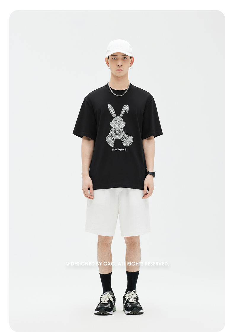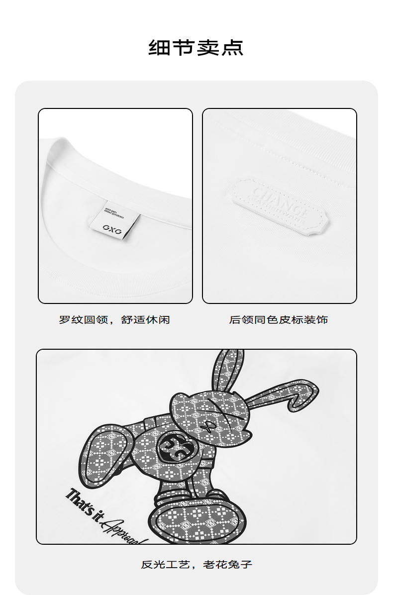 GXG男装 多色圆领短袖T恤兔子老花图案 夏季热卖T恤