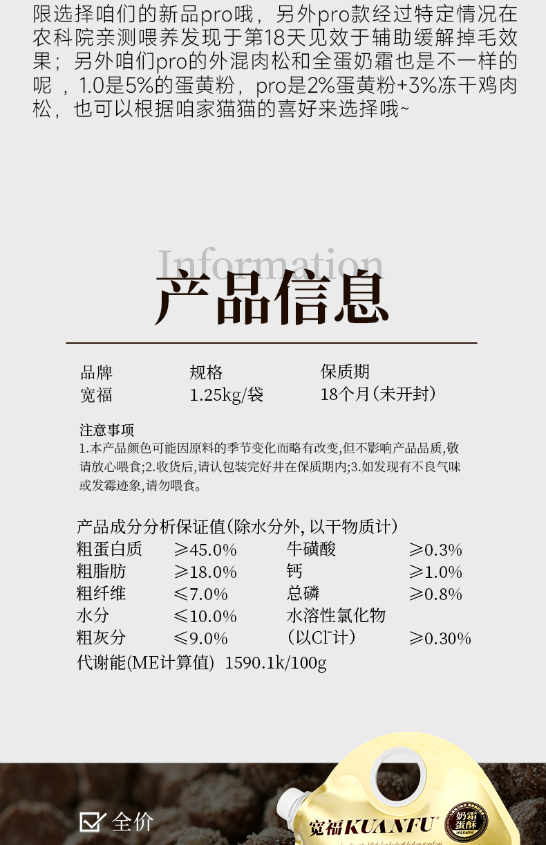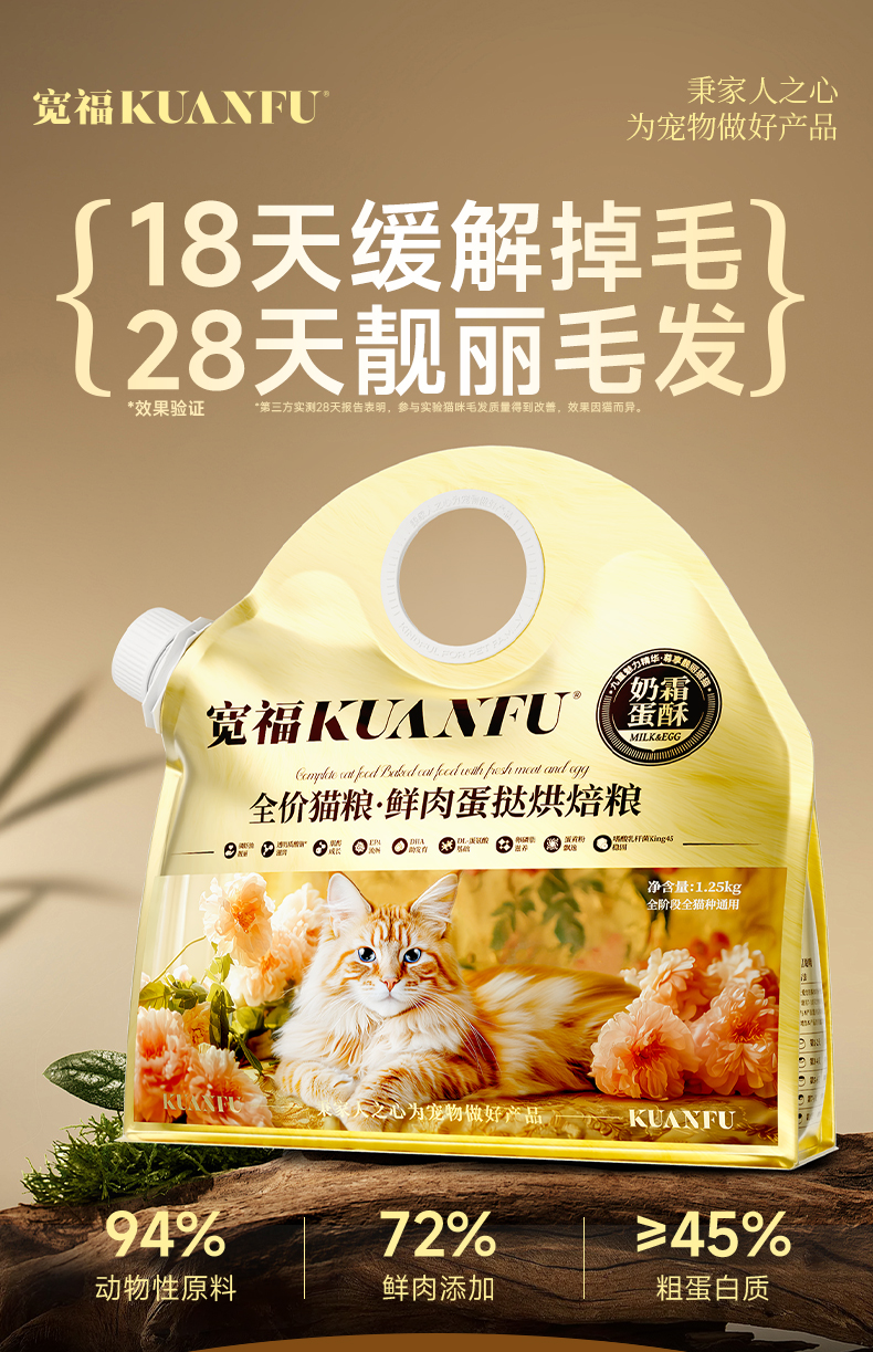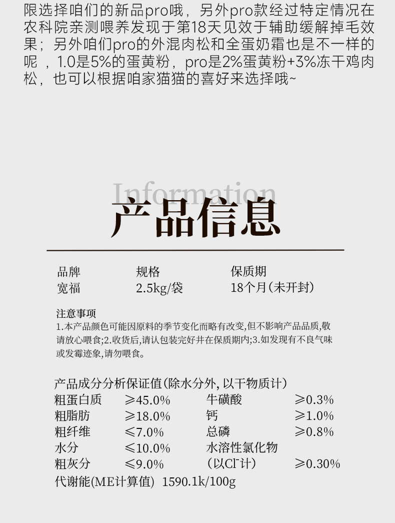 【上新5斤装】【全蛋奶霜pro猫粮】宽福 18天助力缓解掉毛 28天靓丽毛发 8小时低温慢烘 2种益生元呵护肠胃 添加玻尿酸提高皮肤水分