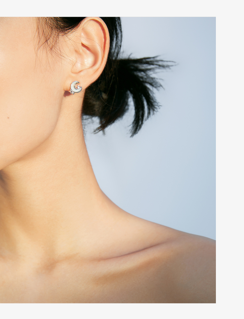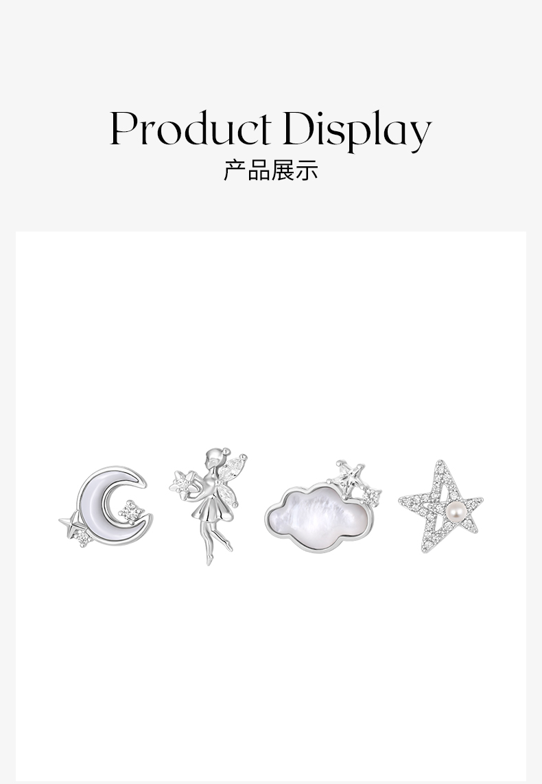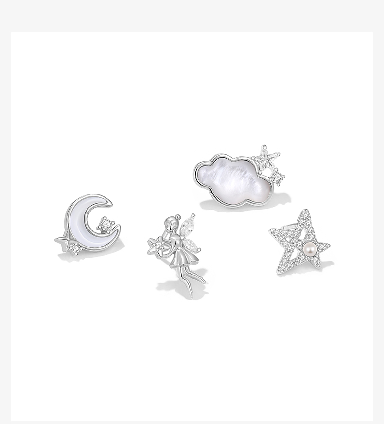 ZEGL设计师秋夜甜梦系列星月云朵仙子耳钉女贝壳耳环925银针耳饰