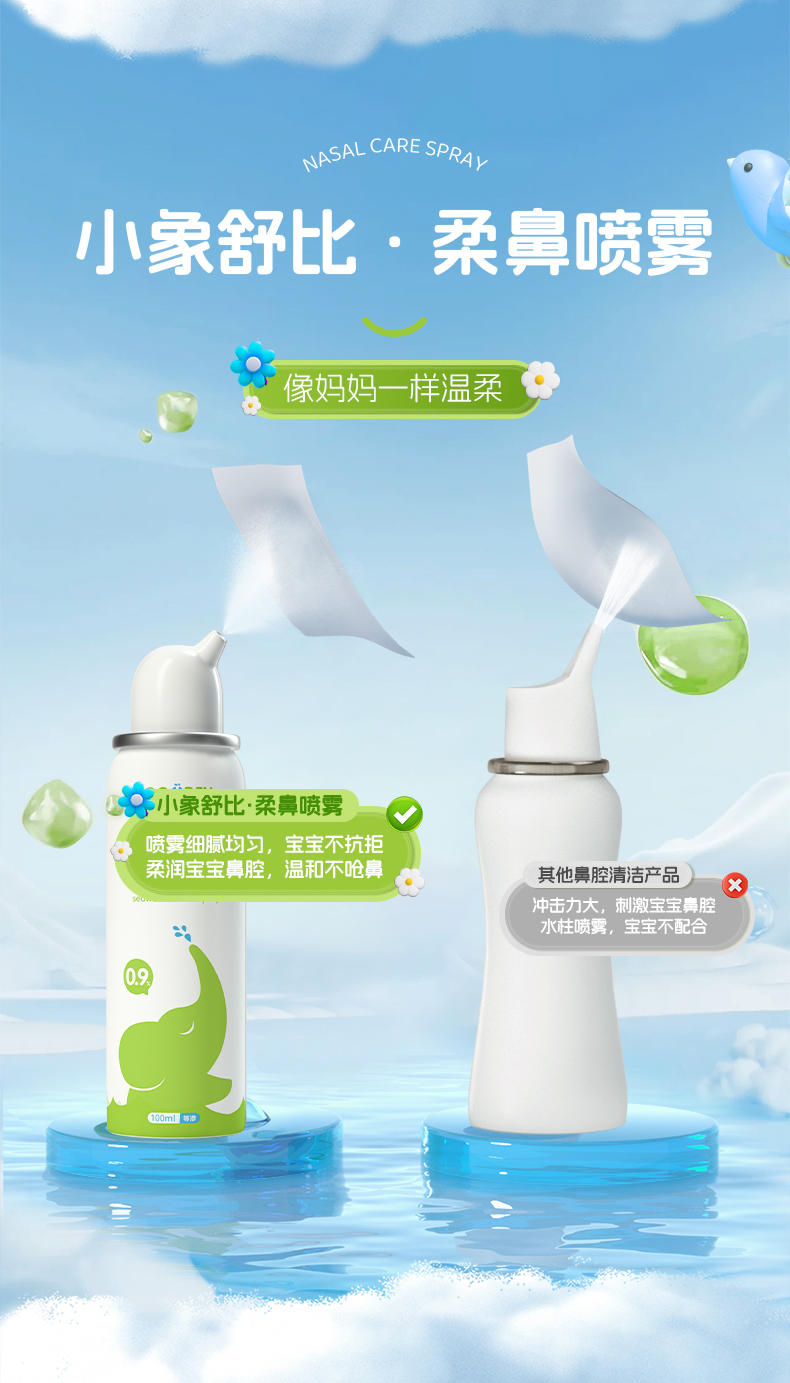 *【享喂优选】小象舒比 护鼻喷剂 海盐水 鼻喷雾 等渗/高渗 0岁+宝宝/孕婴童护理清洁100ml