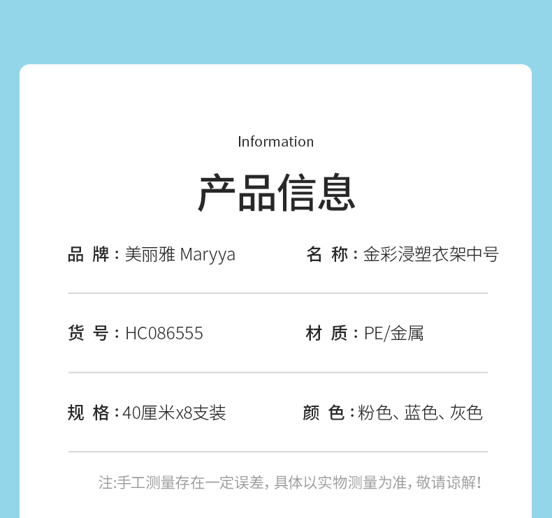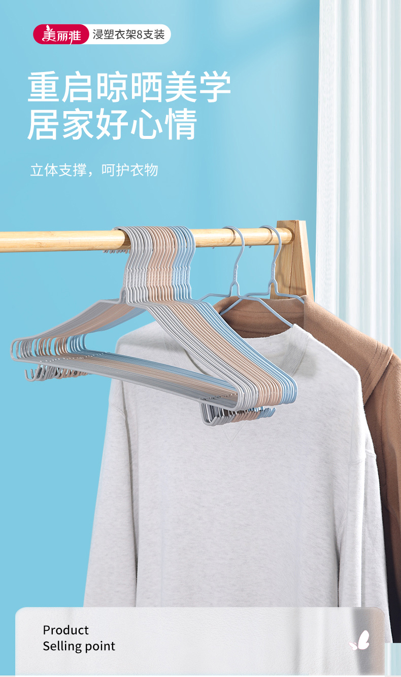 【批发】美丽雅金彩浸塑衣架中号8支入(40cm)