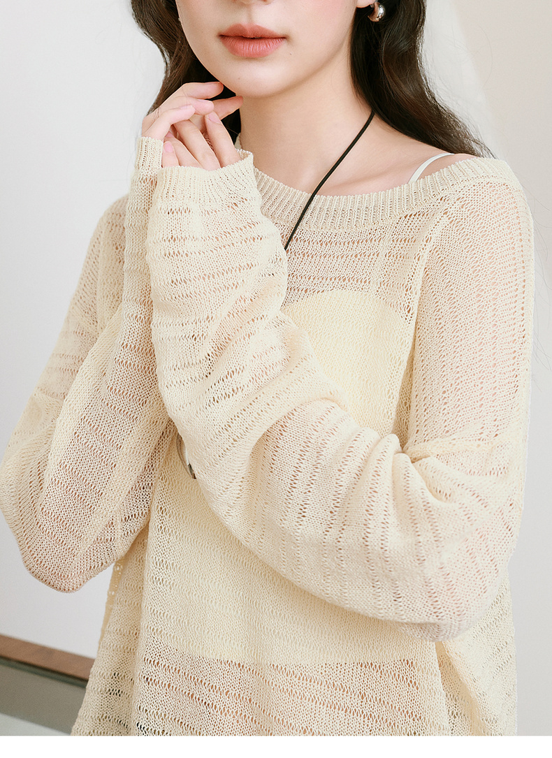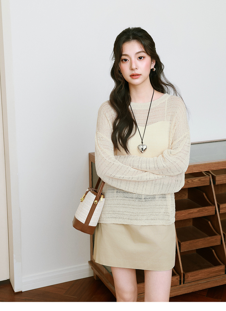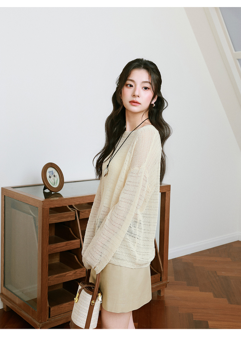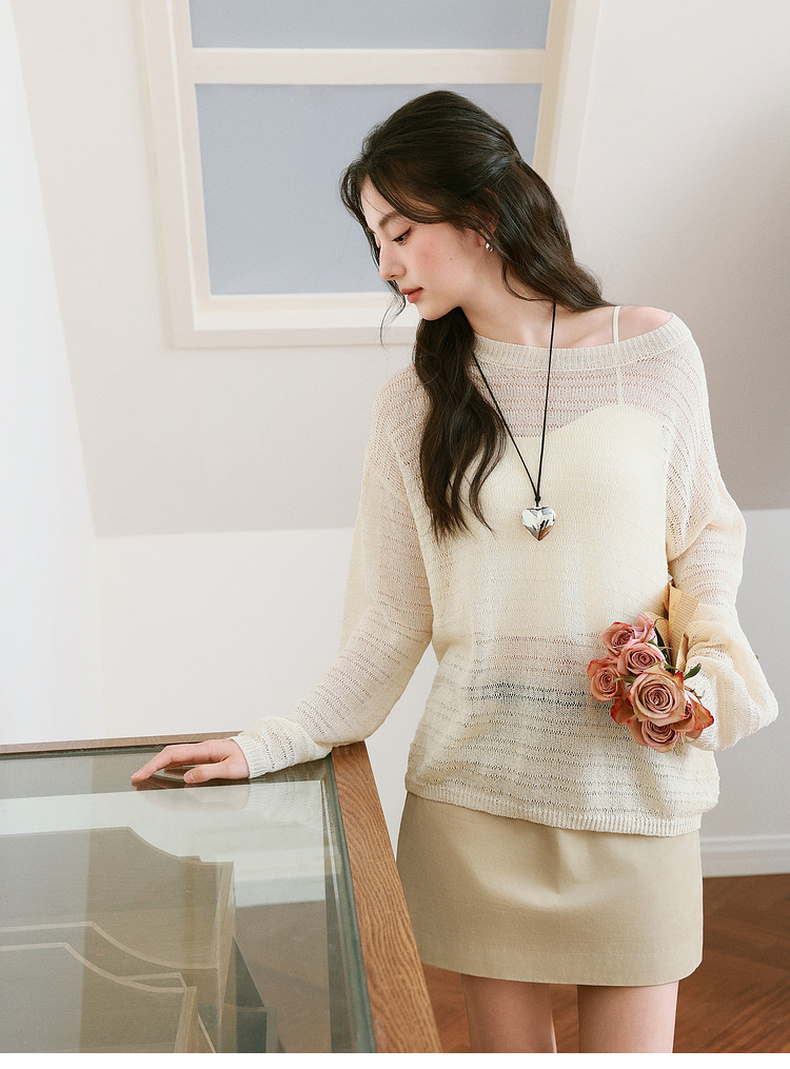 【严选】诗凡黎进口和纸纱镂空针织衫微透罩衫25夏新款套头轻薄慵懒风上衣7G3331421