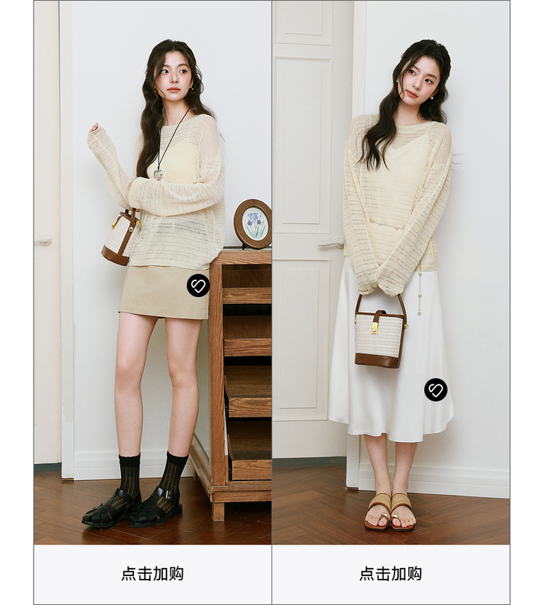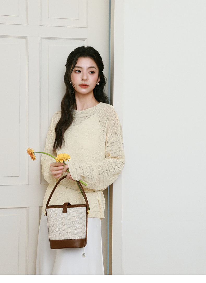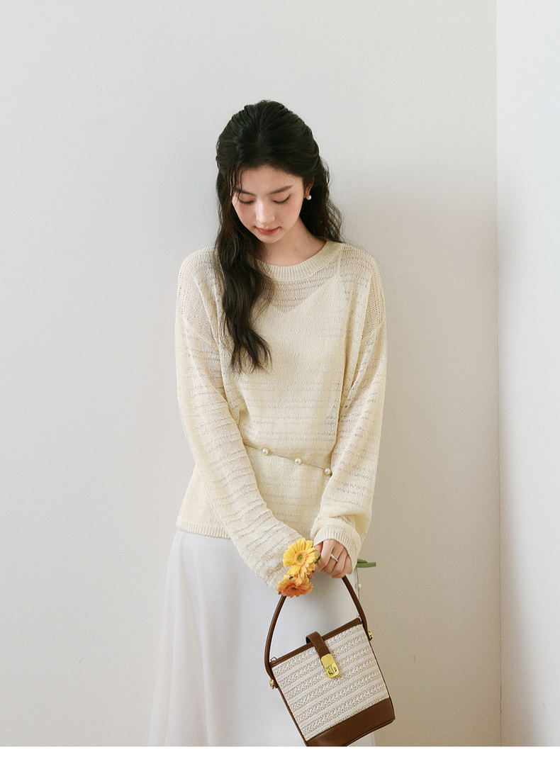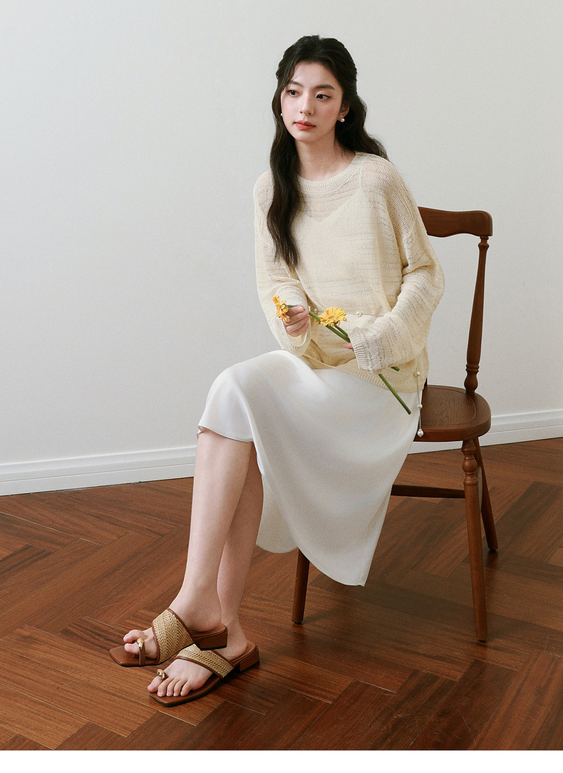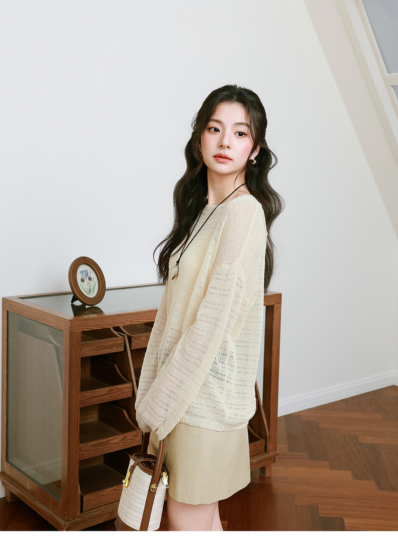 【严选】诗凡黎进口和纸纱镂空针织衫微透罩衫25夏新款套头轻薄慵懒风上衣7G3331421