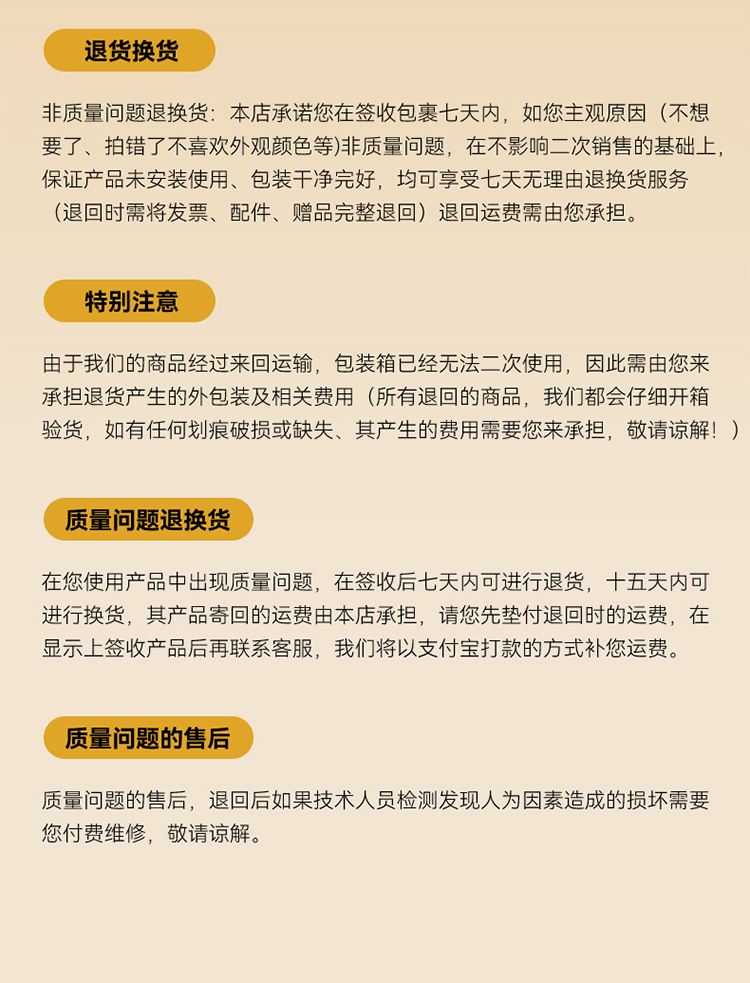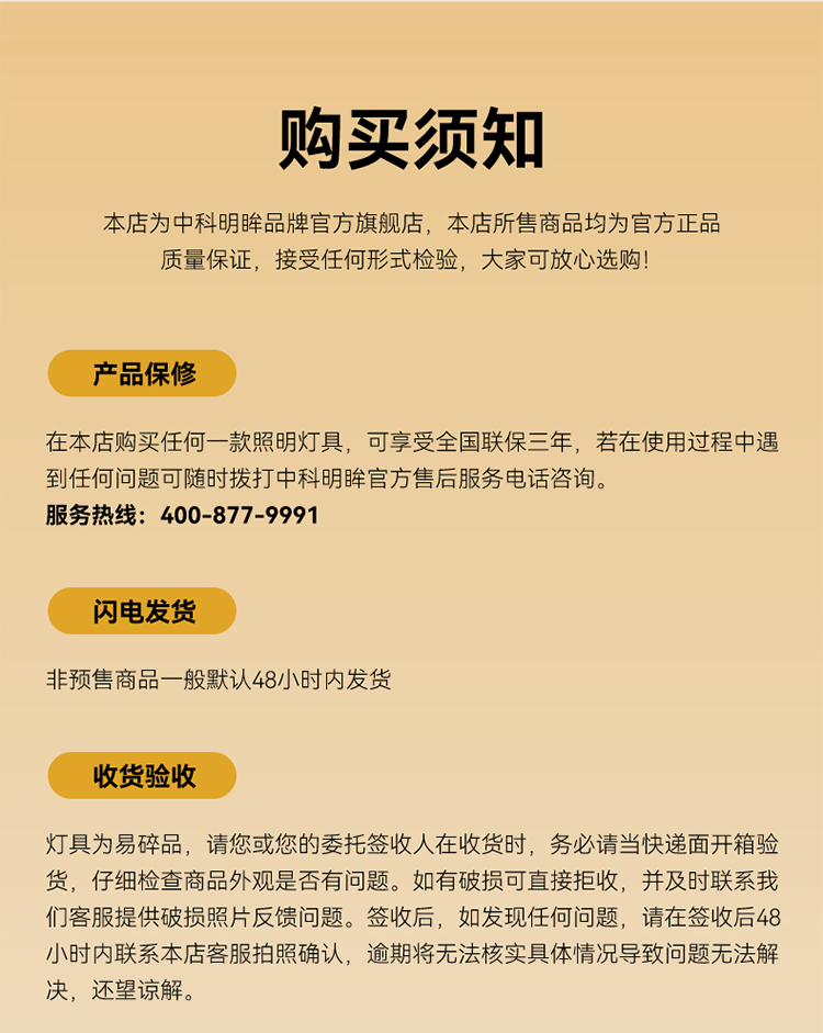 7、退货换政策:产品支持7天无理由退换货,台灯和吸顶灯质保三年,灯珠终身保修(吸顶灯安装后不支持退货)