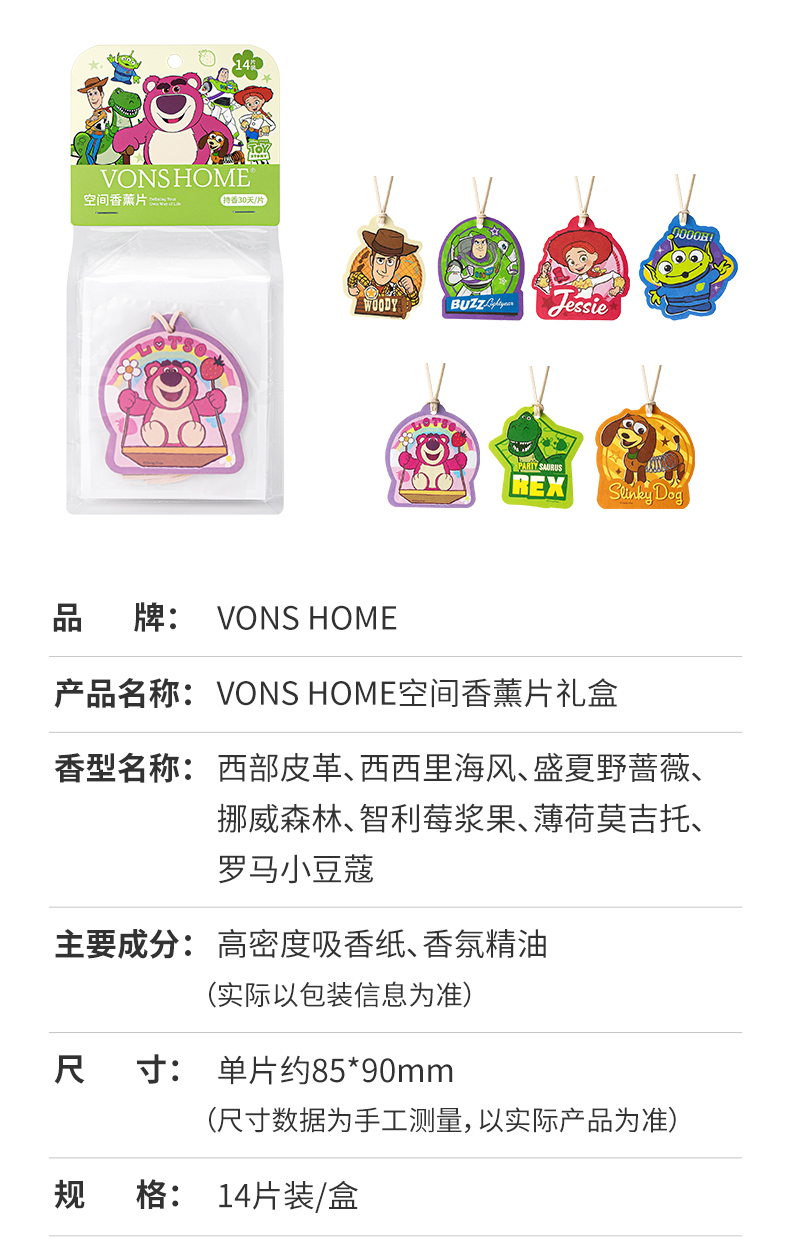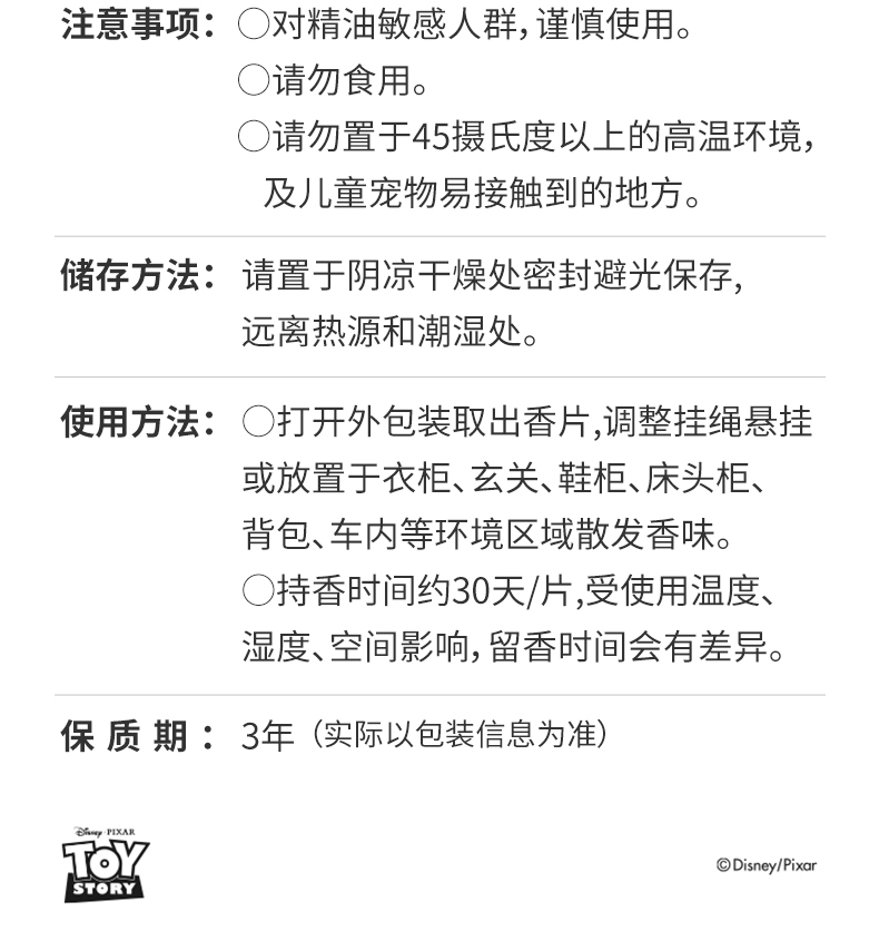 【理想屋】玩具总动员香片车载香薰除味衣物香氛持久留香山姆会员商店同款