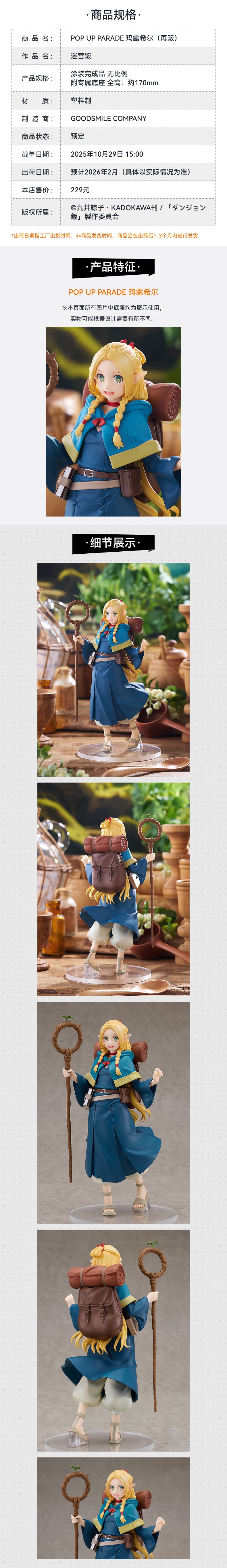 【GSC预售定金】POP UP PARADE 玛露希尔 迷宫饭 手办模玩