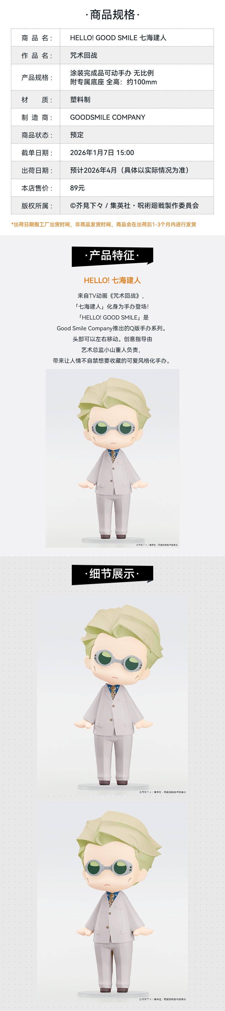 【GSC补款】HELLO! GOOD SMILE 七海建人 咒术回战 手办模玩