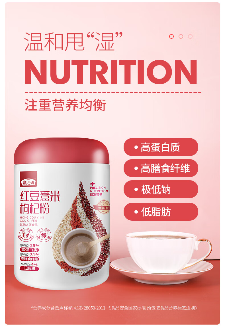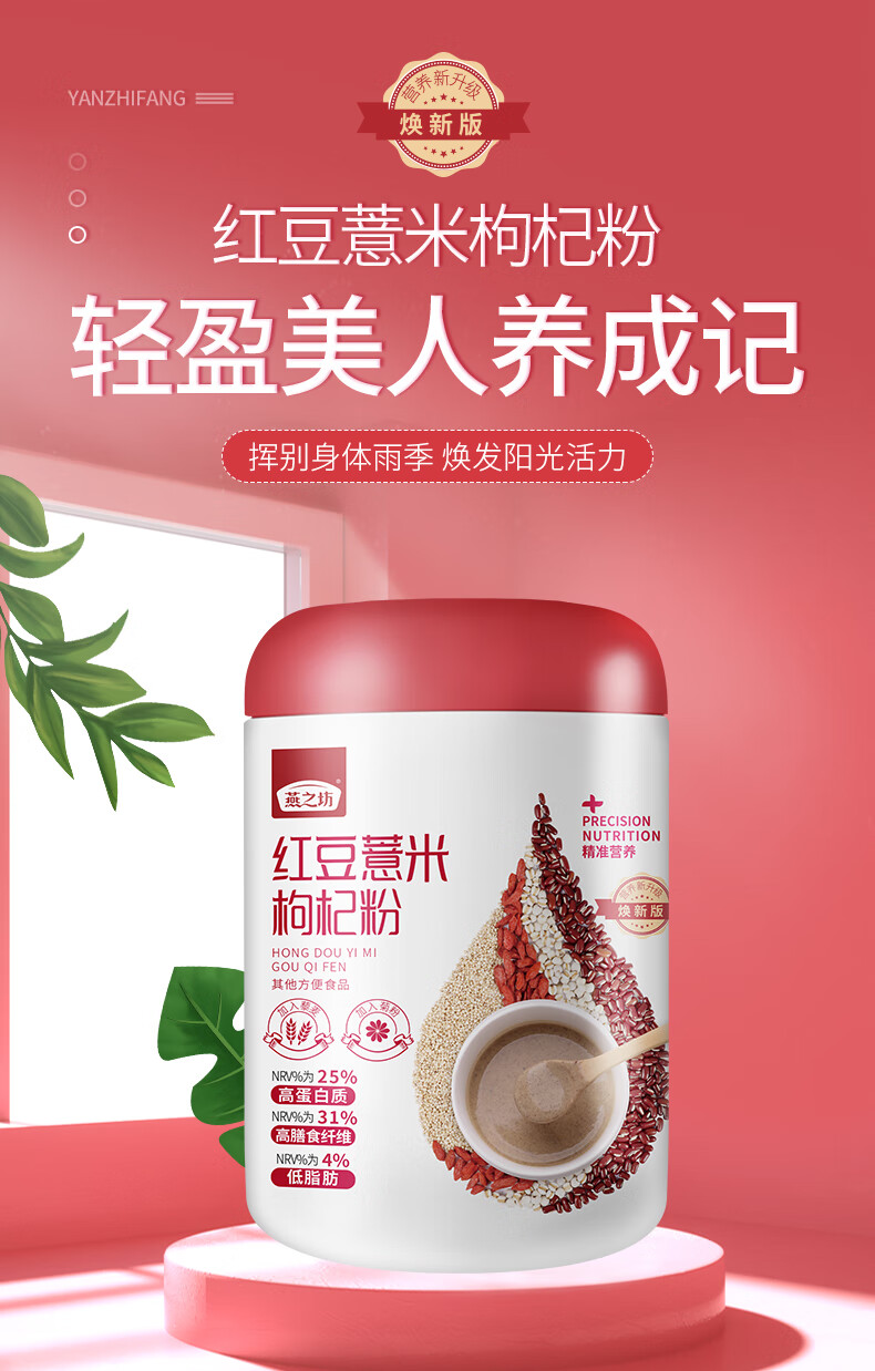 燕之坊 红豆薏米枸杞粉薏仁粉五谷粉早餐速食懒人代餐赤小豆薏米粉500g