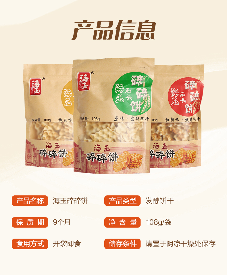 【海玉】海玉石头碎碎饼108g山西特产休闲零食 五包装