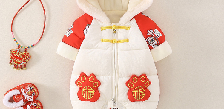 婴儿秋冬装套装衣服男女宝宝爬服中国风连体衣红色过年拜年服喜庆