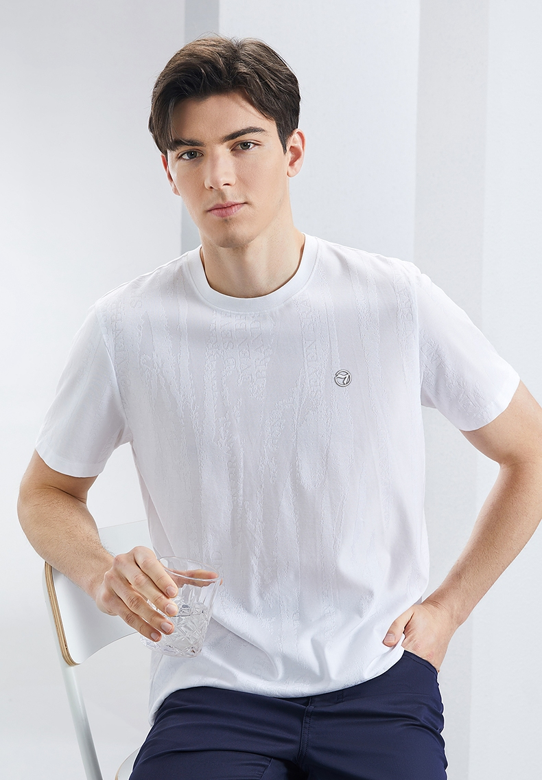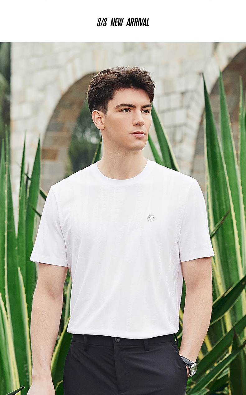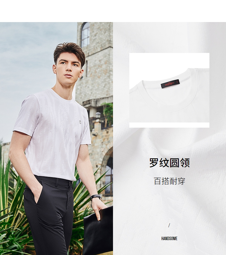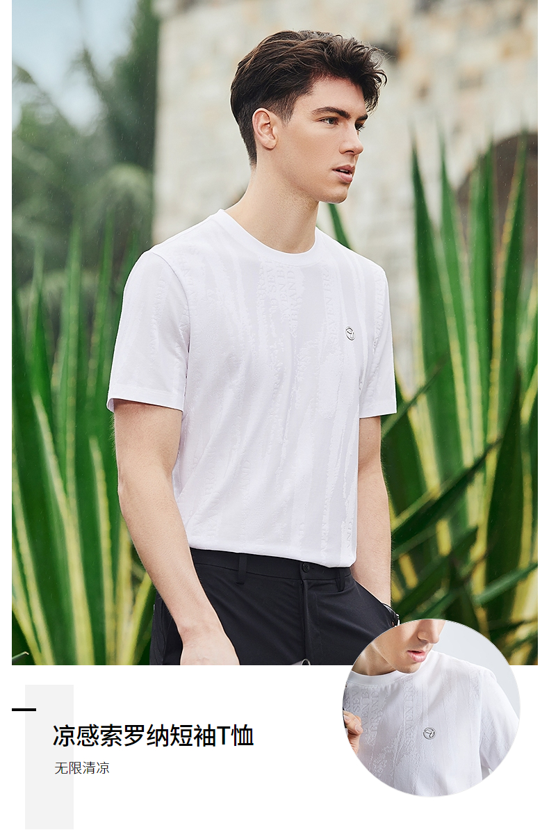 【凉感索罗纳】柒牌短袖T恤男夏季新款时尚休闲字母提花圆领上衣 126T72210