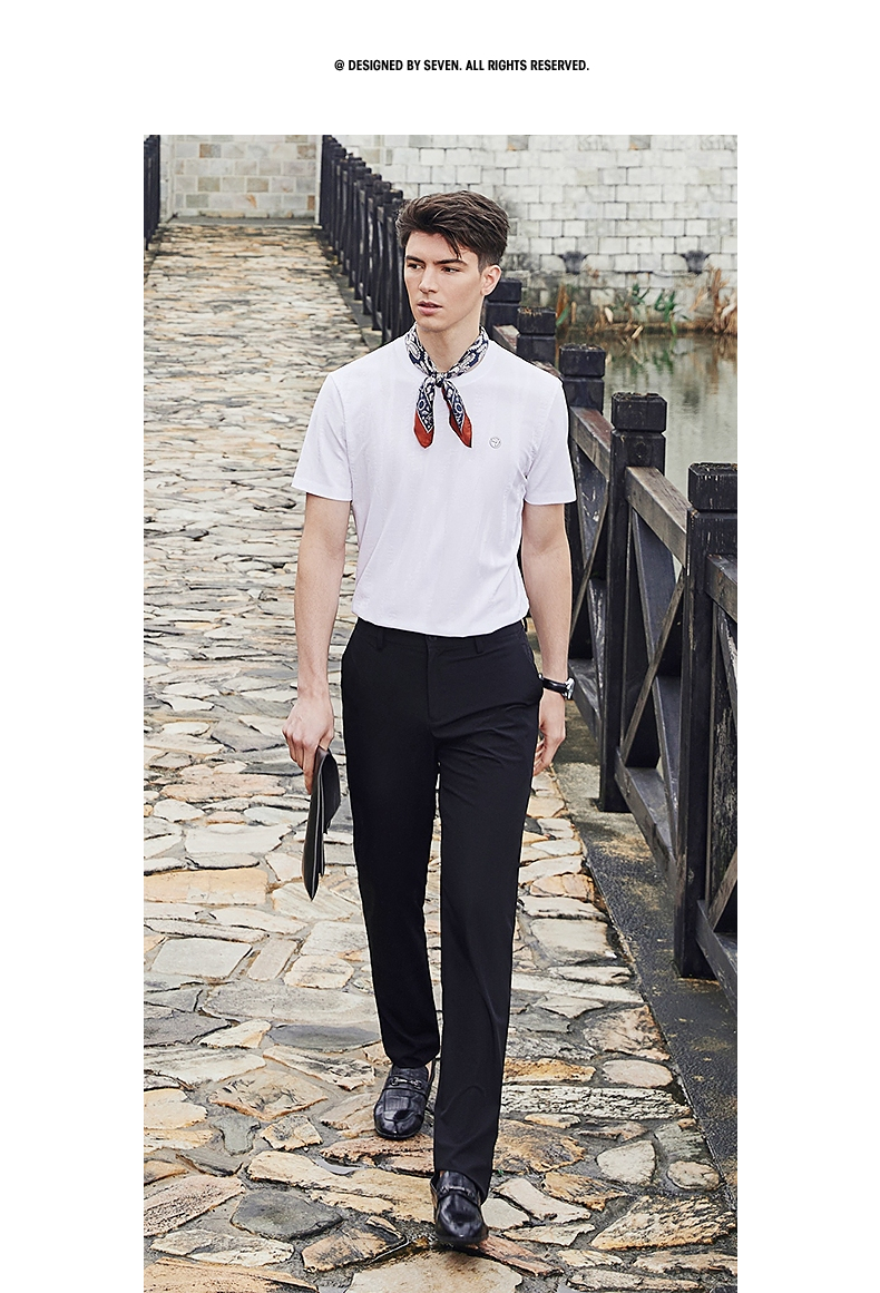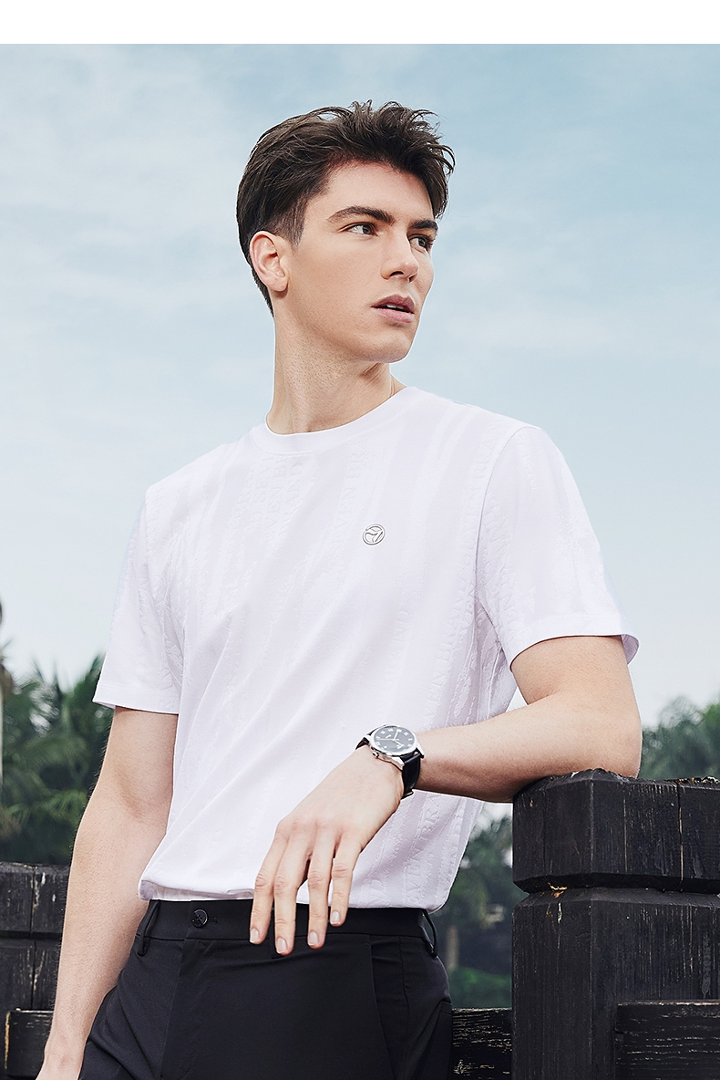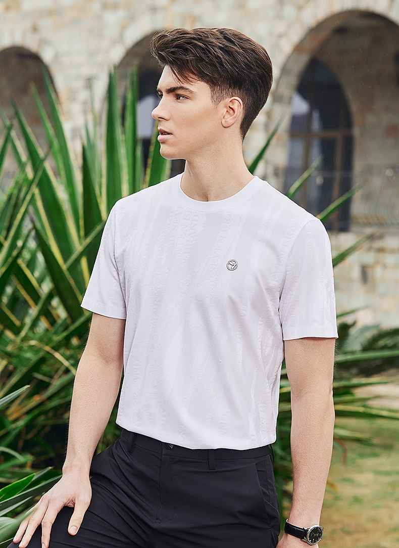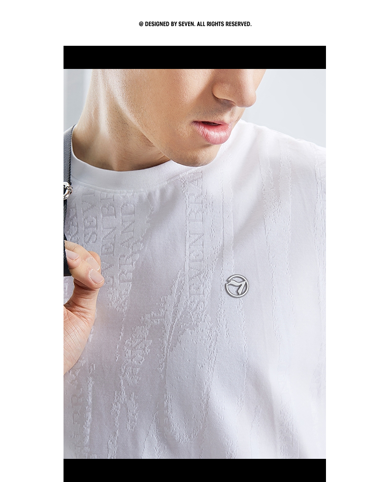 【凉感索罗纳】柒牌短袖T恤男夏季新款时尚休闲字母提花圆领上衣 126T72210