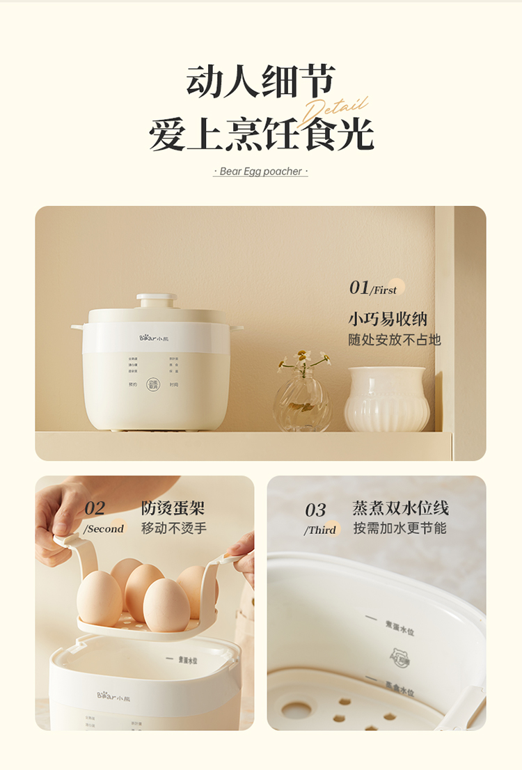 小熊煮蛋器 ZDQ-Q05E3-P01 米黄色 蛋架