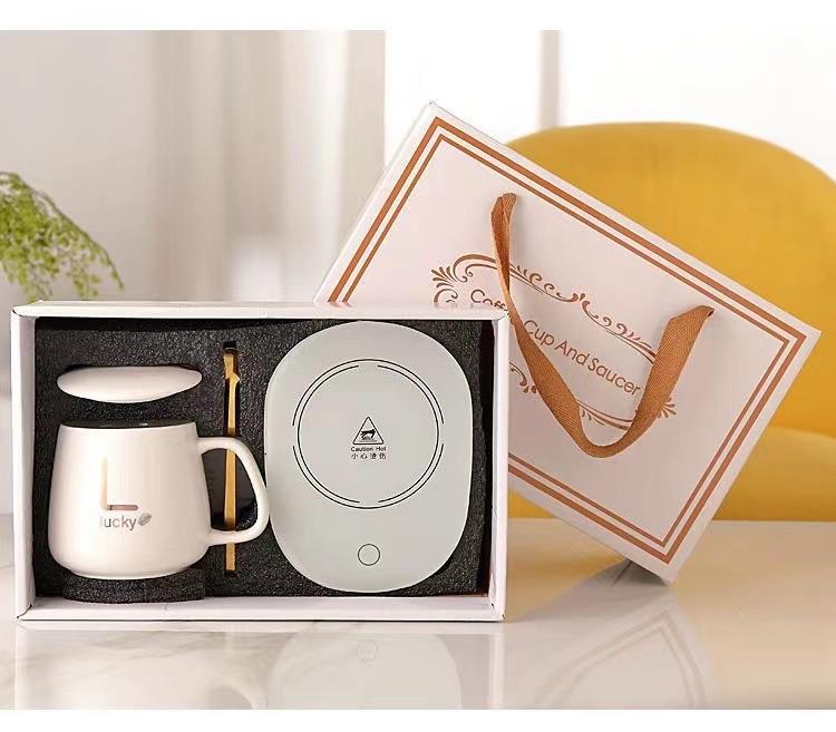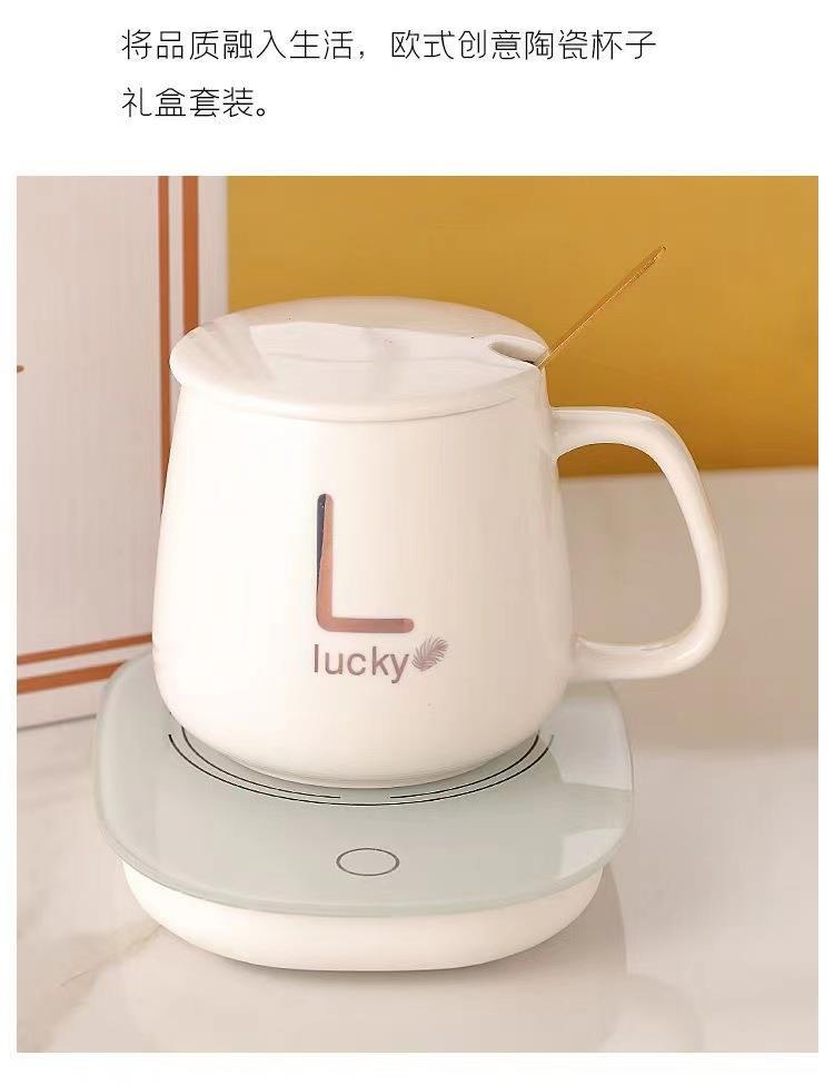 马克杯55度智能恒温杯创意暖暖杯陶瓷杯带盖婚庆礼品伴手礼礼盒装