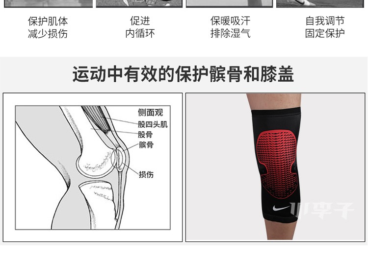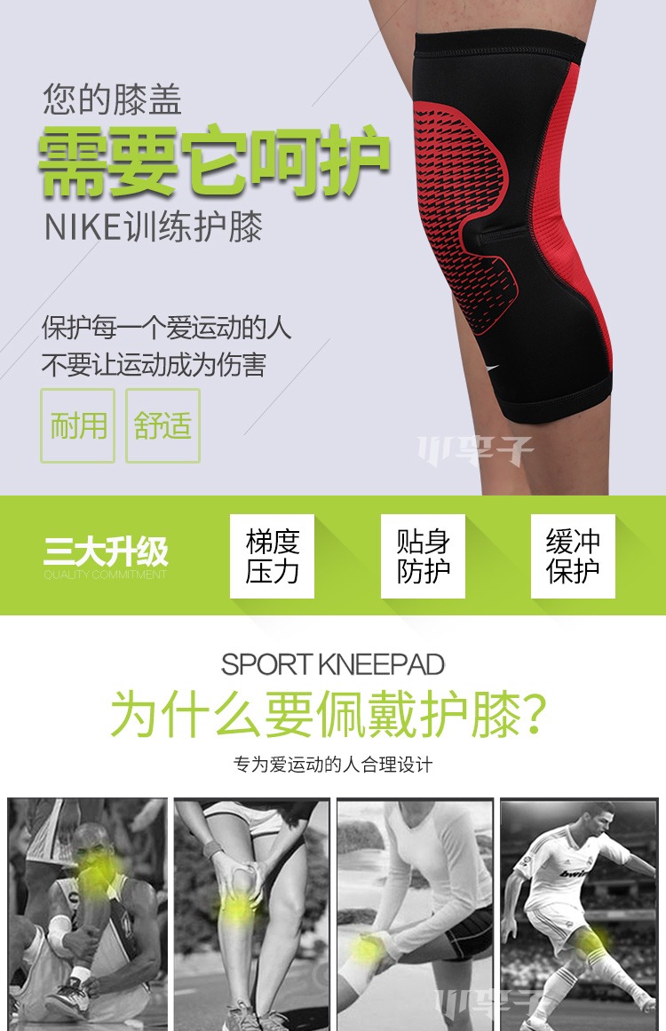 小李子:专柜正品NIKE耐克成人足球篮球运动护膝弹性膝盖护膝男士