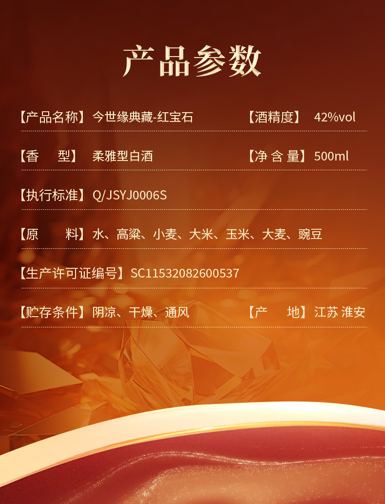 【酒厂直营】今世缘典藏红宝石 42度白酒500ml