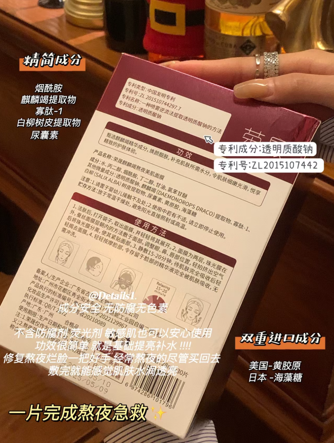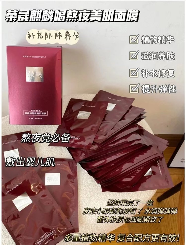 [透小蜜心选]【活动价 ¥39.9/30片 ¥59.9/60片】荣晟-麒麟竭熬夜美肌面膜28ml×30片/盒