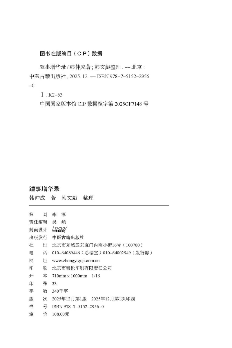 书名:踵事增华录 韩仲成医道传承集