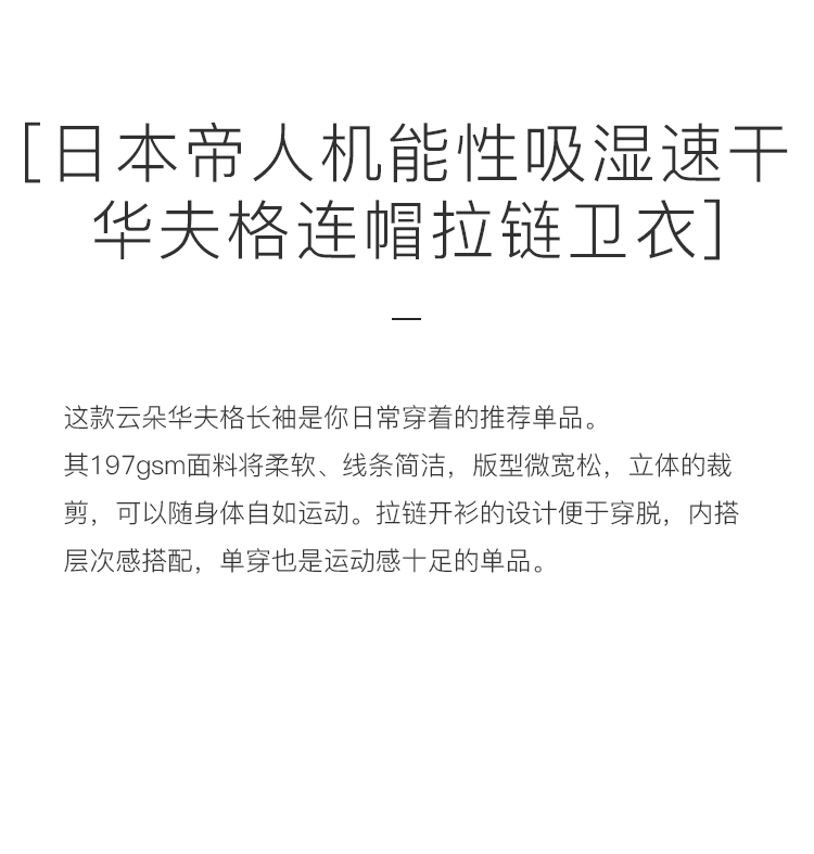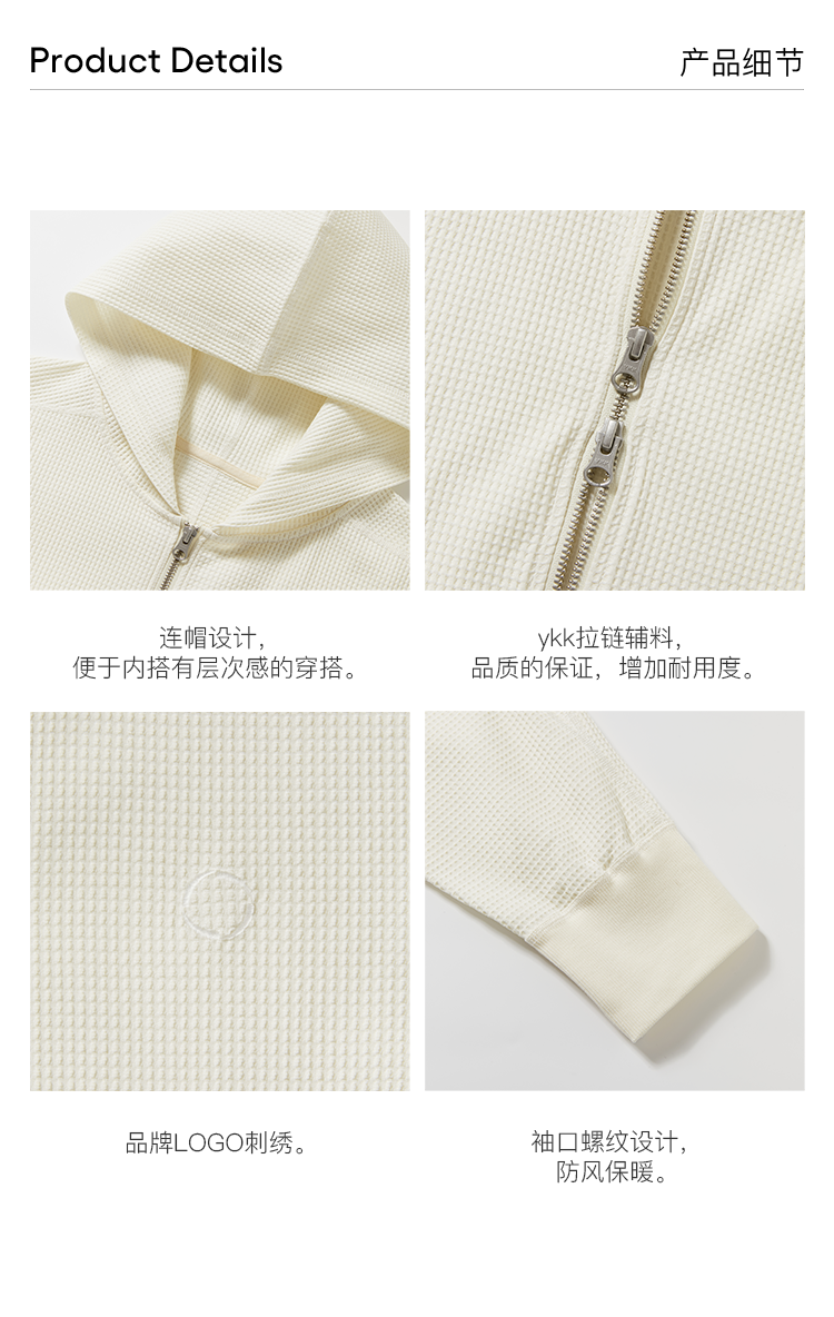 WHEELS and WIND 男女日本帝人机能性吸湿速干华夫格连帽拉链卫衣