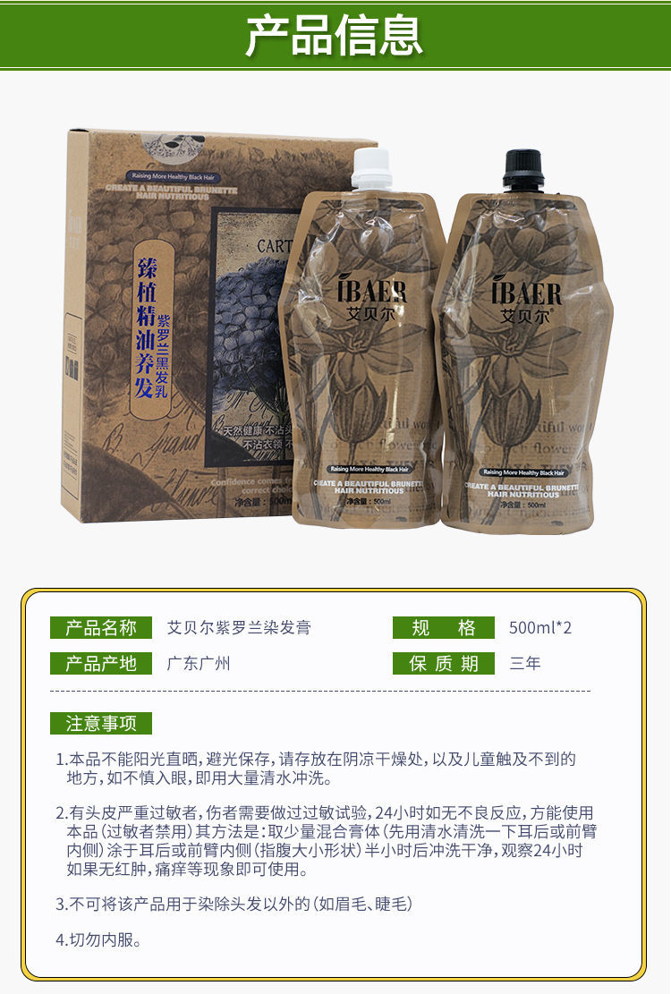 【爆款超低价预售 急单慎拍】艾贝尔紫罗兰染发膏1000ML不粘头皮男女植物天然自然黑色染发剂