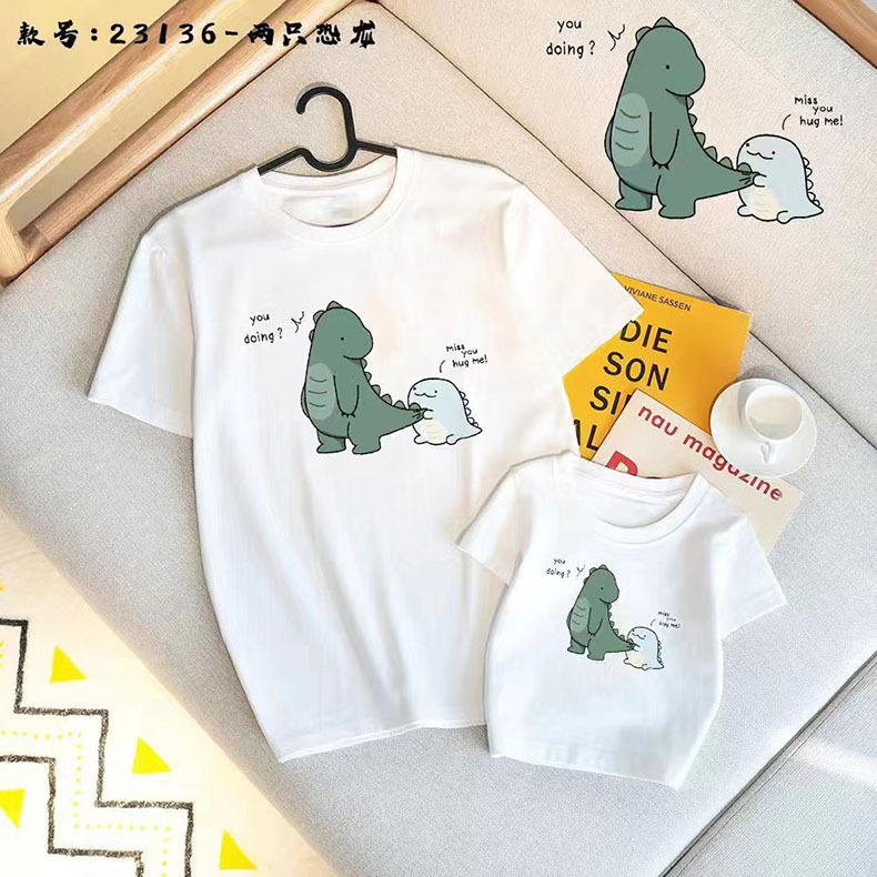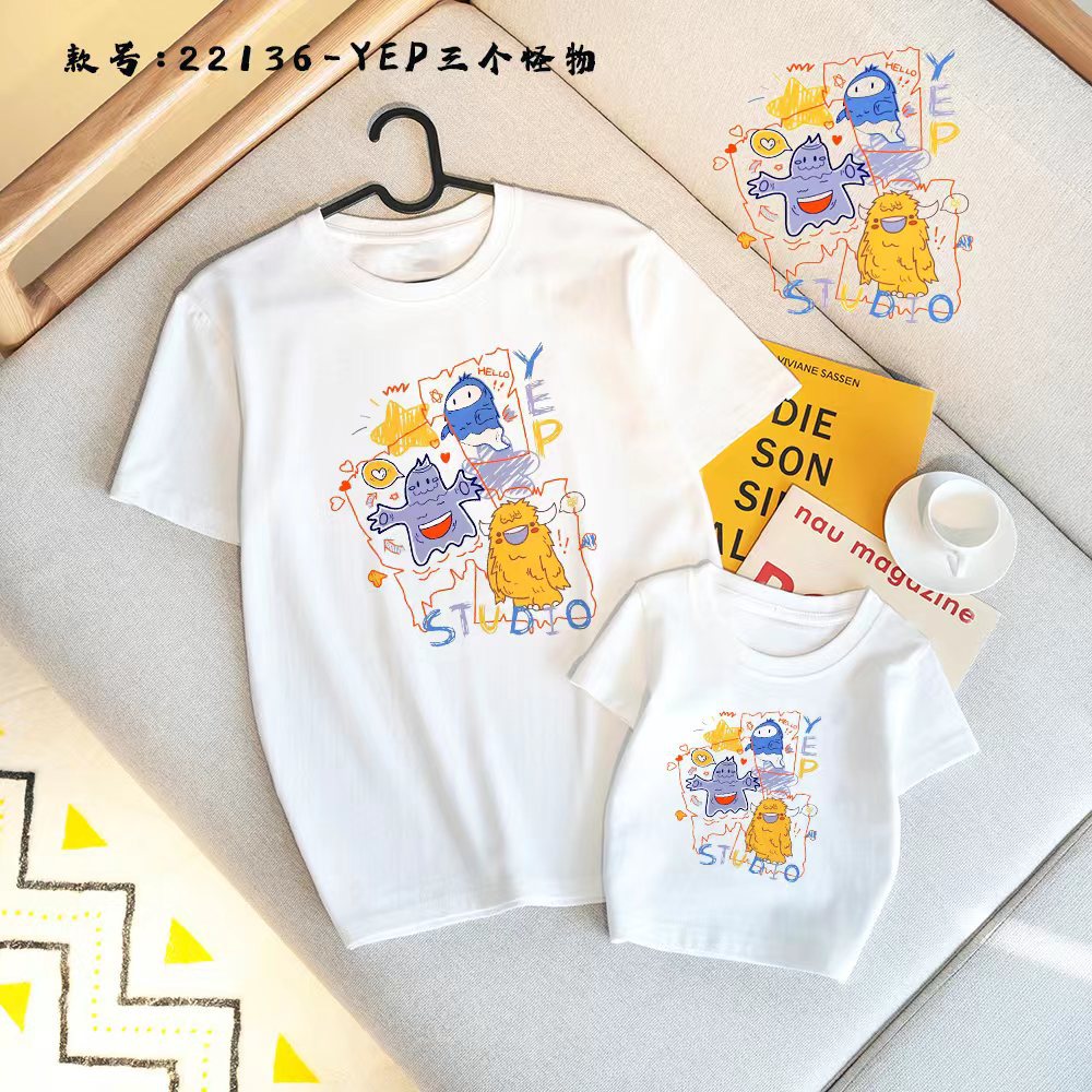 【180克精梳棉亲子装夏装T恤59.9任选2件 】2025新款圆领印花中国风纯棉亲子装短袖