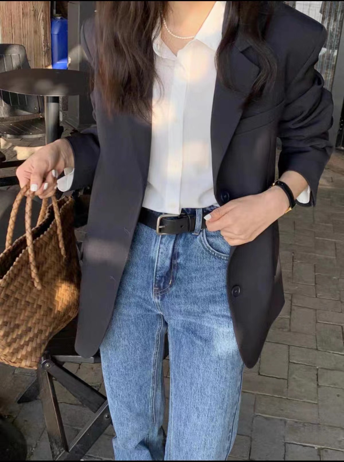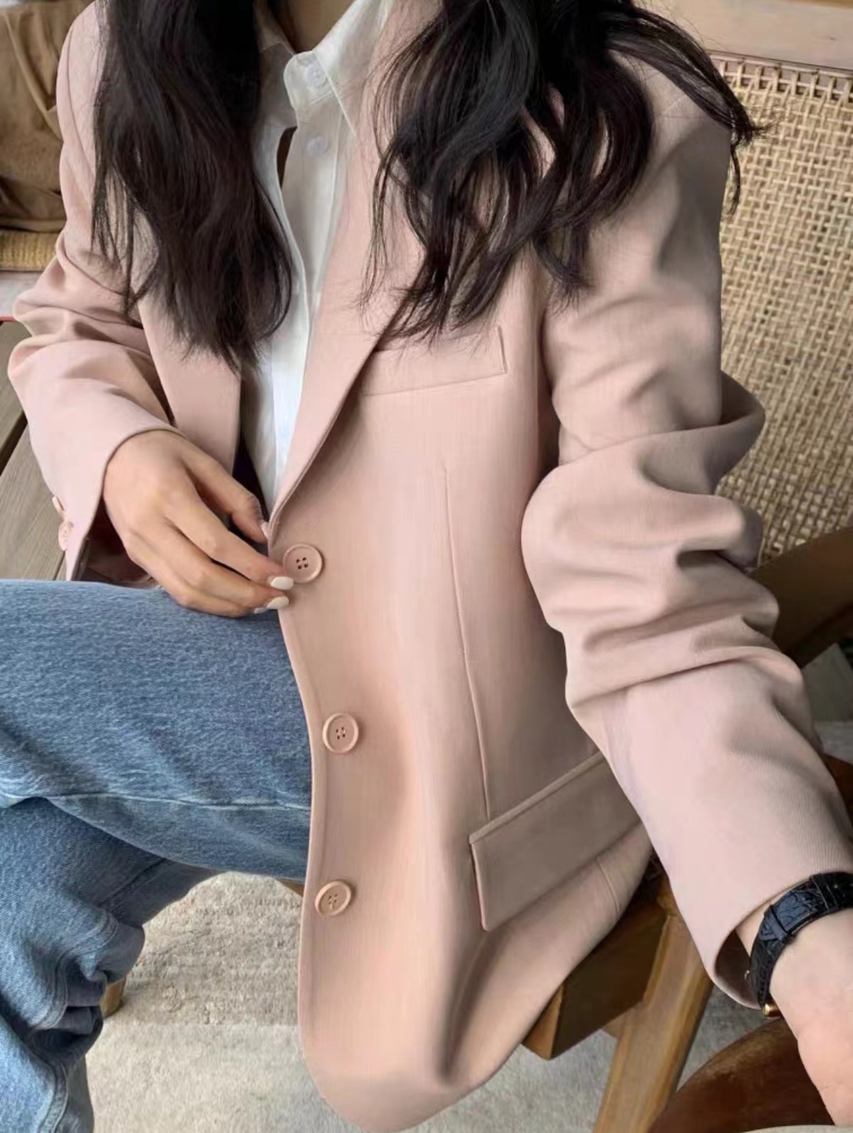 【YW】无忧购春季韩版通勤单排扣后开叉纽扣宽松西服外套668(截单后7天发货)25年清仓捡漏