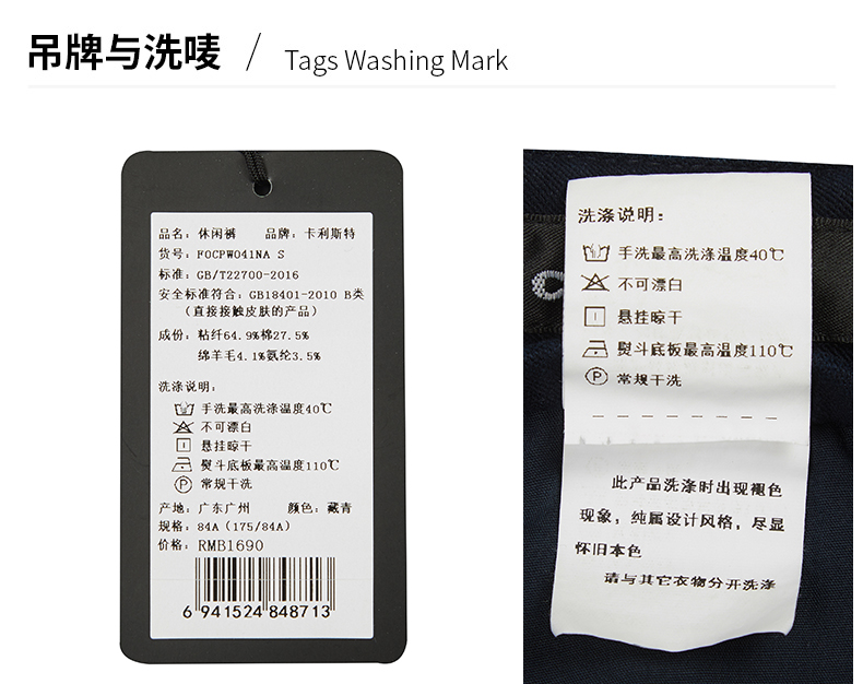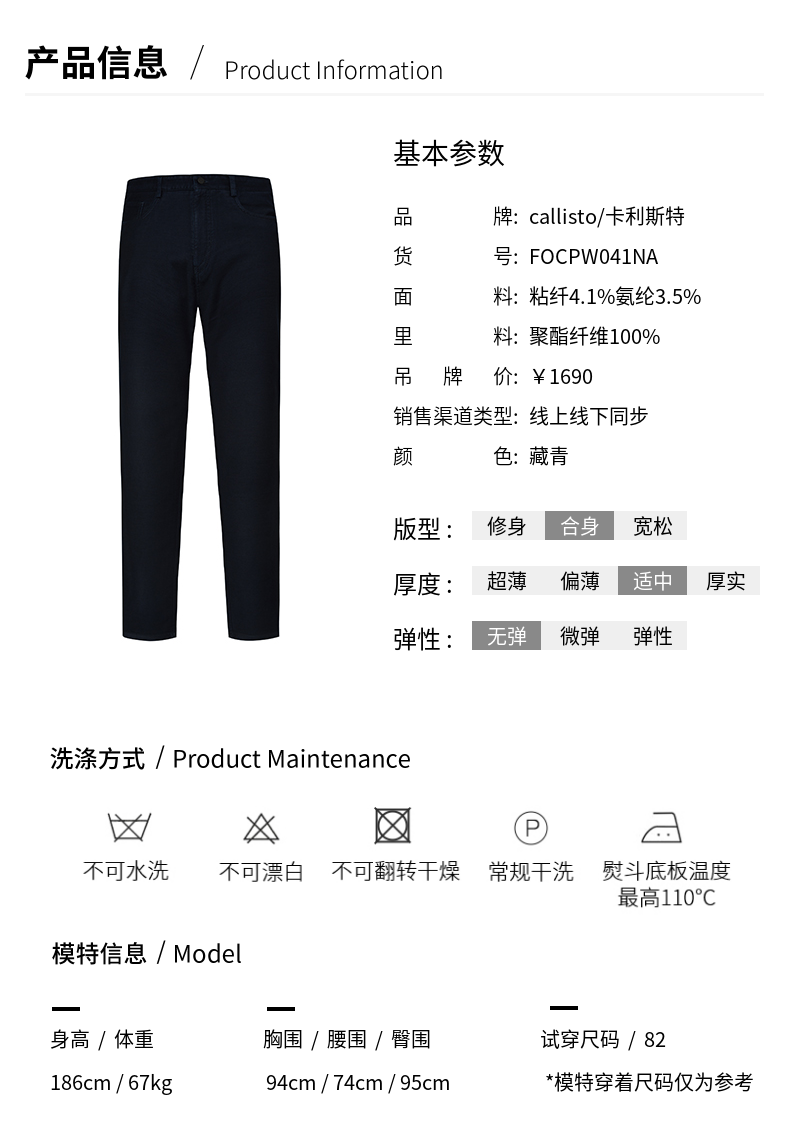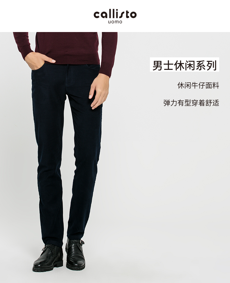 callisto藏青粘纤混纺休闲裤 FOCPW041NA