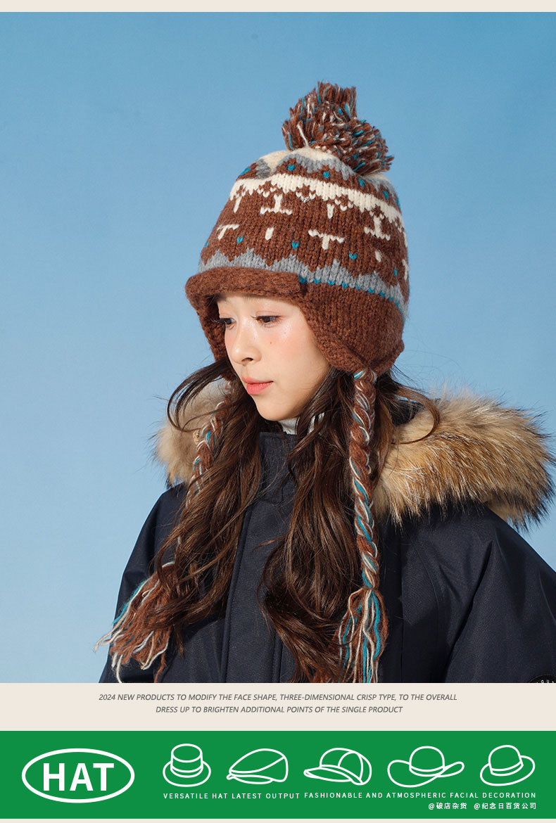 韩版百搭费尔岛辫子针织帽-纪念日百货门店同款166745504