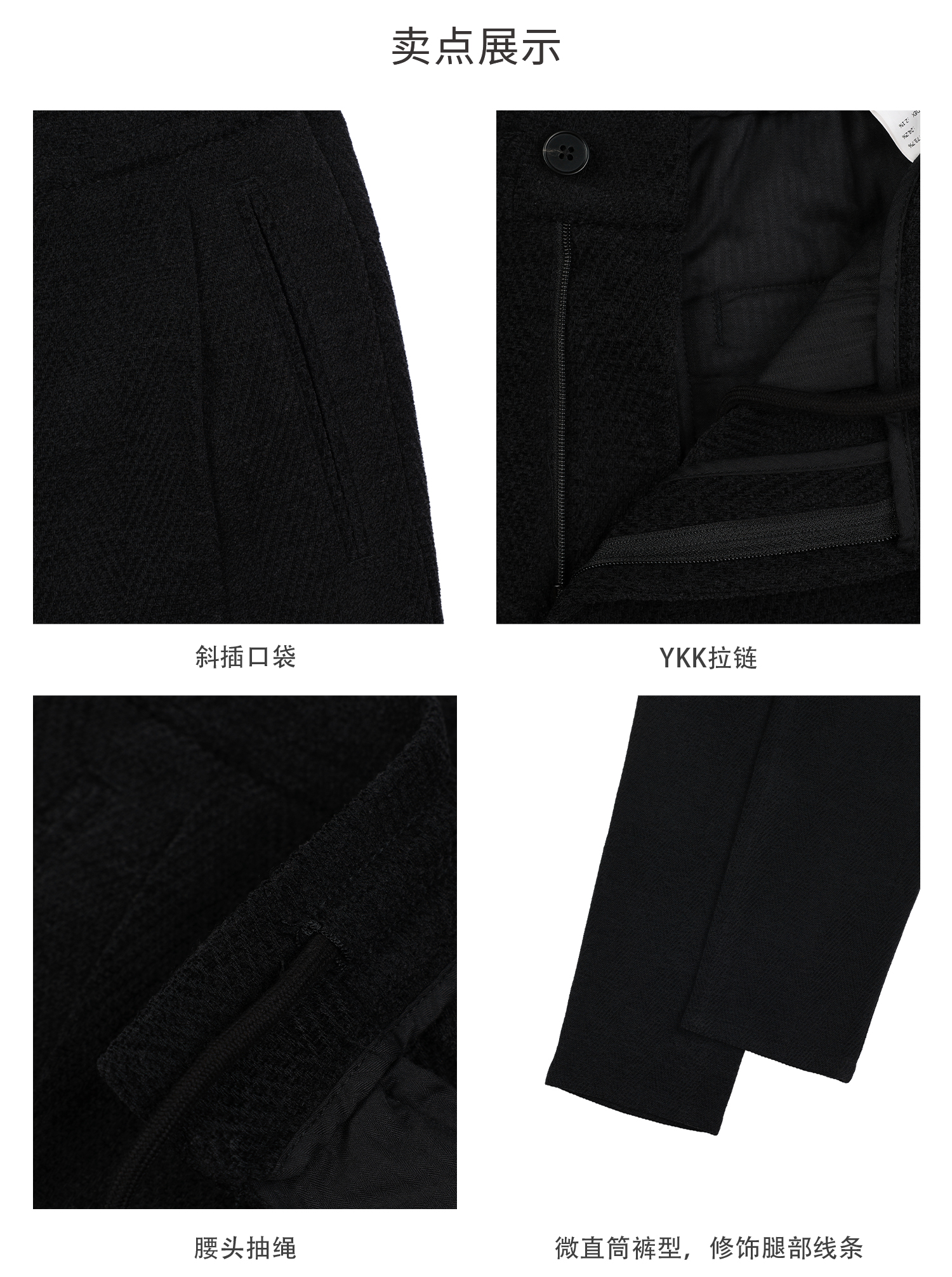 callisto蓝调璀璨黑雪尼尔羊毛西裤