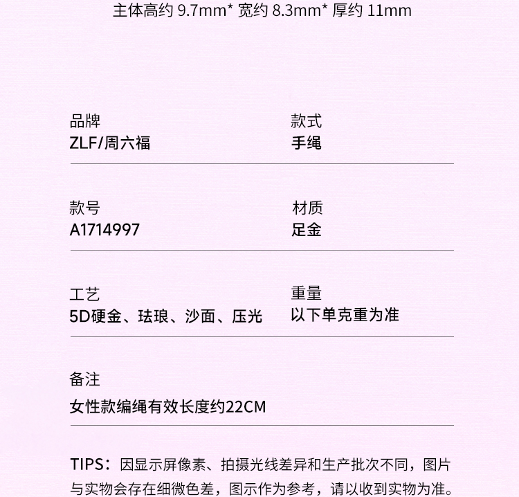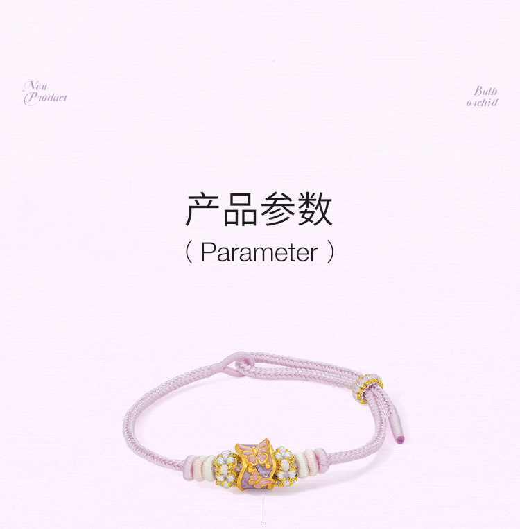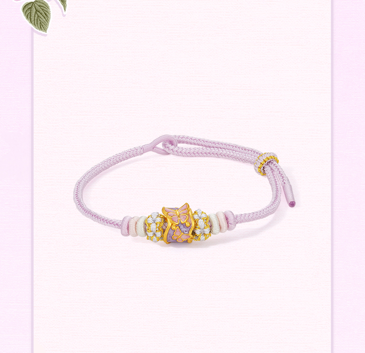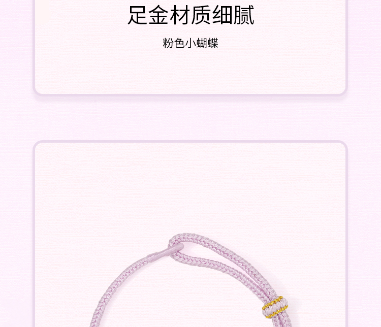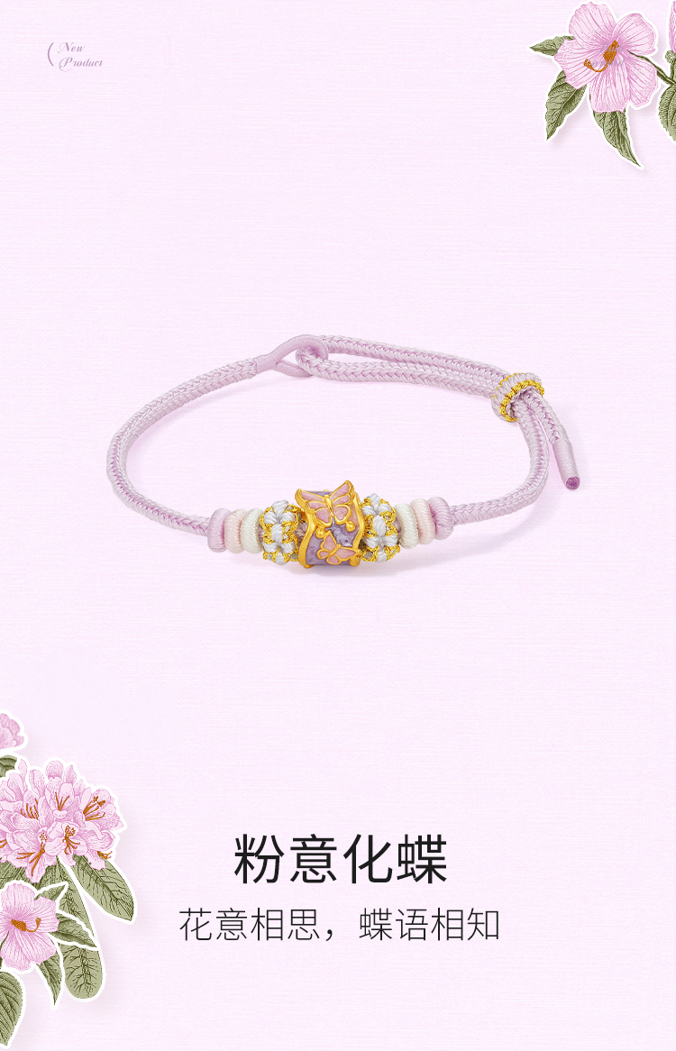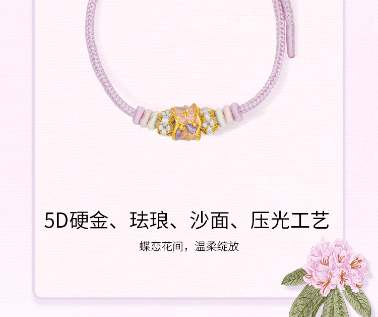周六福黄金手绳女款5d硬金定价粉意化蝶花语转运珠粉珐琅甜美蝴蝶