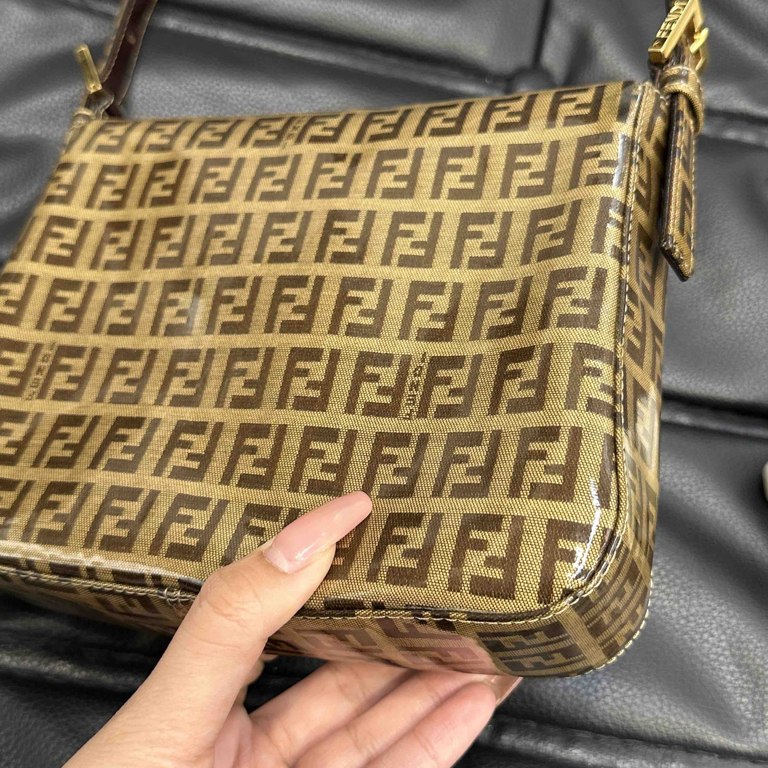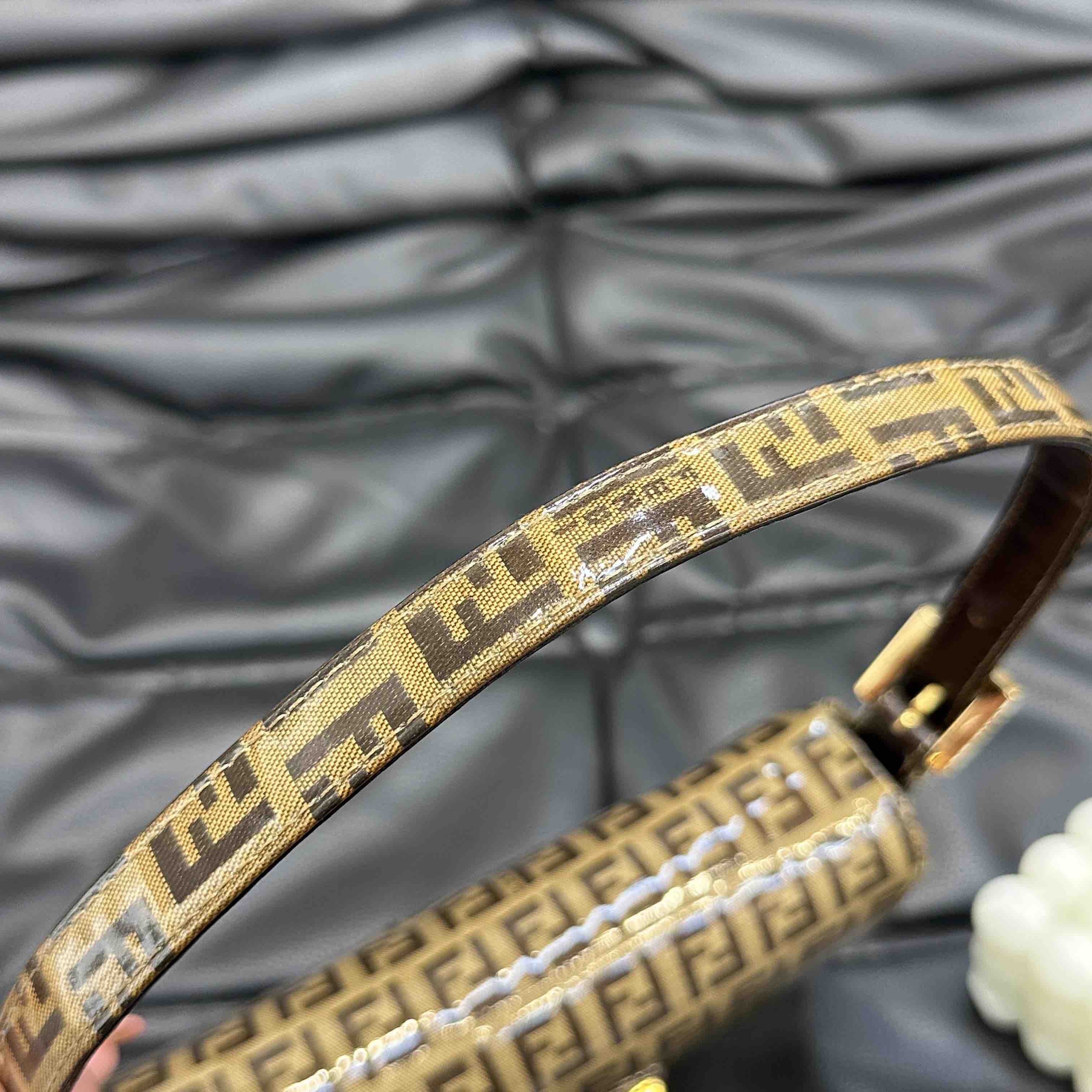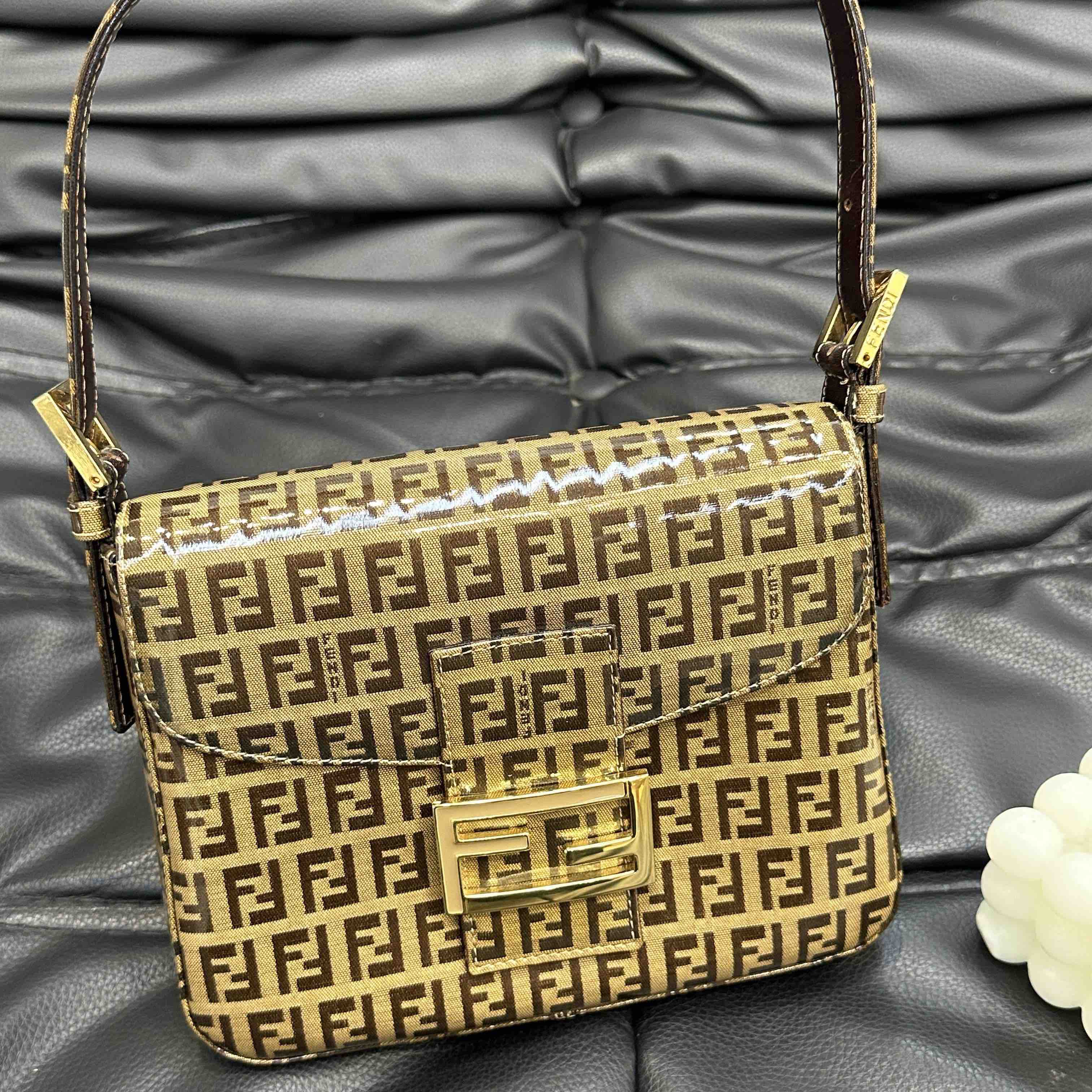 【商品详情】💰4500!正品二手 Fendi 中古 水晶皮 老花 珐琅金扣 小号 腋下包🟤95新 20x15 配件:肩带。吸扣五金轻微氧化 肩带正常使用感 内里干净 包身立体 复古特别款