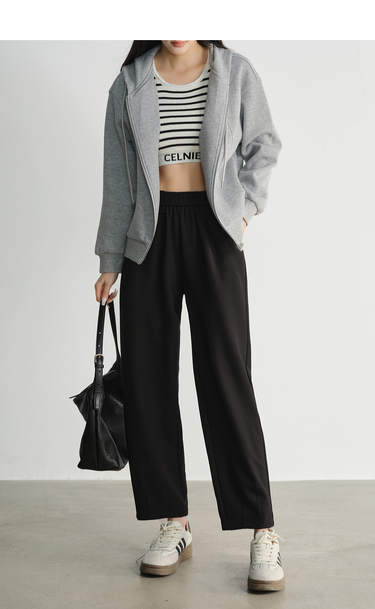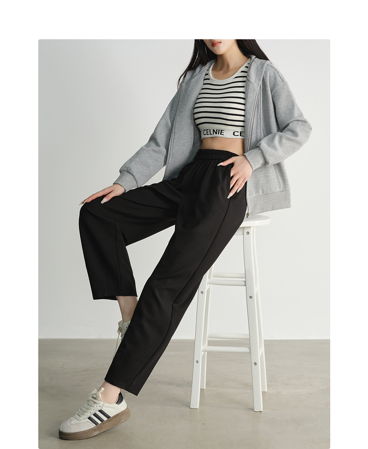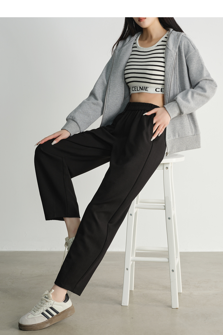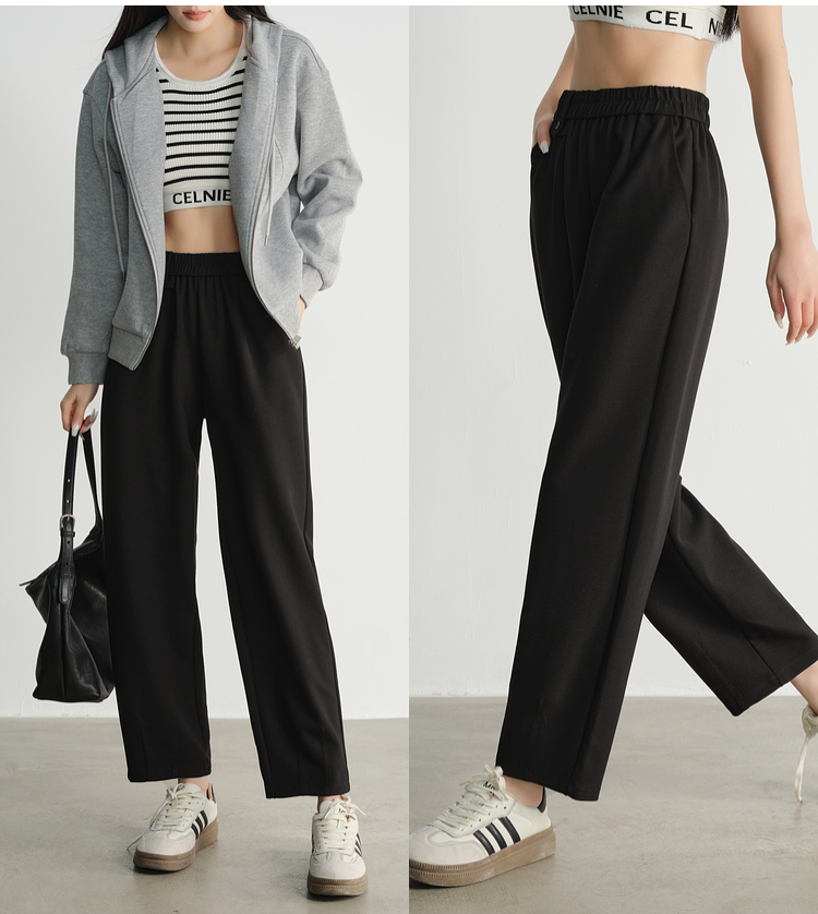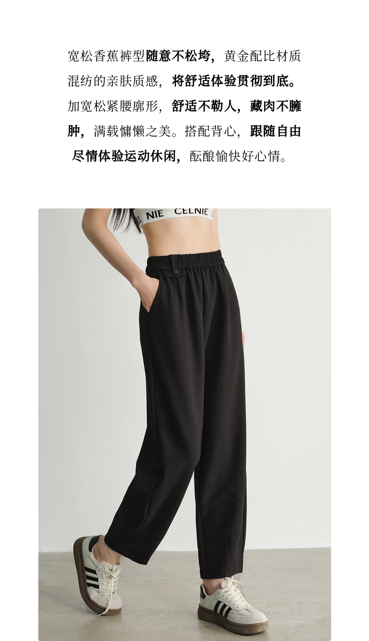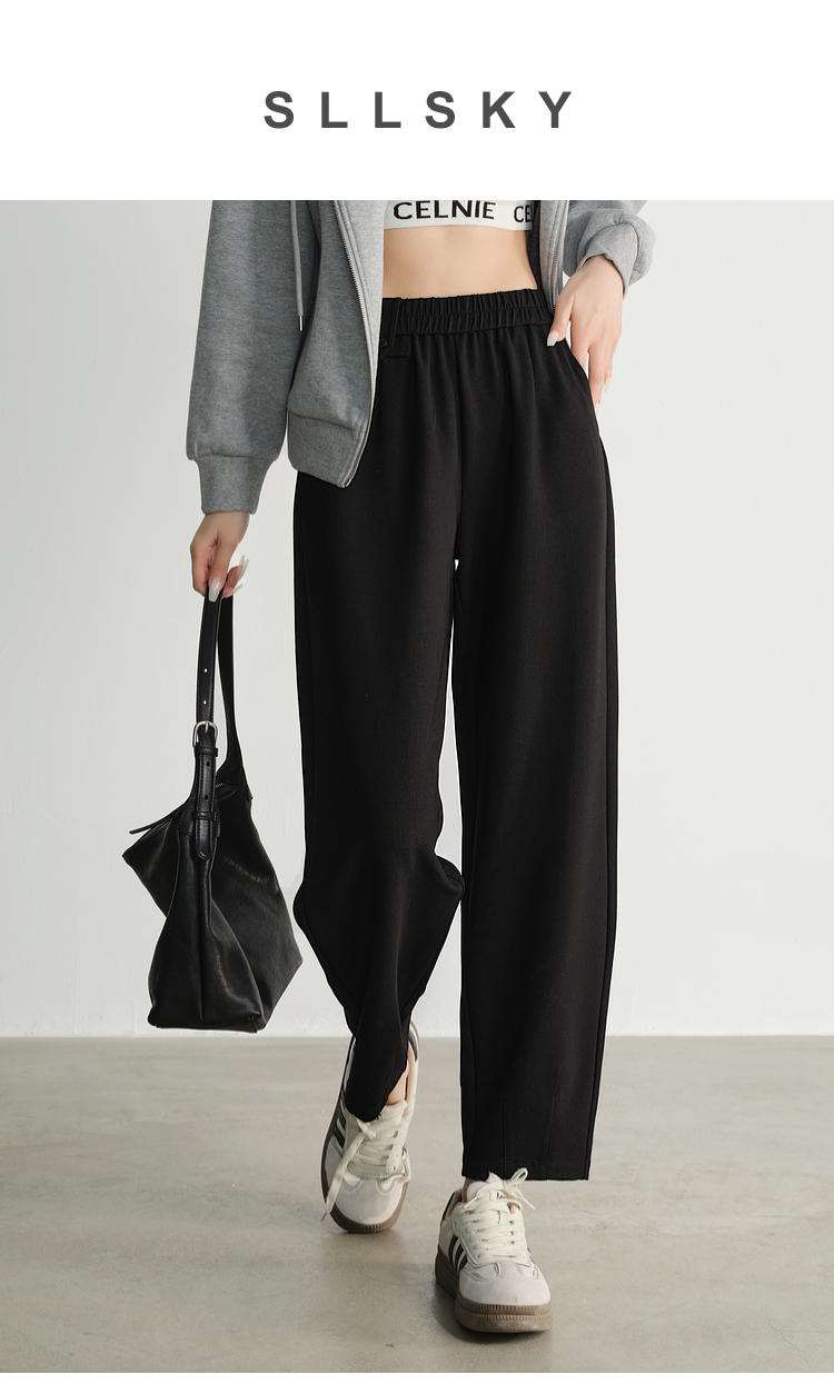 【专属特价】熙世界黑色九分阔腿萝卜裤春秋2025新款高腰宽松休闲烟管哈伦裤