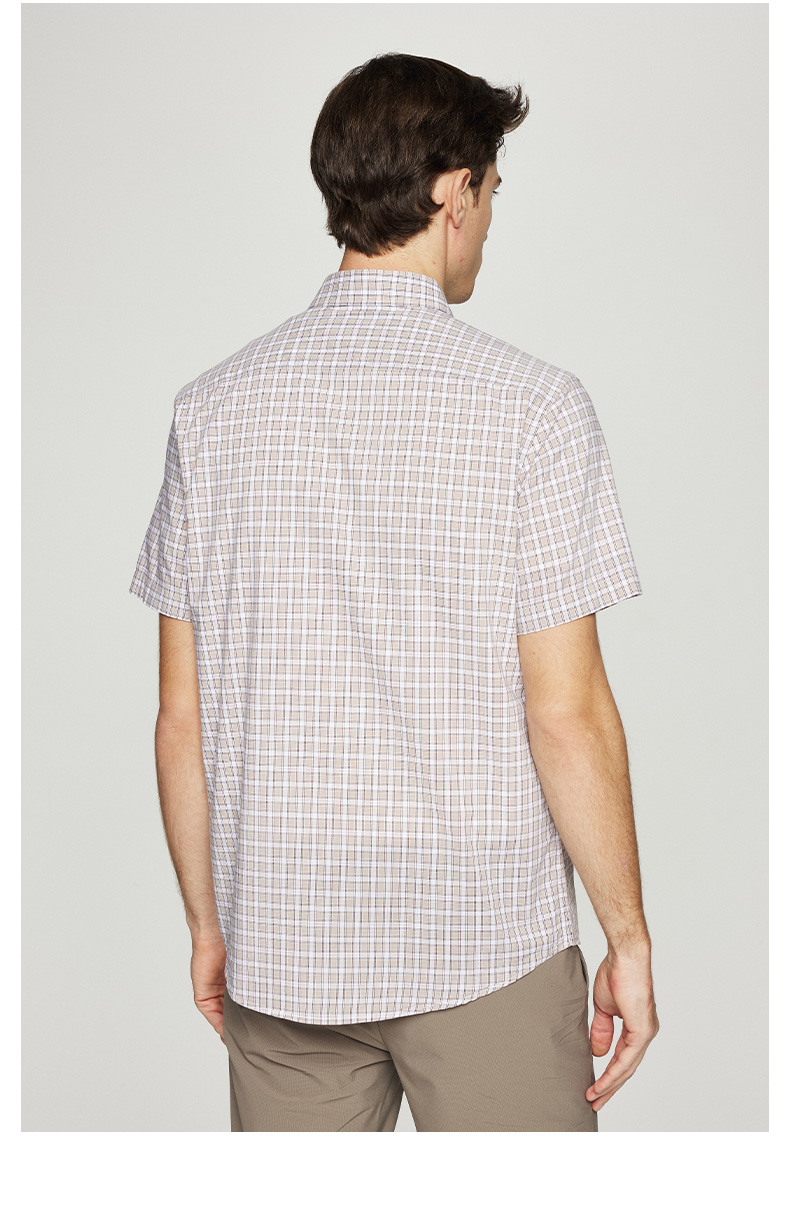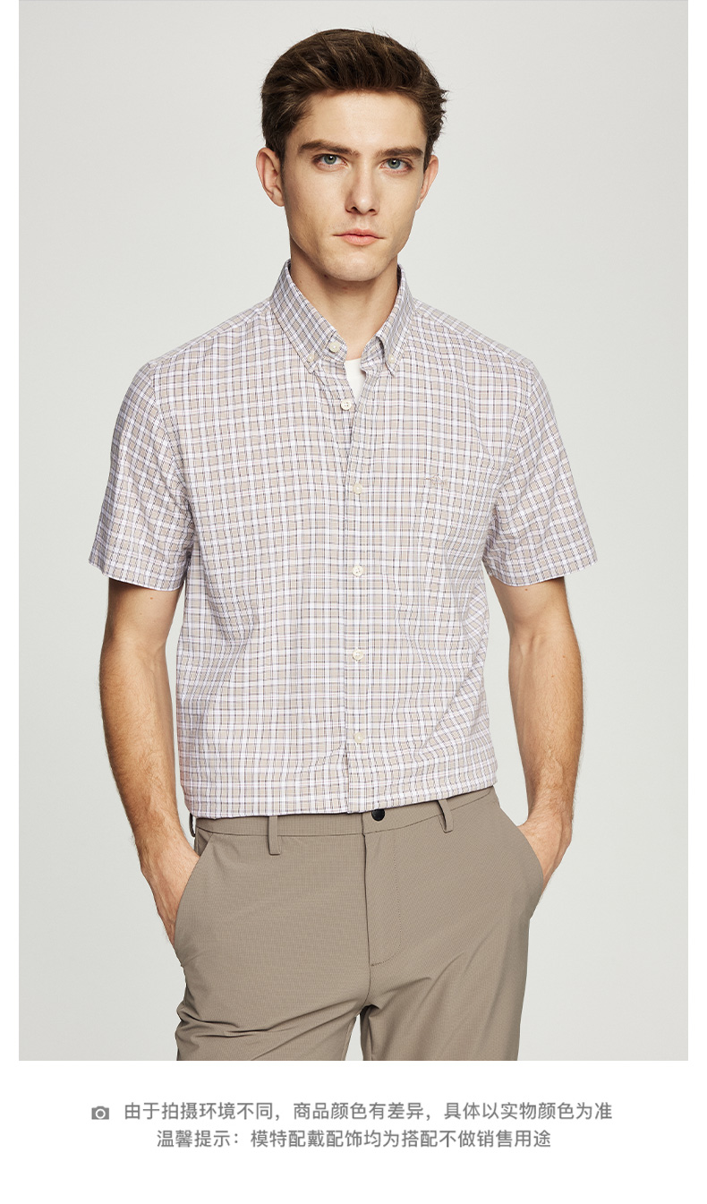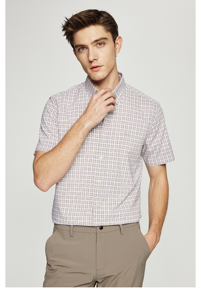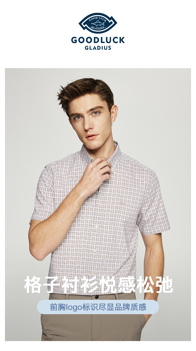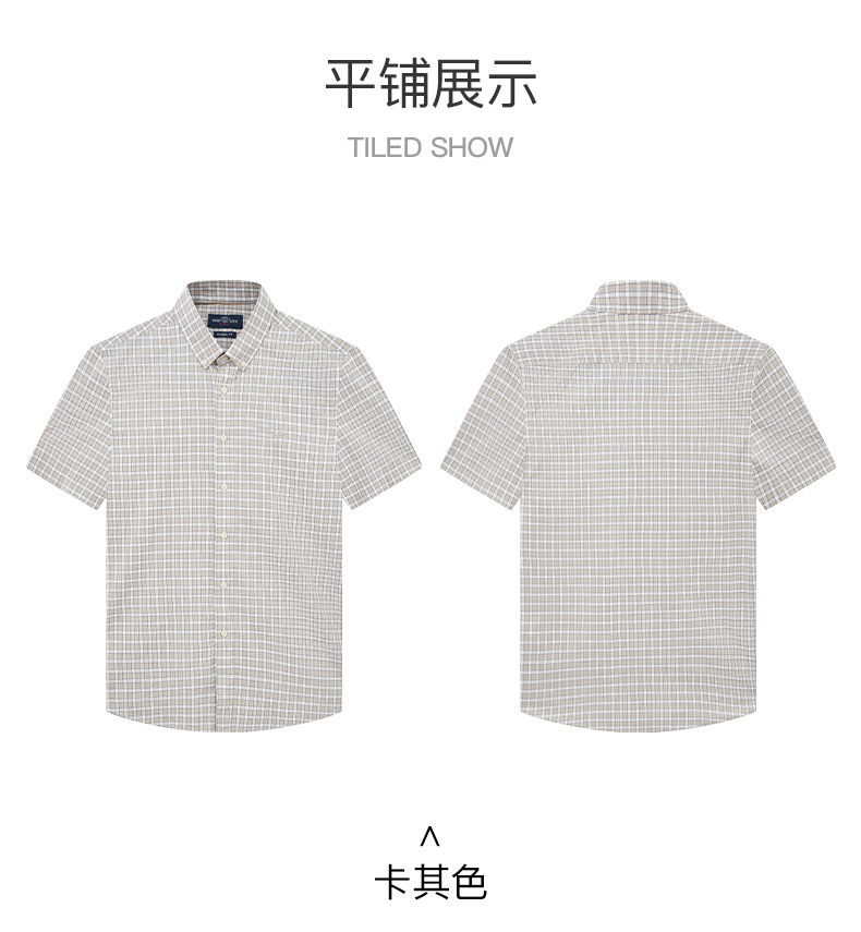 【棉混纺】德鲨鲨鱼短袖格子衬衫男2026夏新款休闲衬衣男